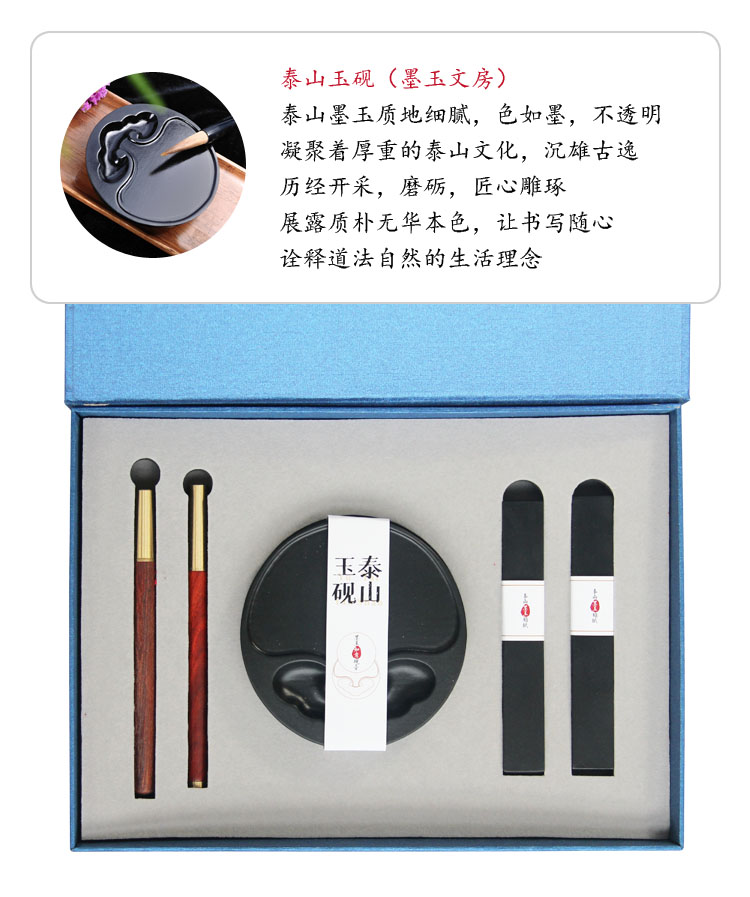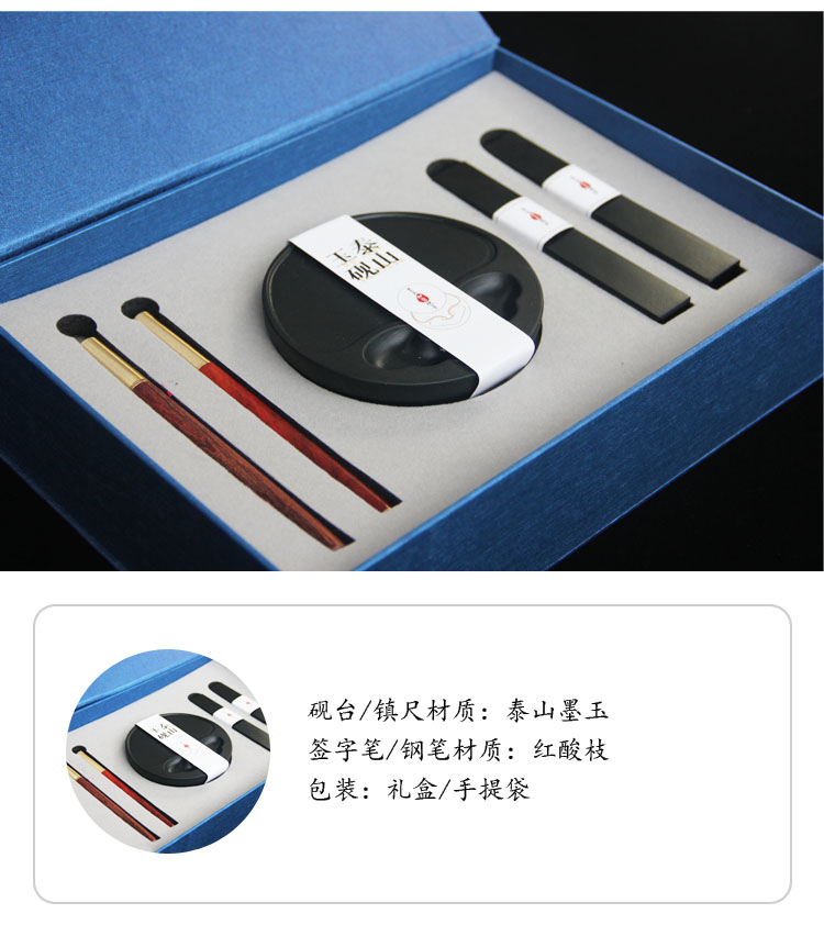 遇石记泰山玉砚台镇尺钢笔礼盒