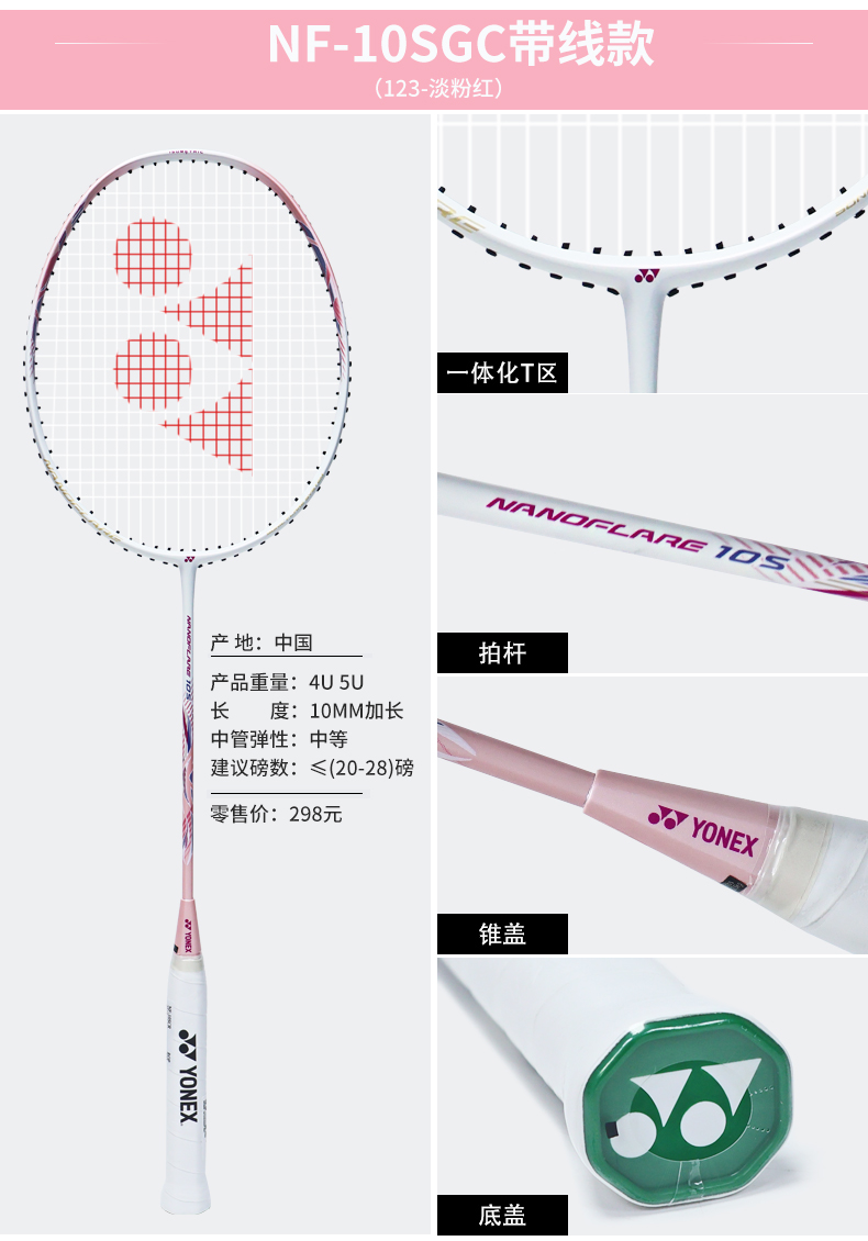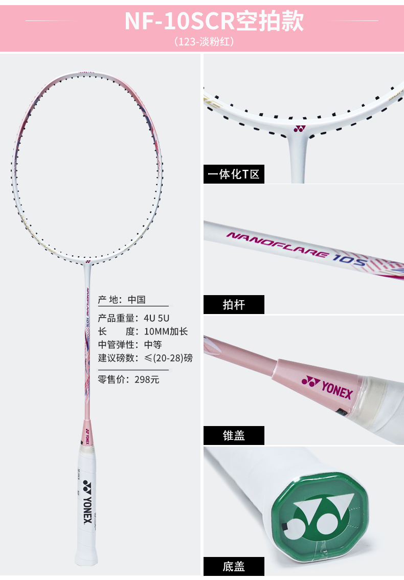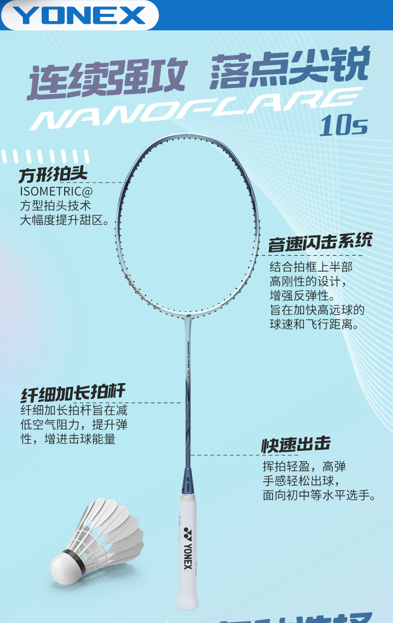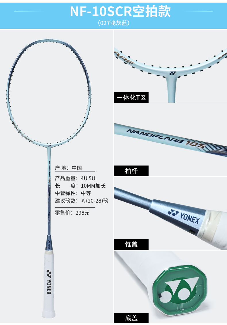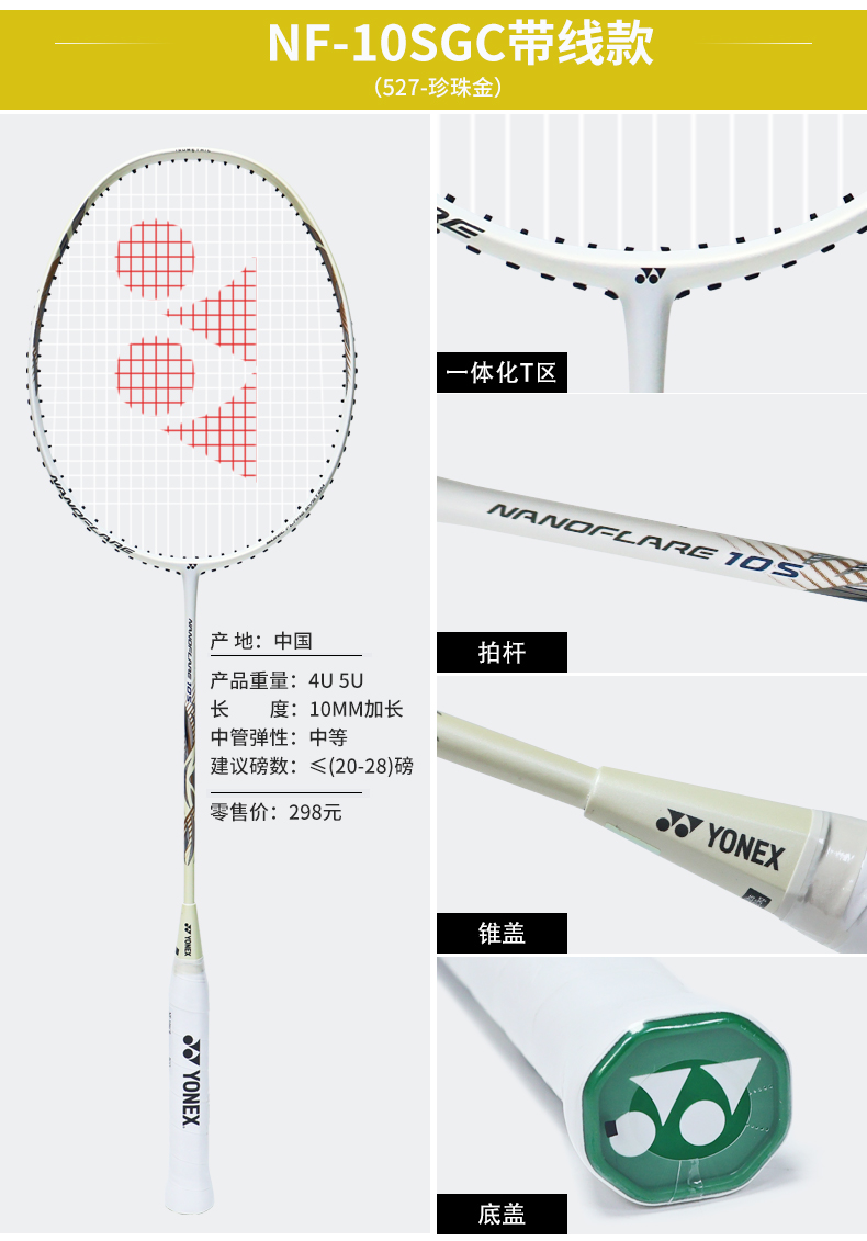 YONEX尤尼克斯羽毛球怕疾光NF10S超轻入门全碳素纤维训练球拍