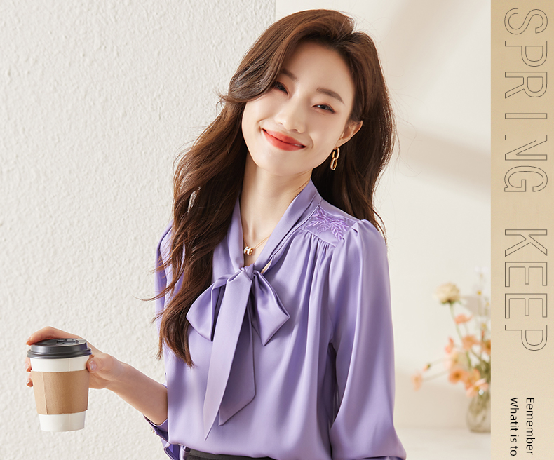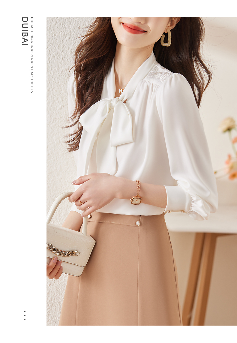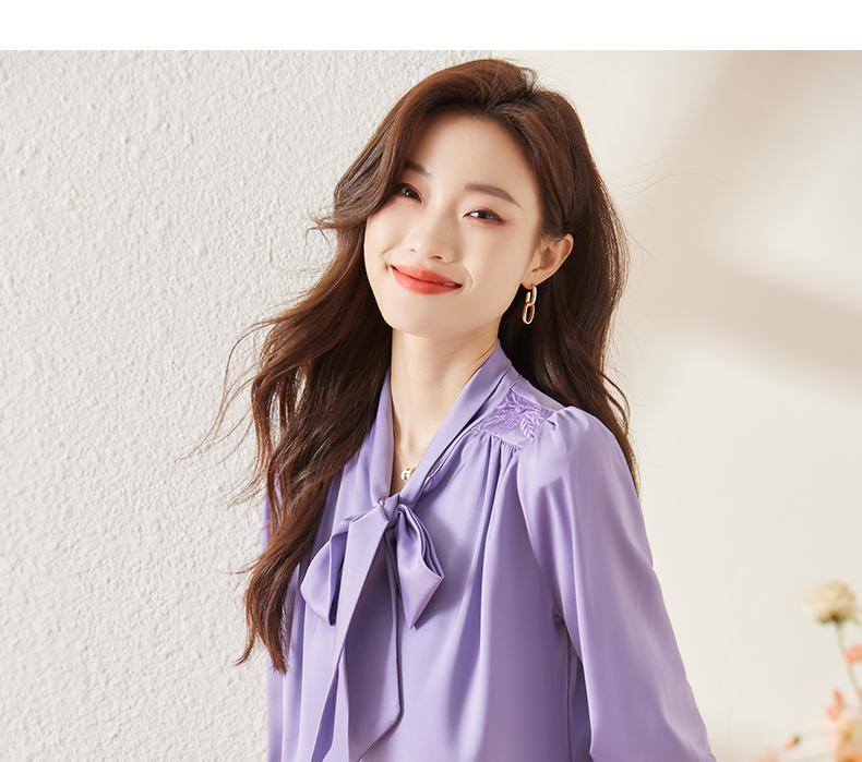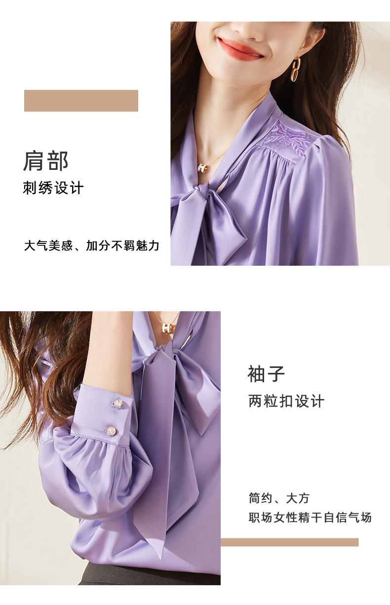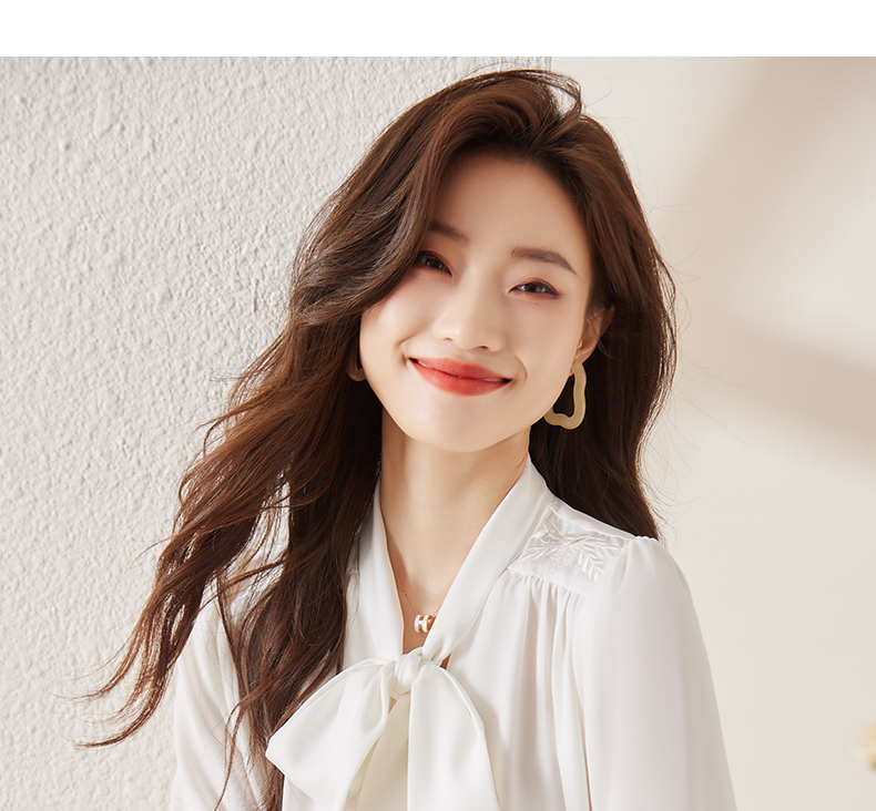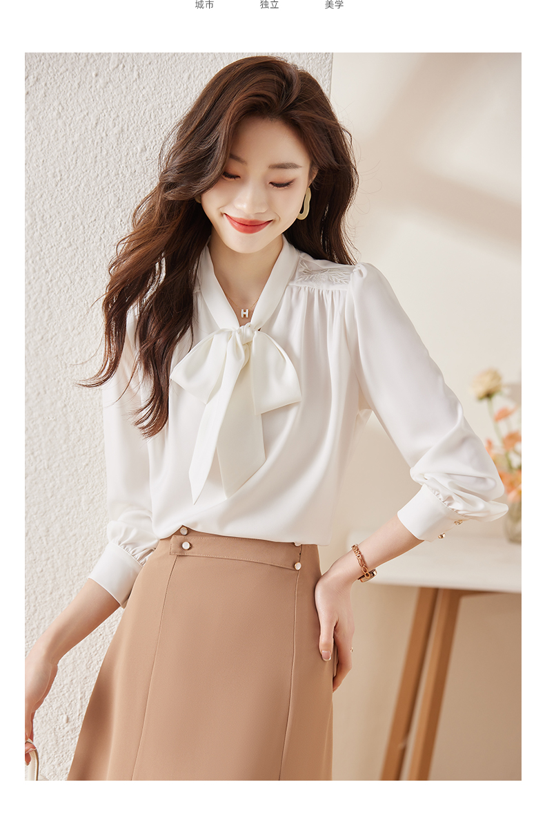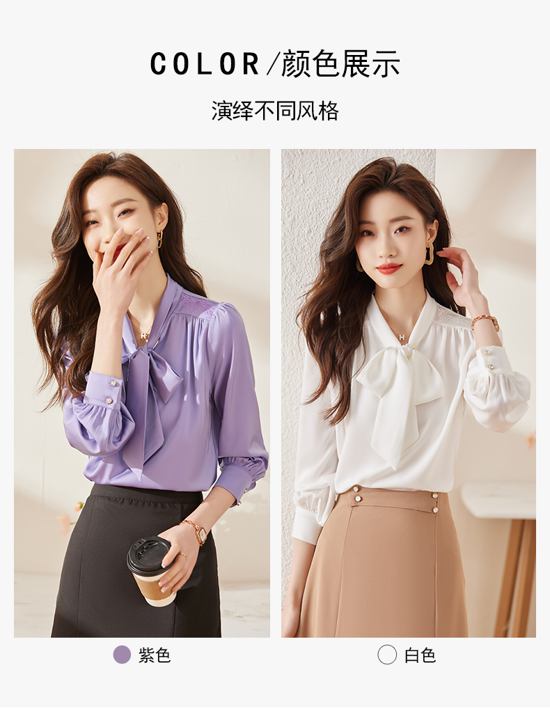职业雪纺衬衫女长袖蝴蝶结飘带法式上衣洋气时尚高端衬衣