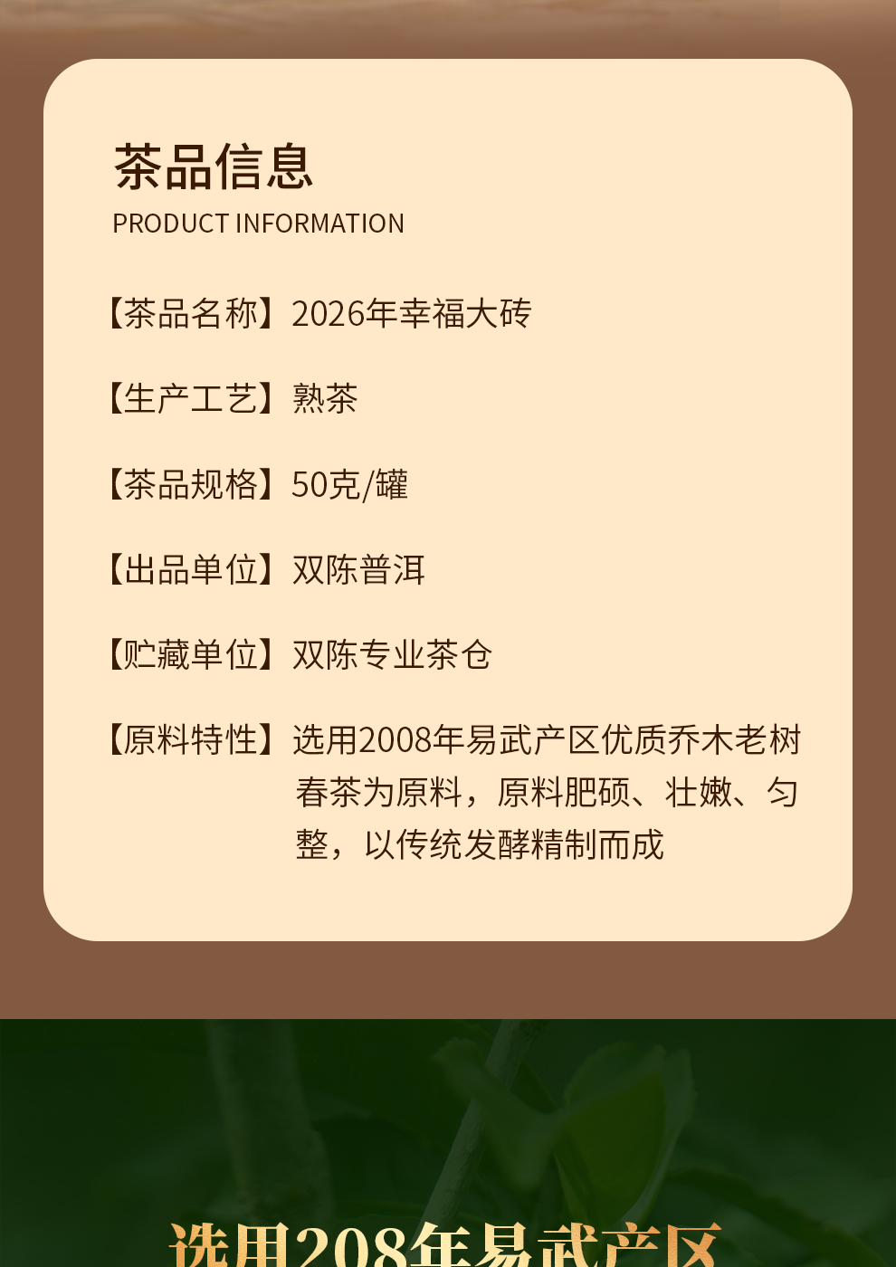 双陈普洱2006年幸福大砖熟茶1000克国民口粮茶18年陈易武老料顺滑甜