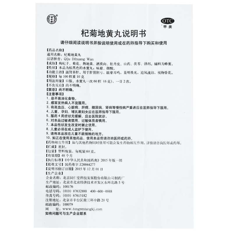 同仁堂 杞菊地黄丸60g/盒 滋肾养肝 眩晕耳鸣 迎风流泪