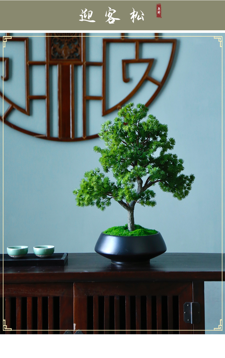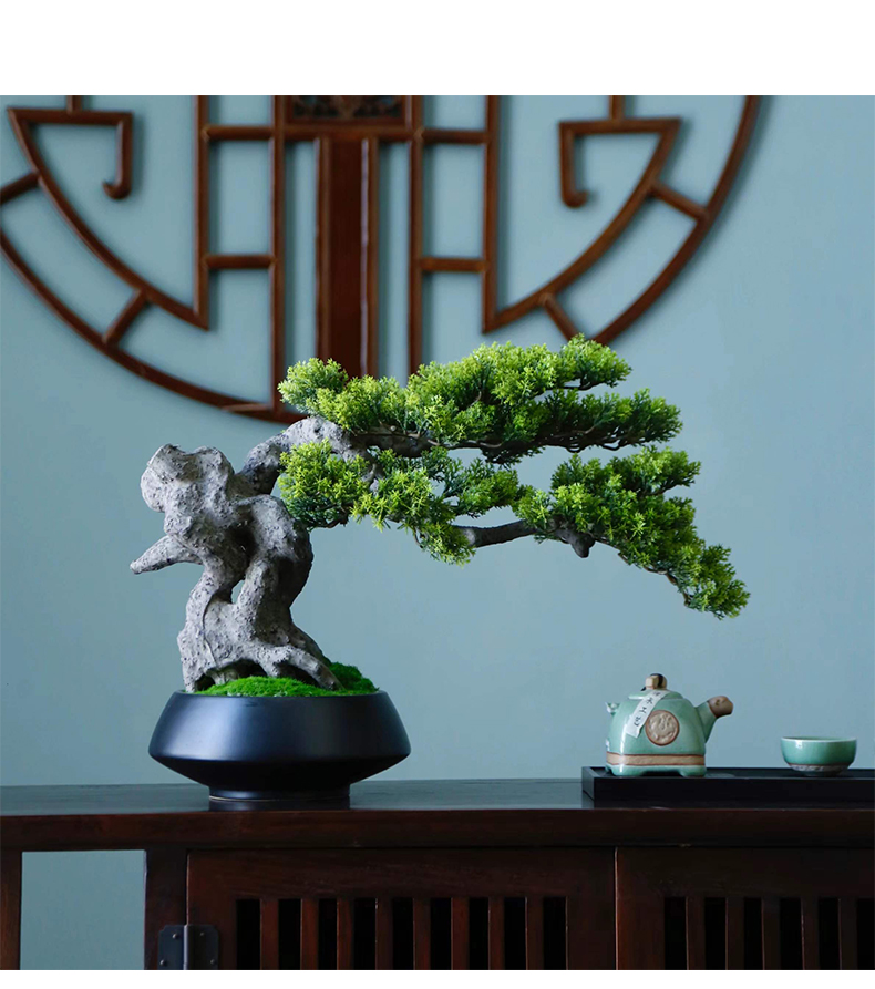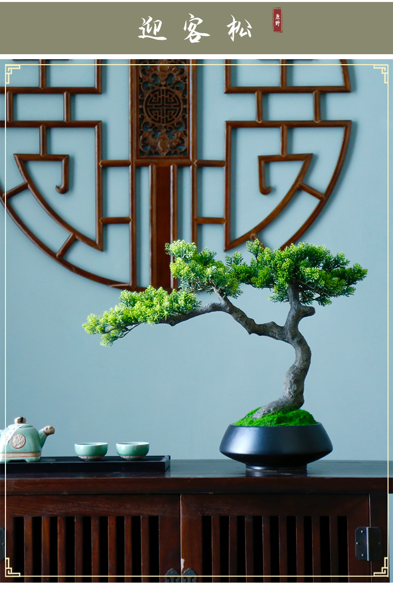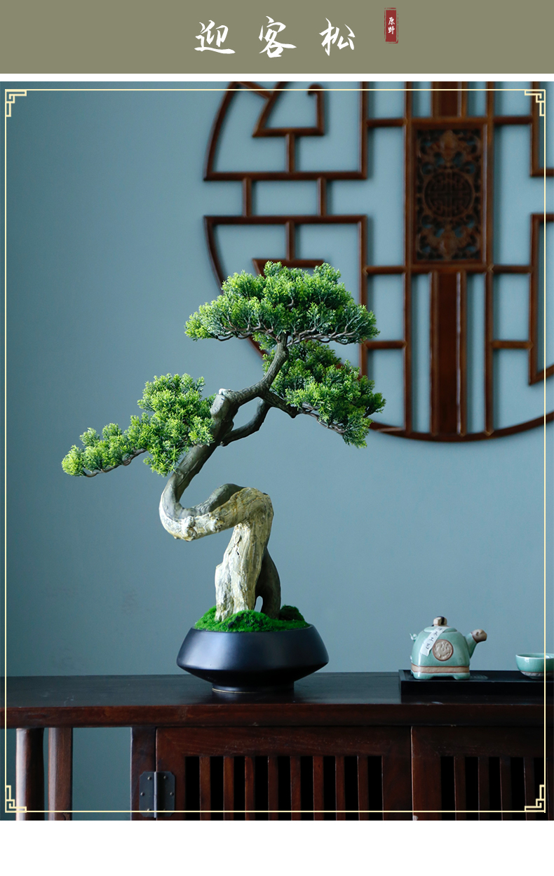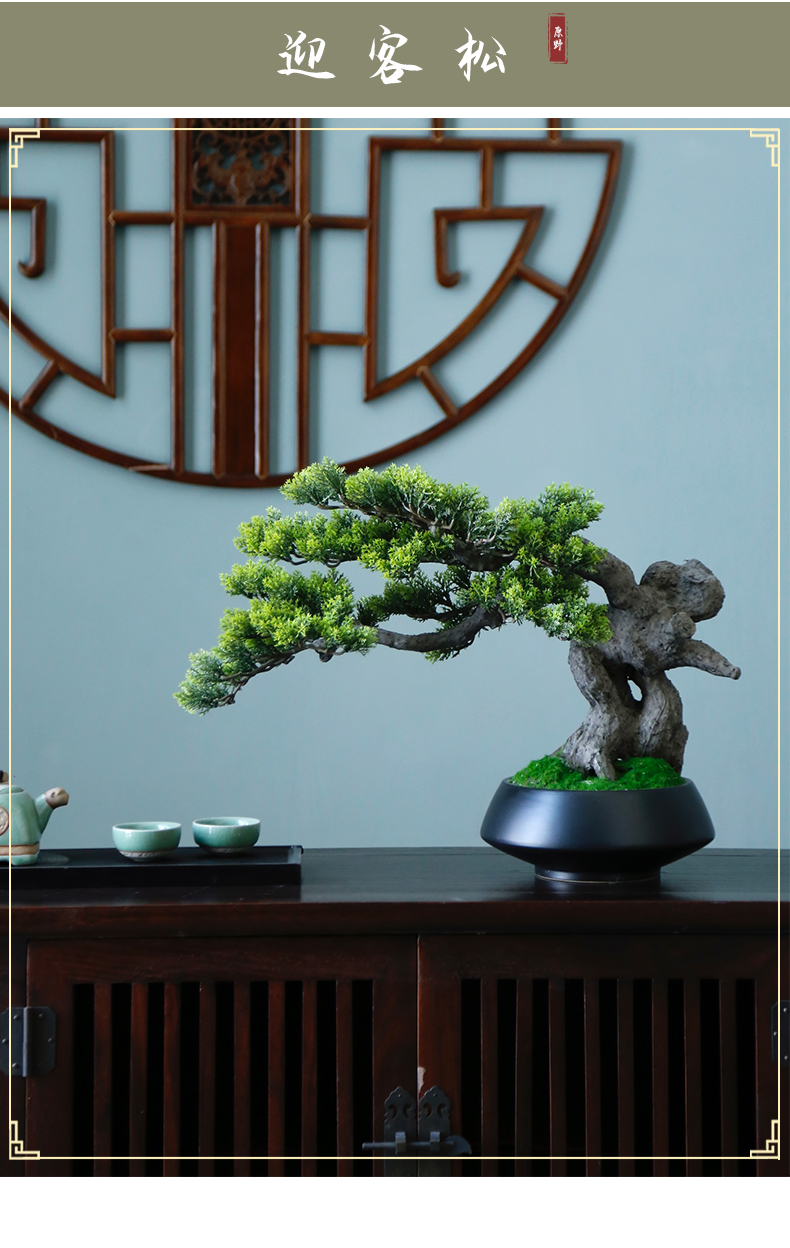 新中式禅意仿真迎客松盆景摆件客厅玄关茶桌酒店软装饰品绿植景观