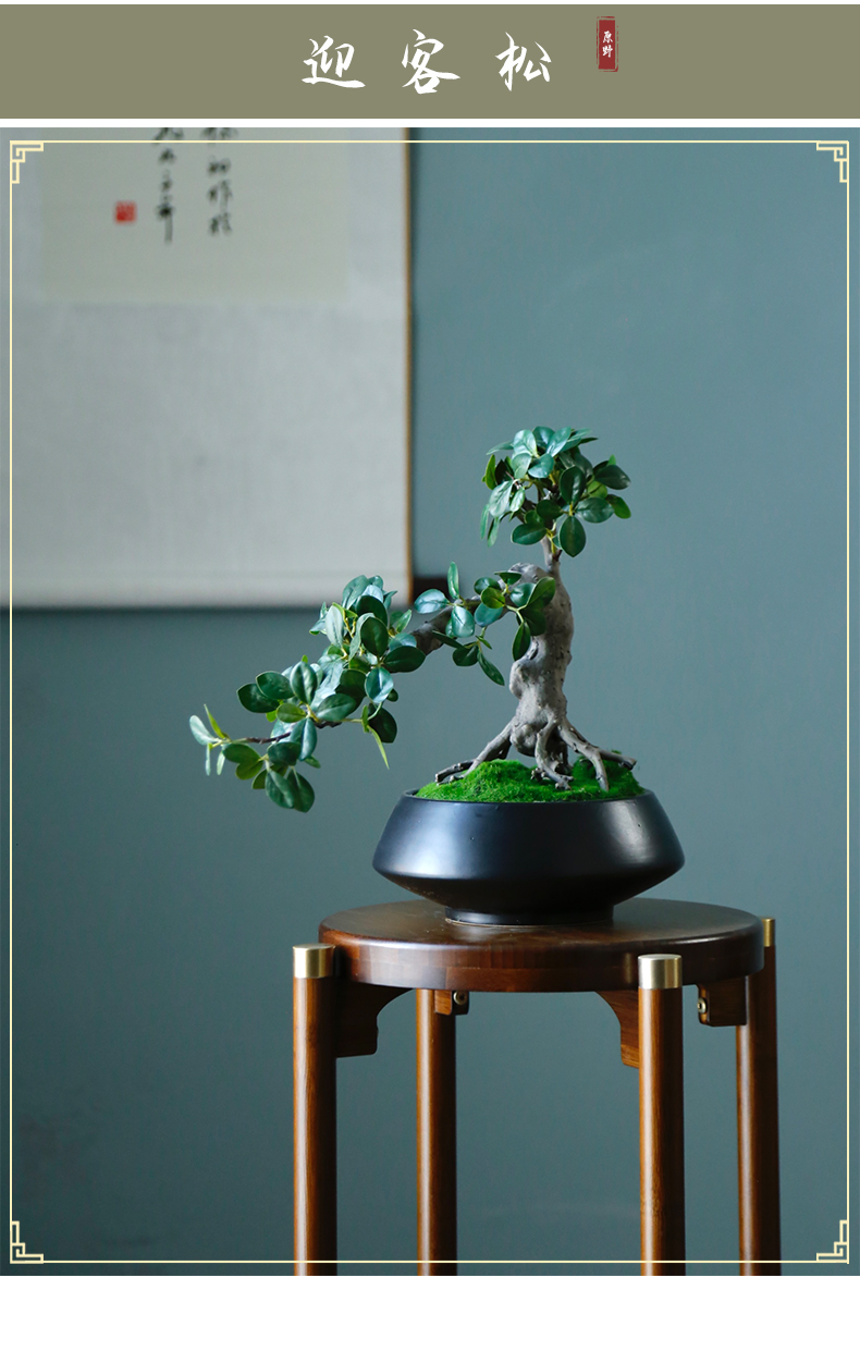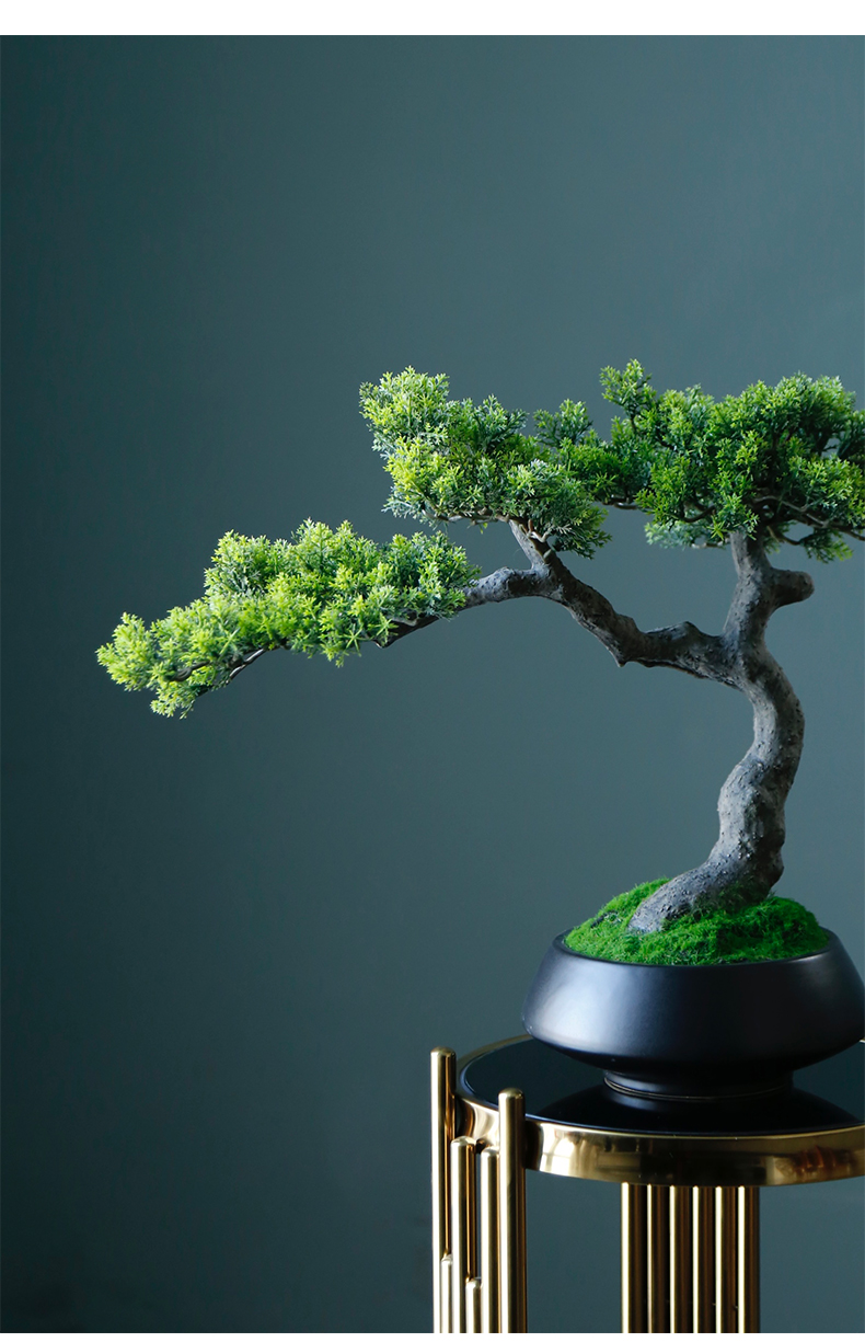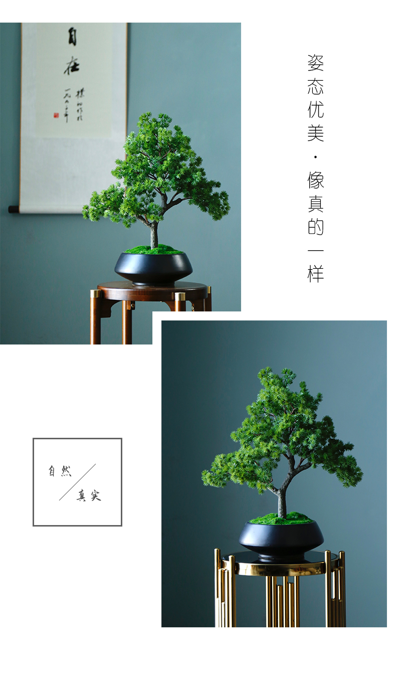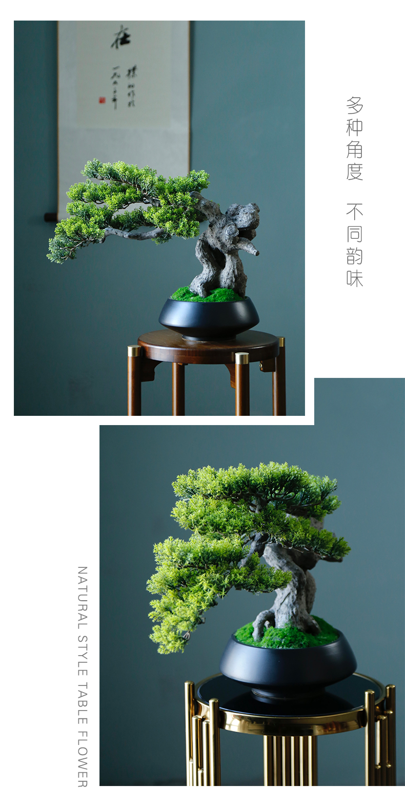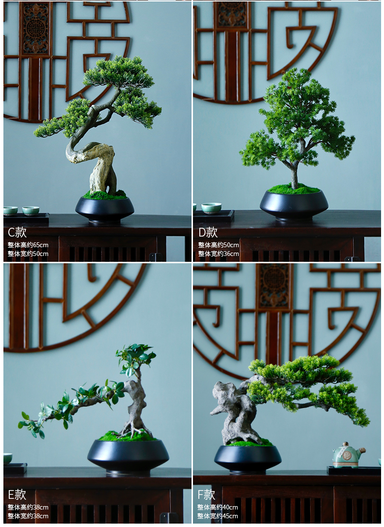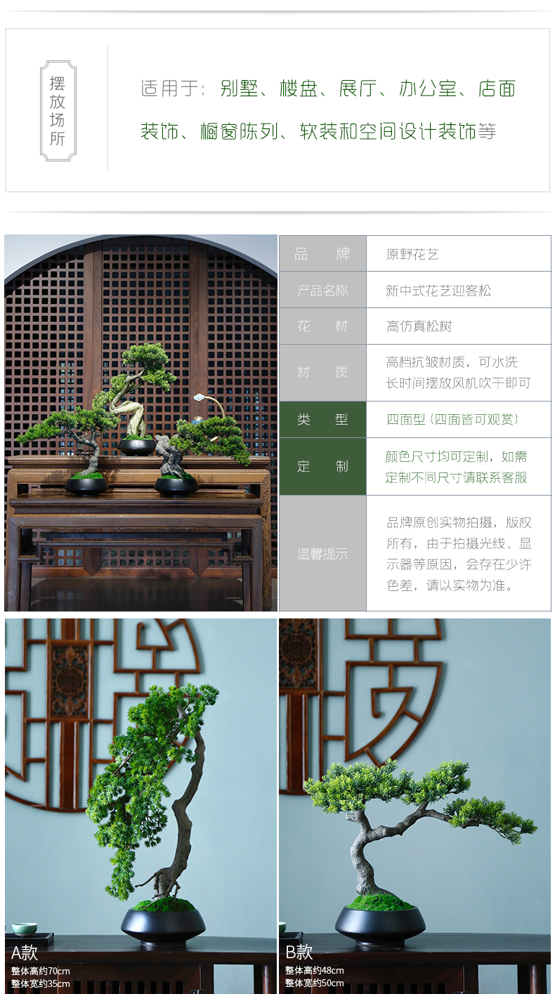 新中式禅意仿真迎客松盆景摆件客厅玄关茶桌酒店软装饰品绿植景观