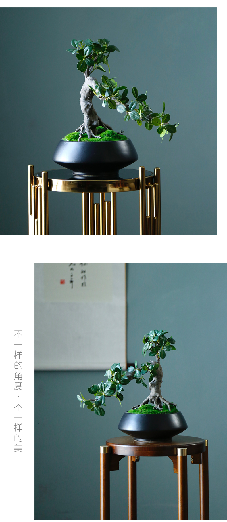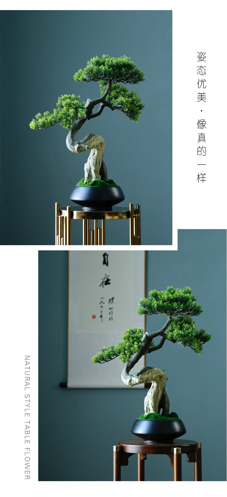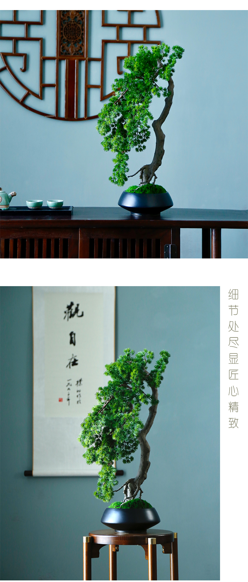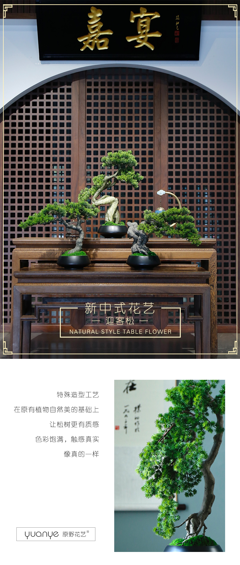 新中式禅意仿真迎客松盆景摆件客厅玄关茶桌酒店软装饰品绿植景观