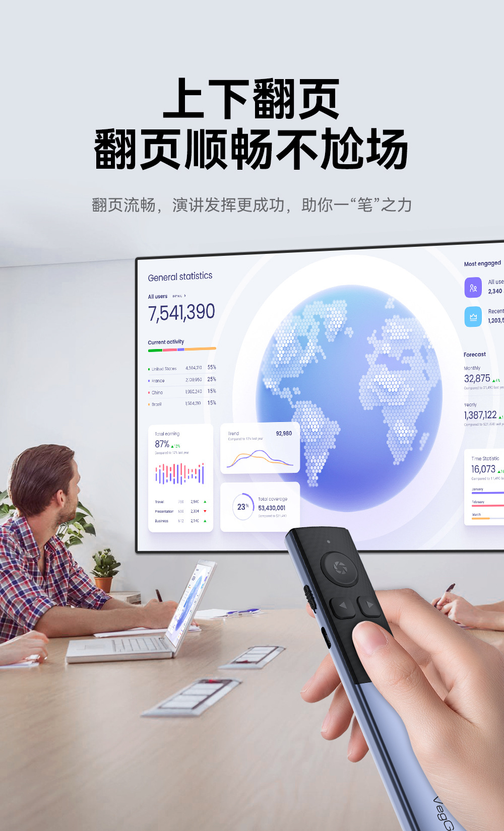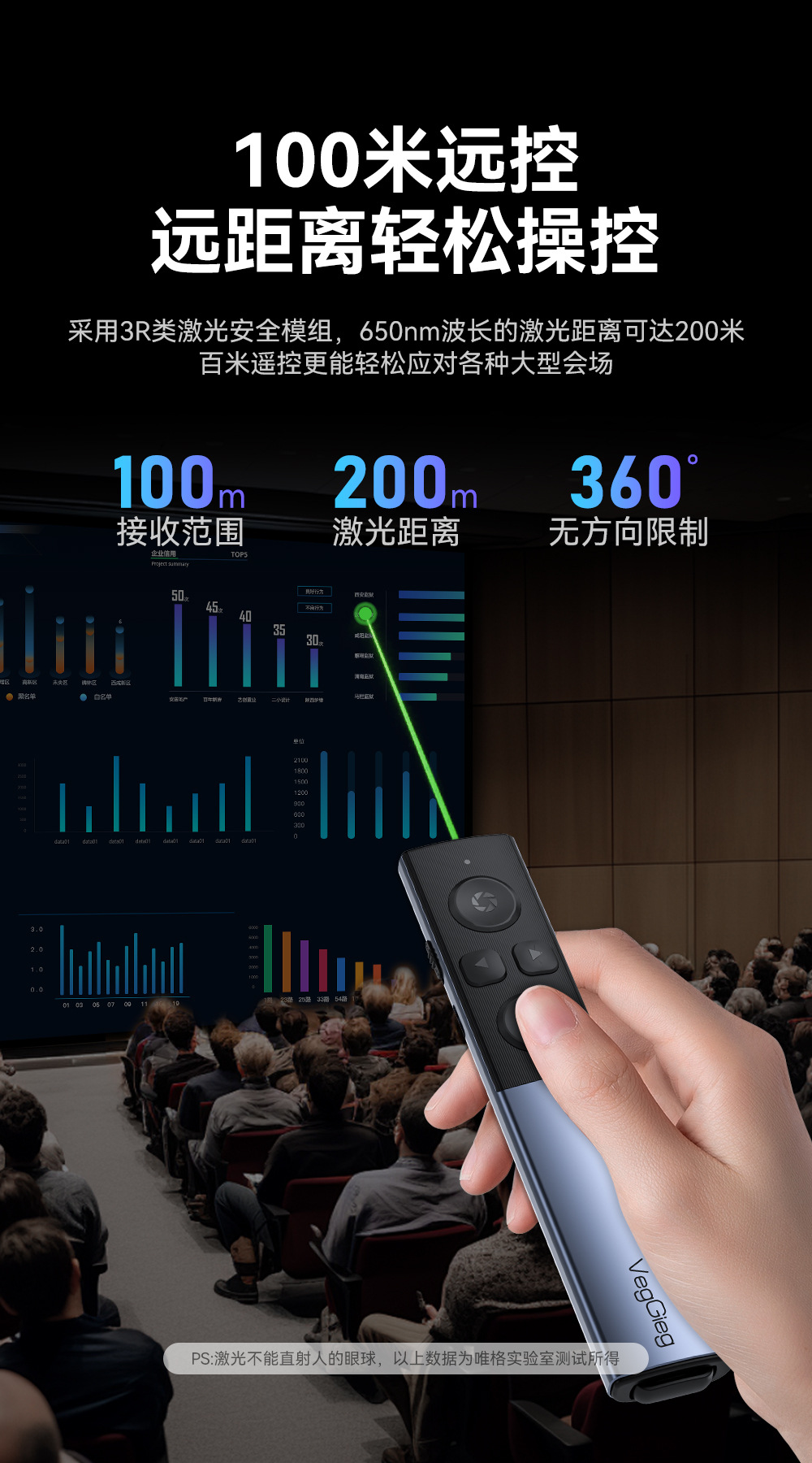 严选【红光多功能100米翻页笔】多媒体翻即插即用电子遥控红外指示会议PPT教鞭激光笔1个