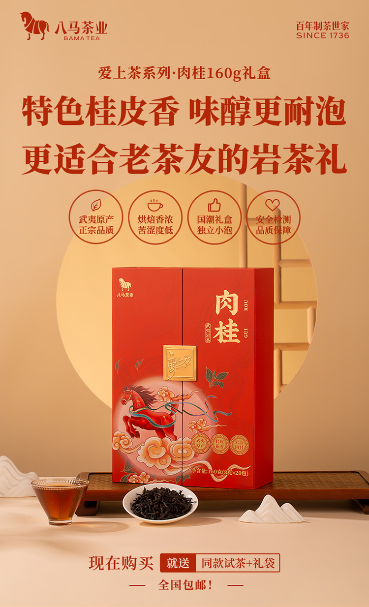 八马茶业 | 武夷岩茶肉桂乌龙茶爱上茶送人茶叶礼盒装160g