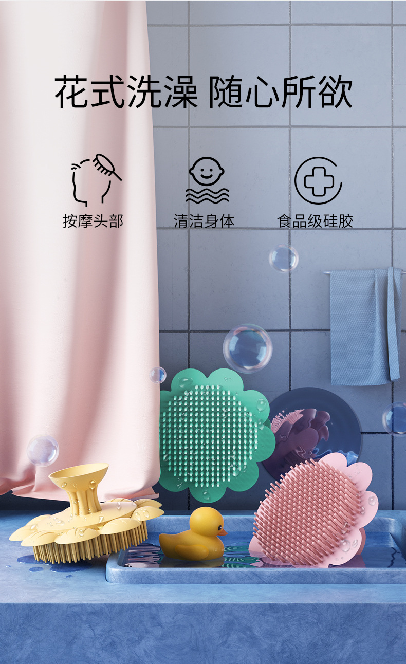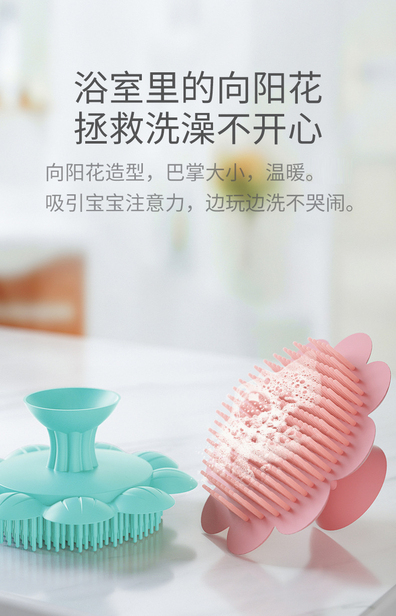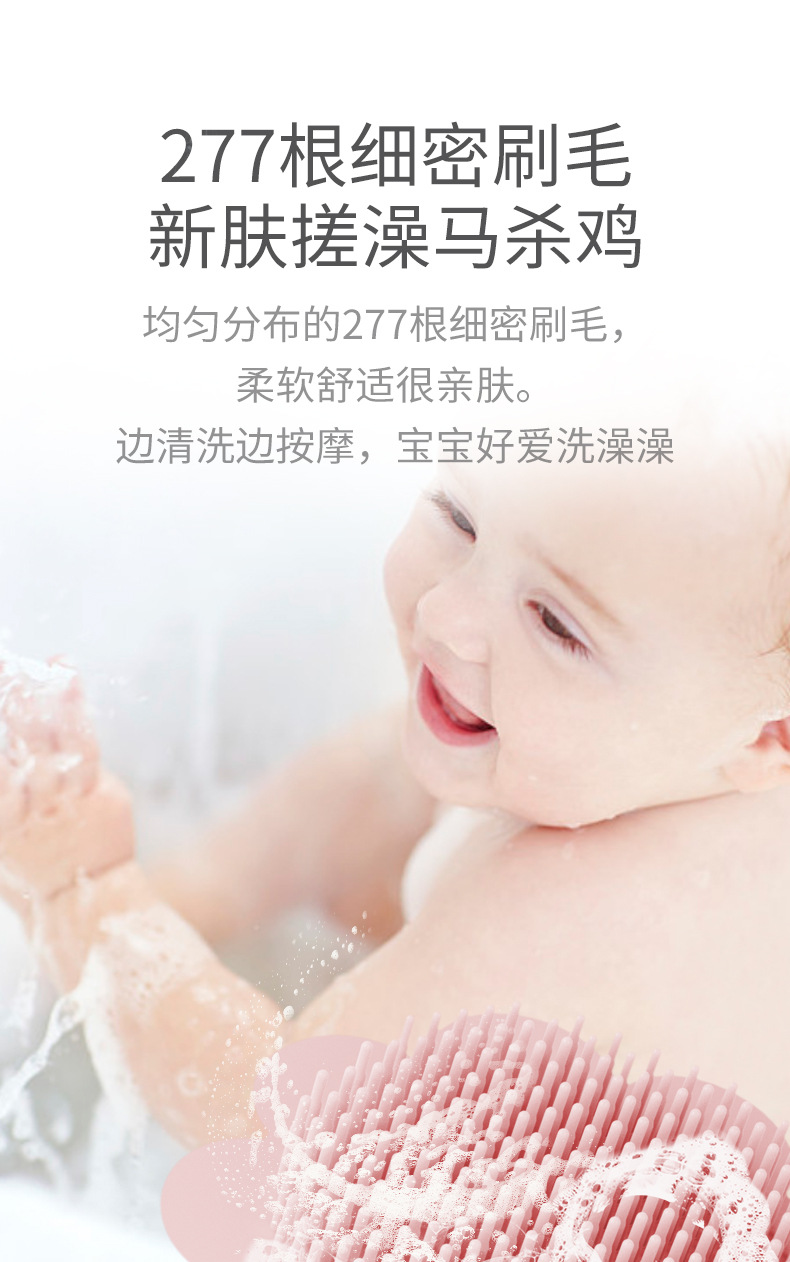 【277根细密刷毛 边清洗边按摩 宝宝爱上洗澡澡】婴儿硅胶洗头刷去头垢新生儿洗澡沐浴搓泥儿童搓澡棉3个月宝宝洗澡刷软