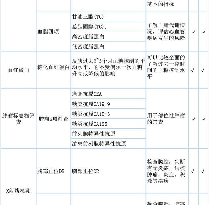 全民关爱体检套餐