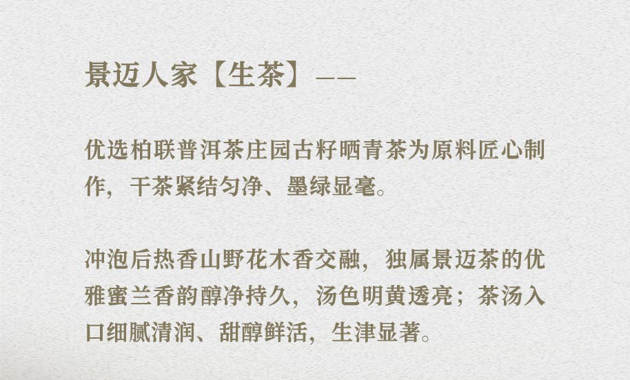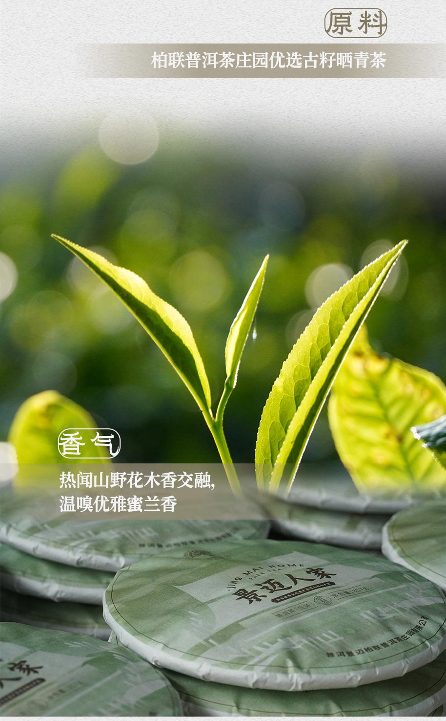 柏联普洱 茶叶 2023景迈人家 生茶 优选 古籽晒青茶 饼茶 紧压茶357g