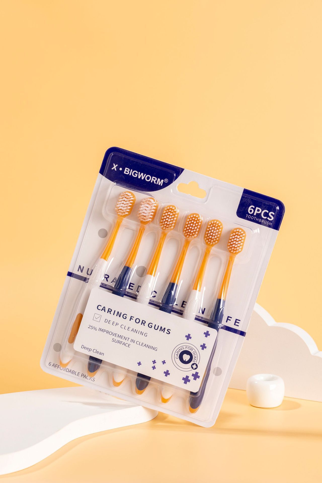 【秒杀❗️9.9抢2套12支🔥超市同款牙刷】刷毛柔软且弹性好,能清洁牙齿表面和牙缝,山mu高级软毛成人家用6支装宽头牙刷