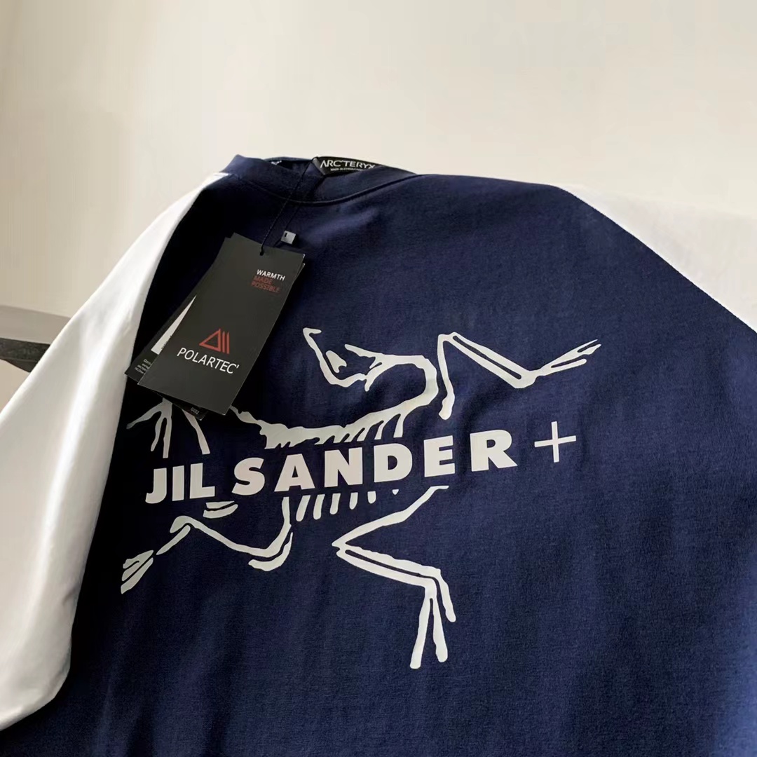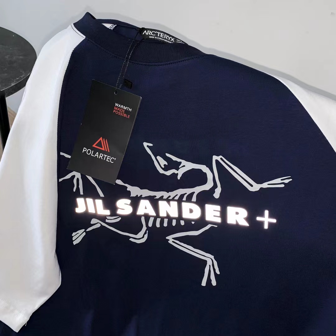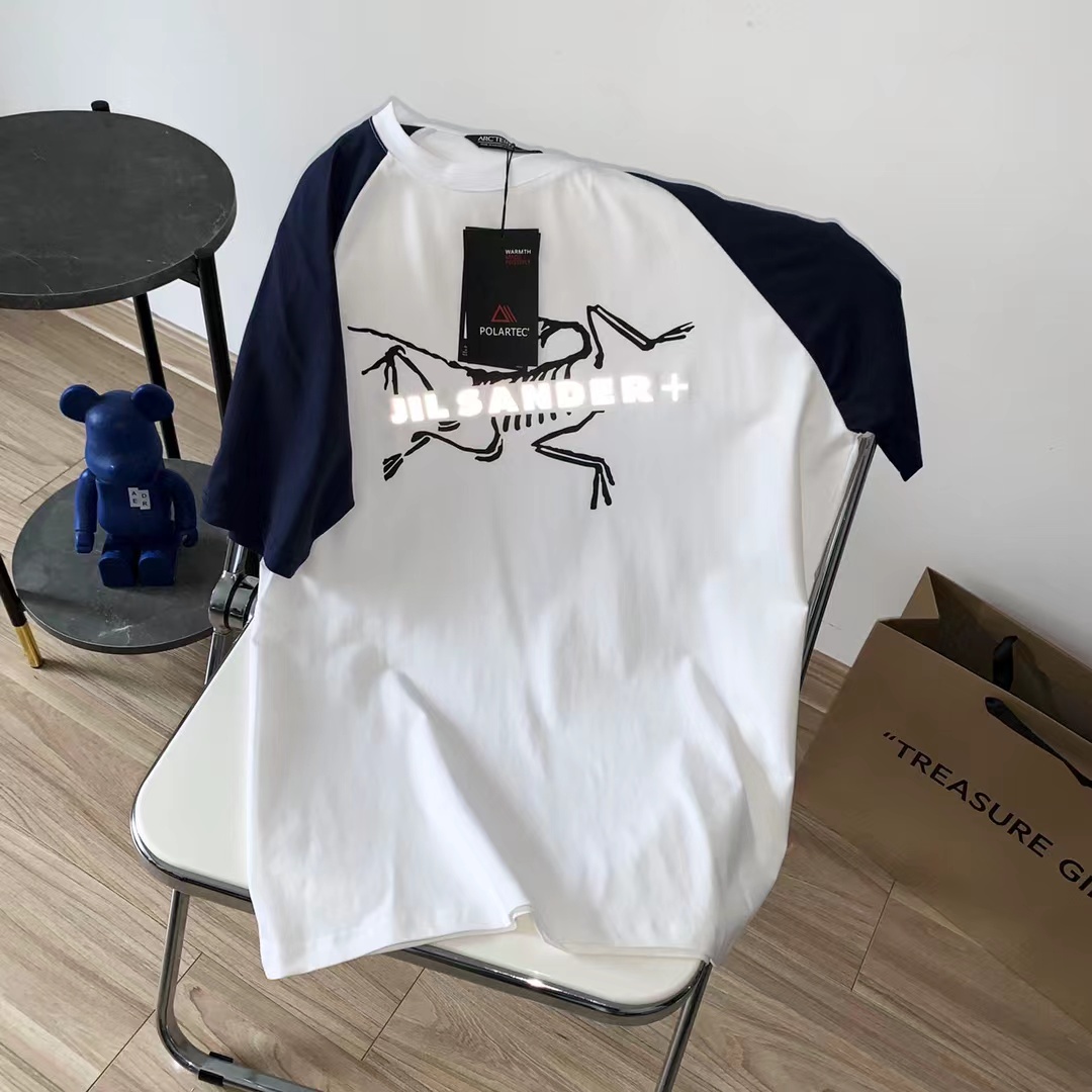 始祖鸟✖️JIL Sander极简主义3m字母反光大标鸡骨架休闲圆领拼接短袖T恤