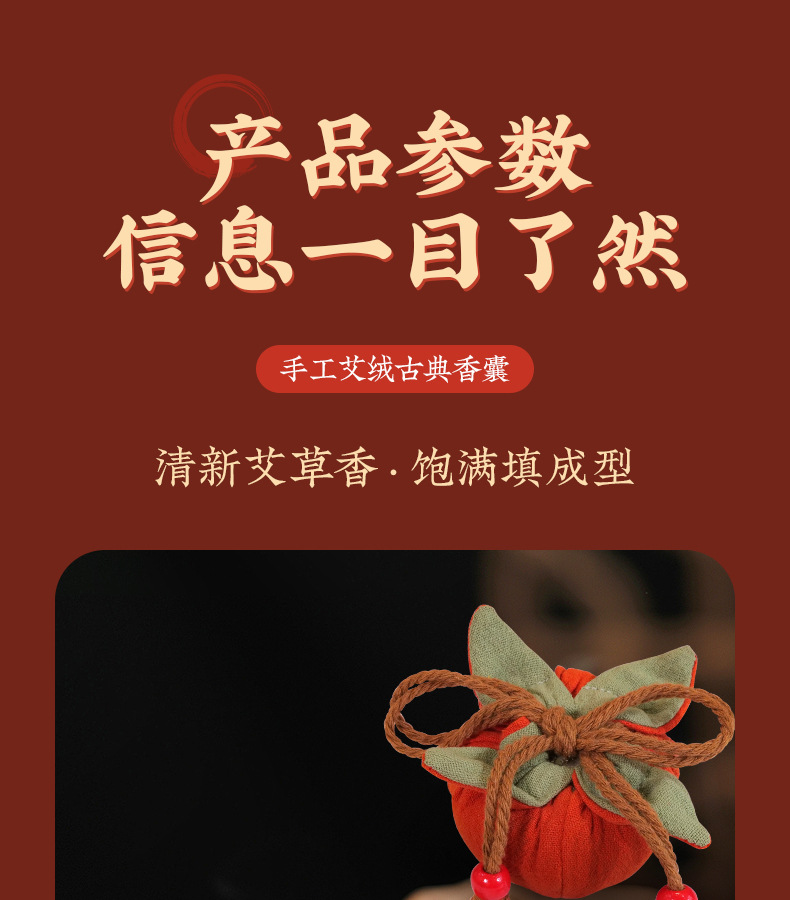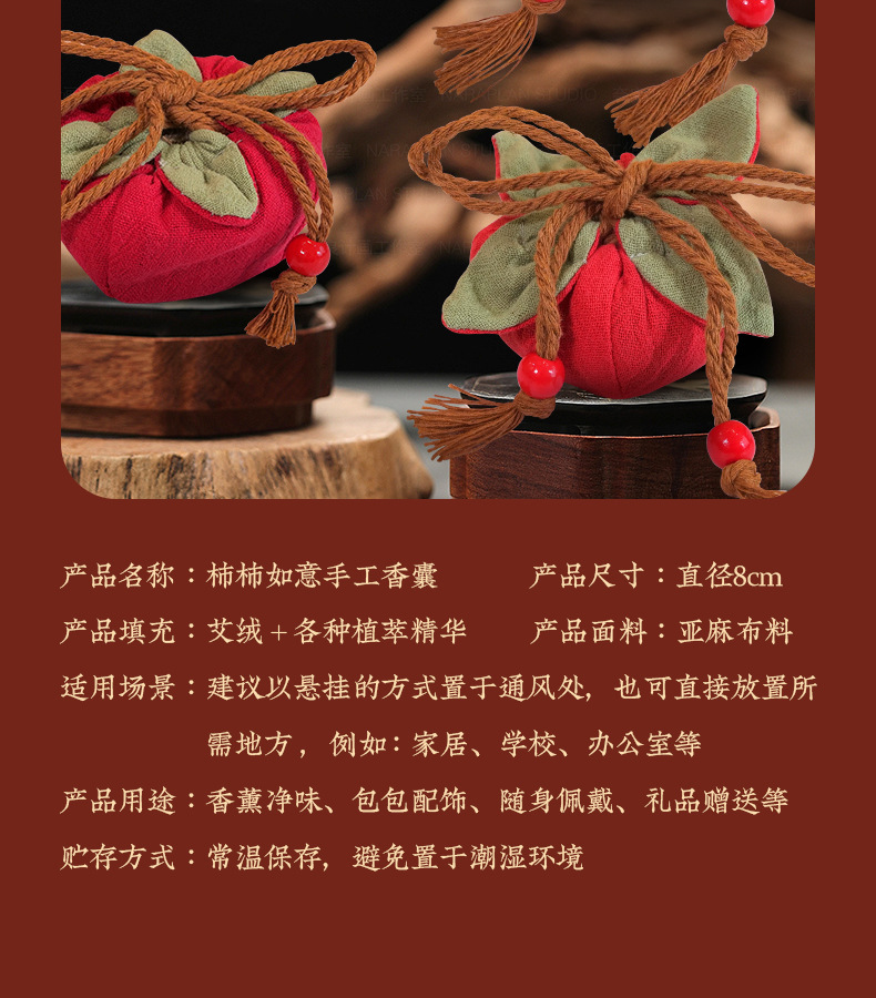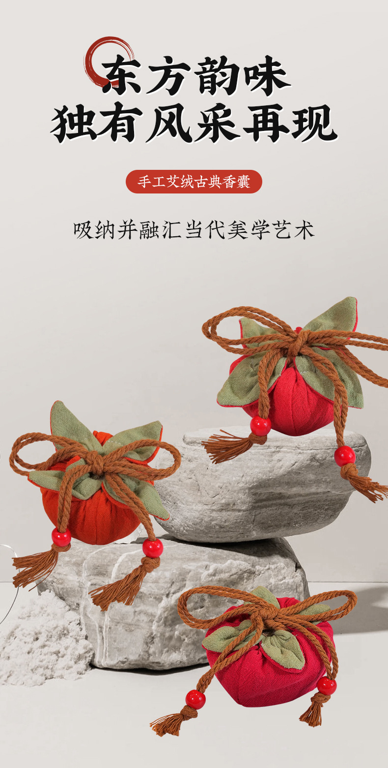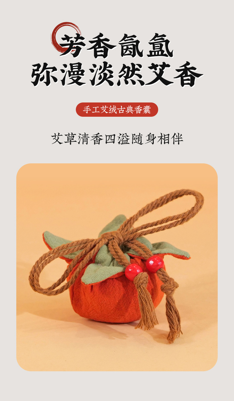 【柿柿如意❗️端午节艾草香包】悬挂净味,寓意美好,香薰净味随身佩戴包包配饰车载挂件礼品艾绒香囊家用祛味香薰香袋