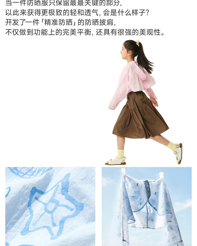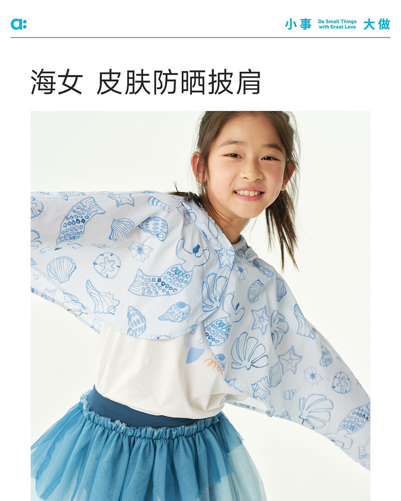 allblu幼岚【海女皮肤防晒披肩】儿童防晒衣26夏季新品连帽斗篷式