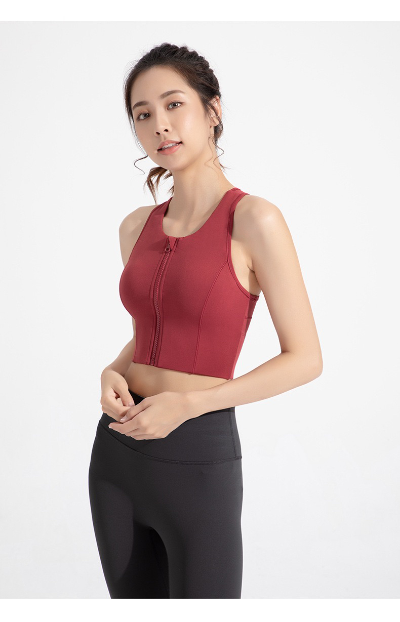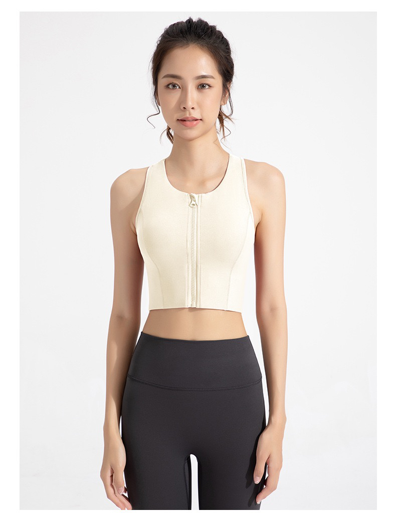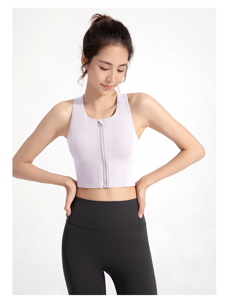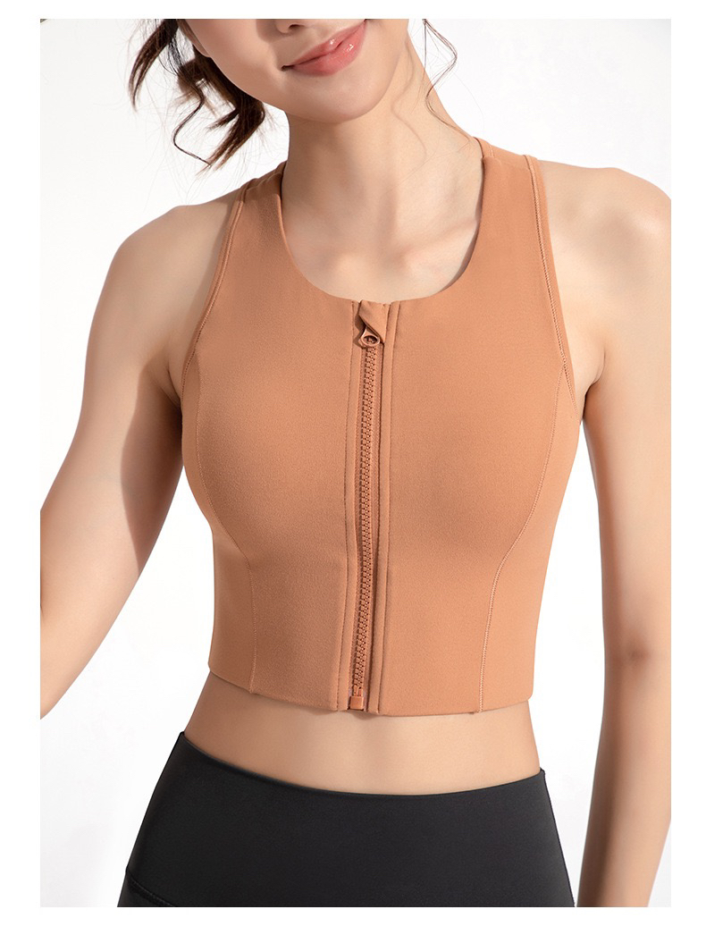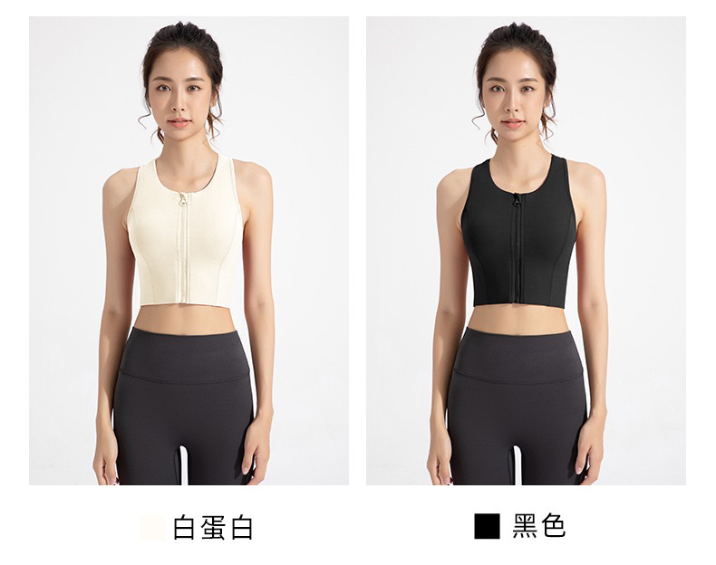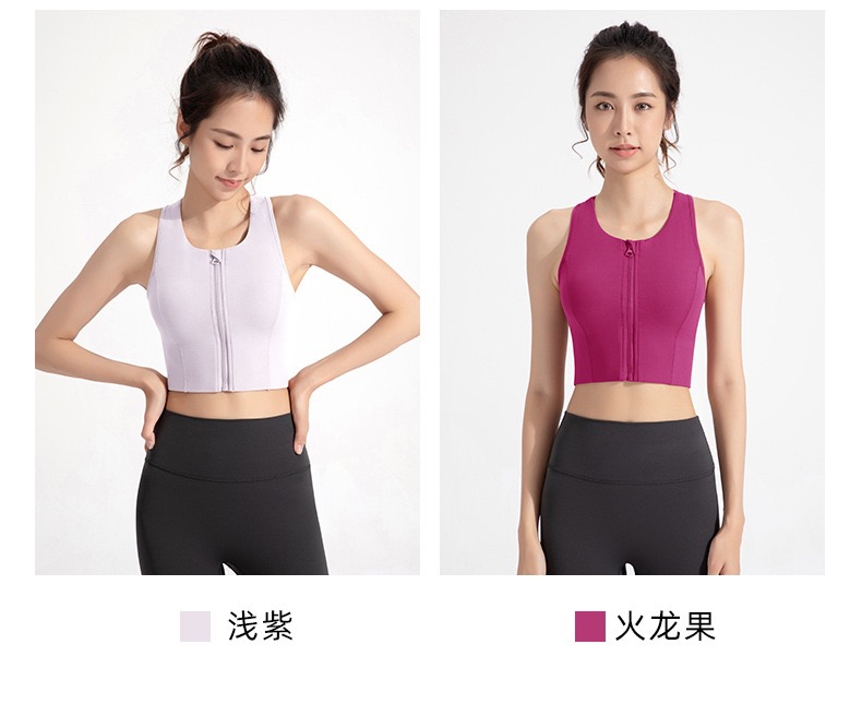 新款抗菌运动内衣女防震高强度跑步瑜伽背心裸感前拉链文胸 YNWX32-23