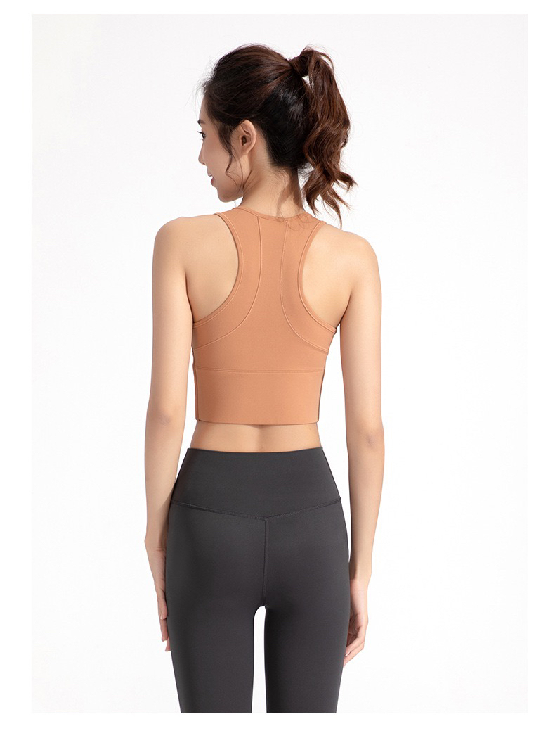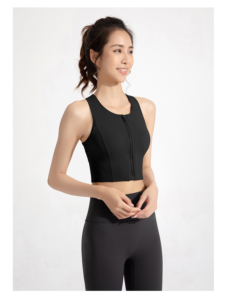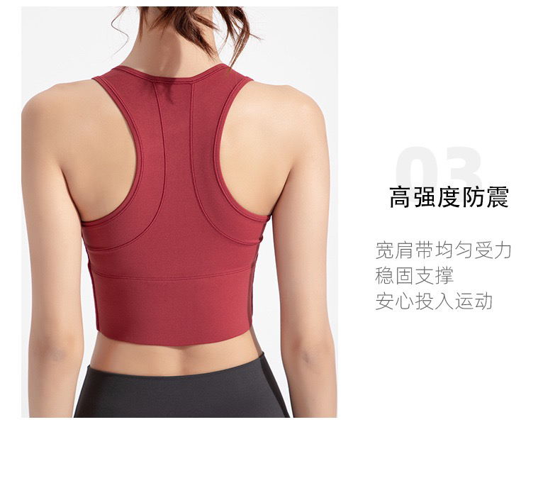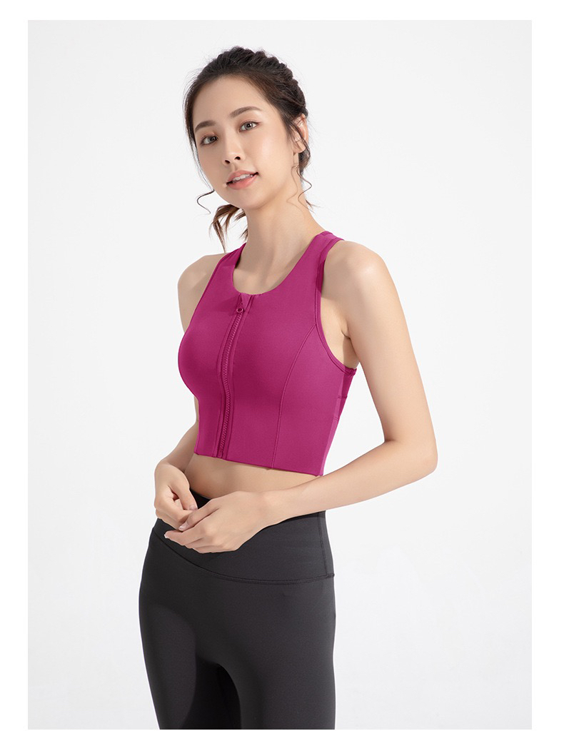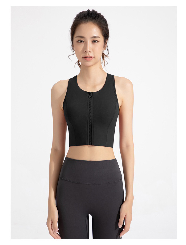 新款抗菌运动内衣女防震高强度跑步瑜伽背心裸感前拉链文胸 YNWX32-23