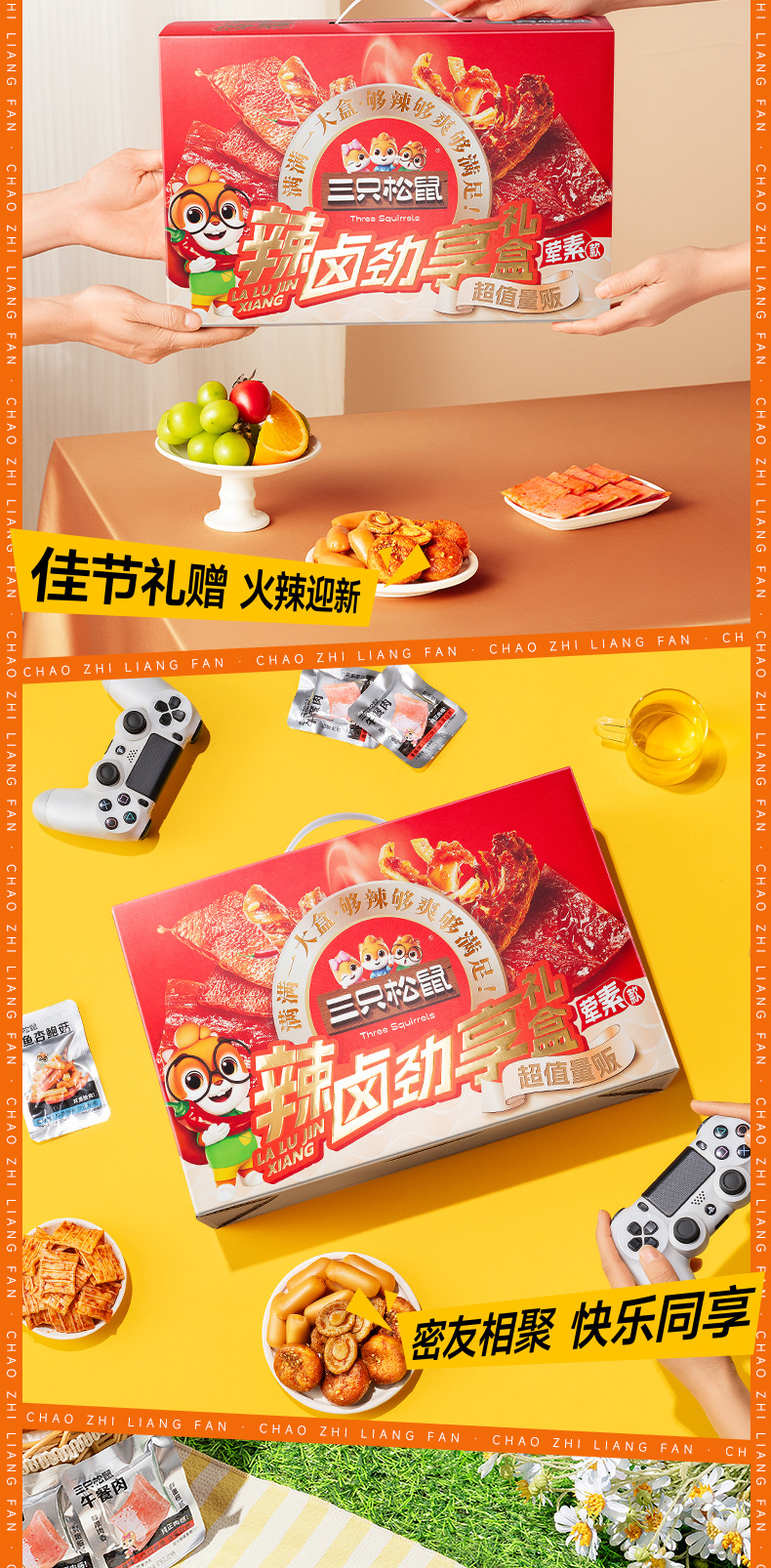 【三只松鼠_辣卤礼包150包】零食大礼包整箱卤味肉类夜宵