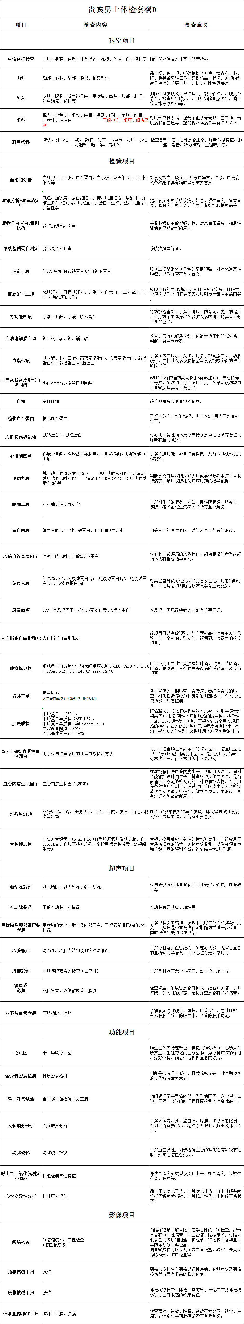高端贵宾男士健康体检D套餐