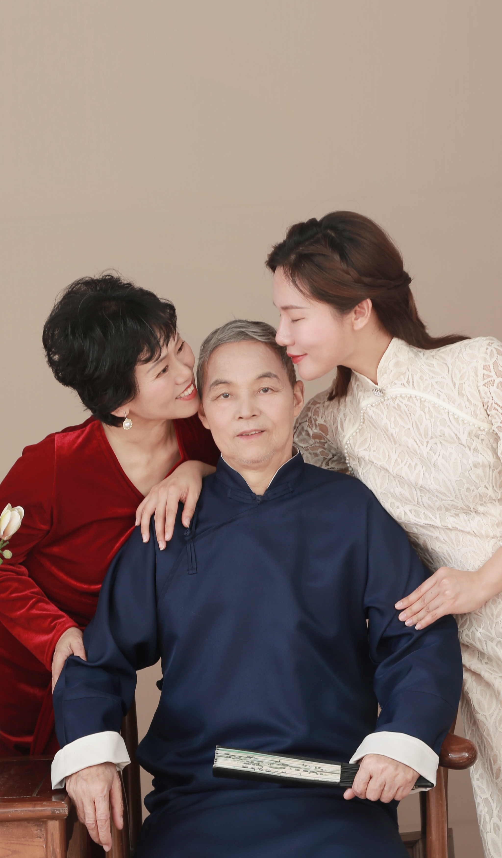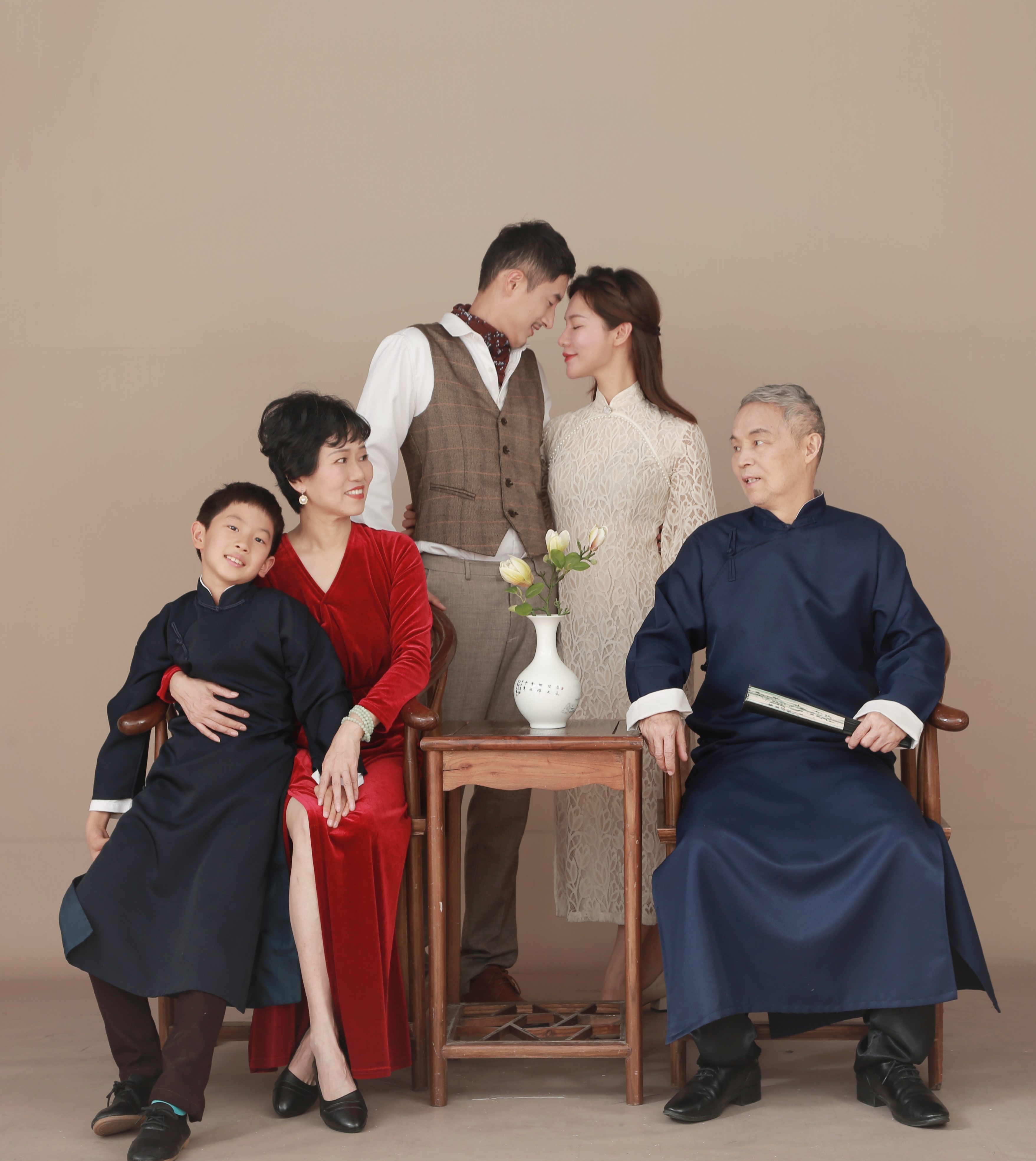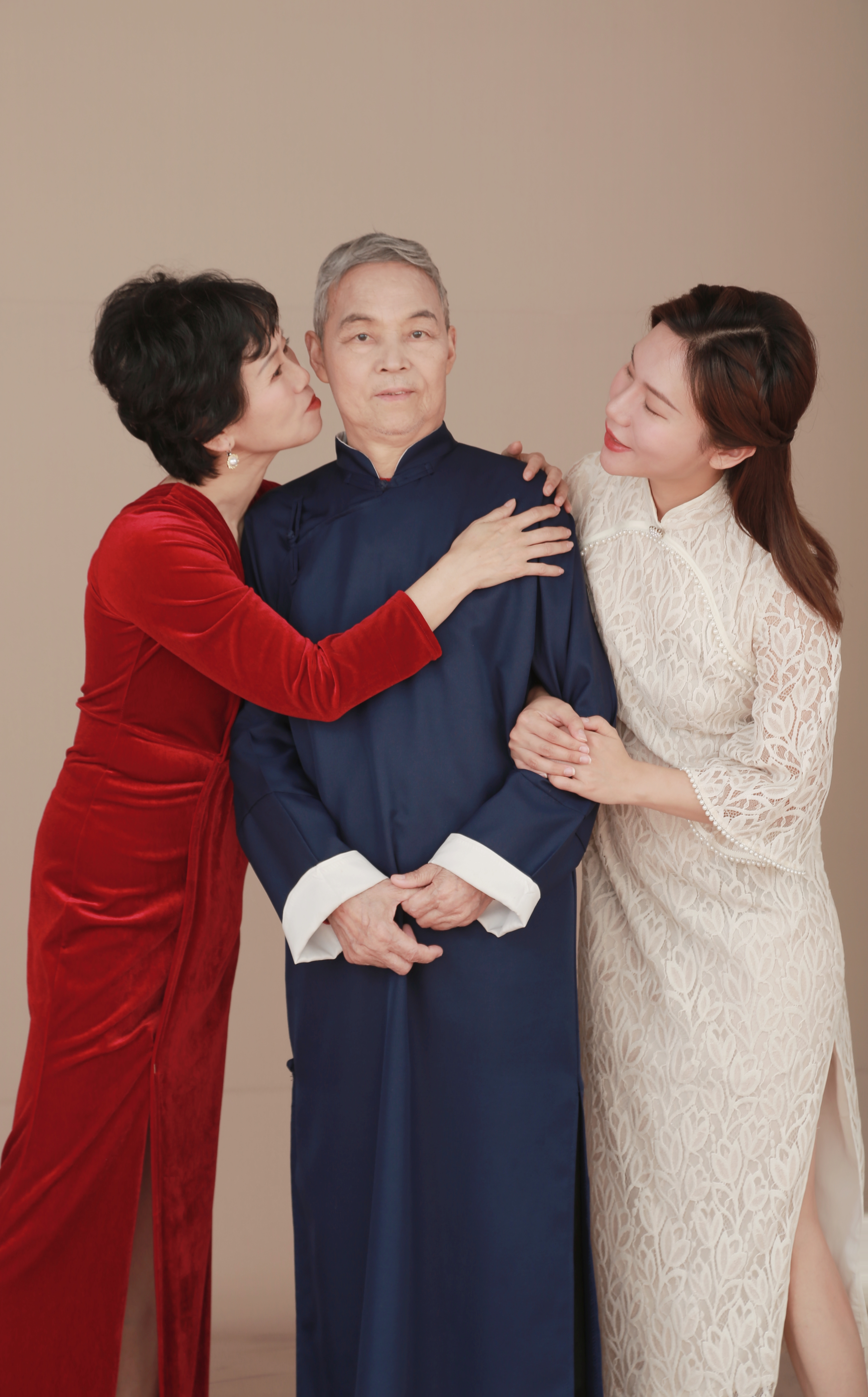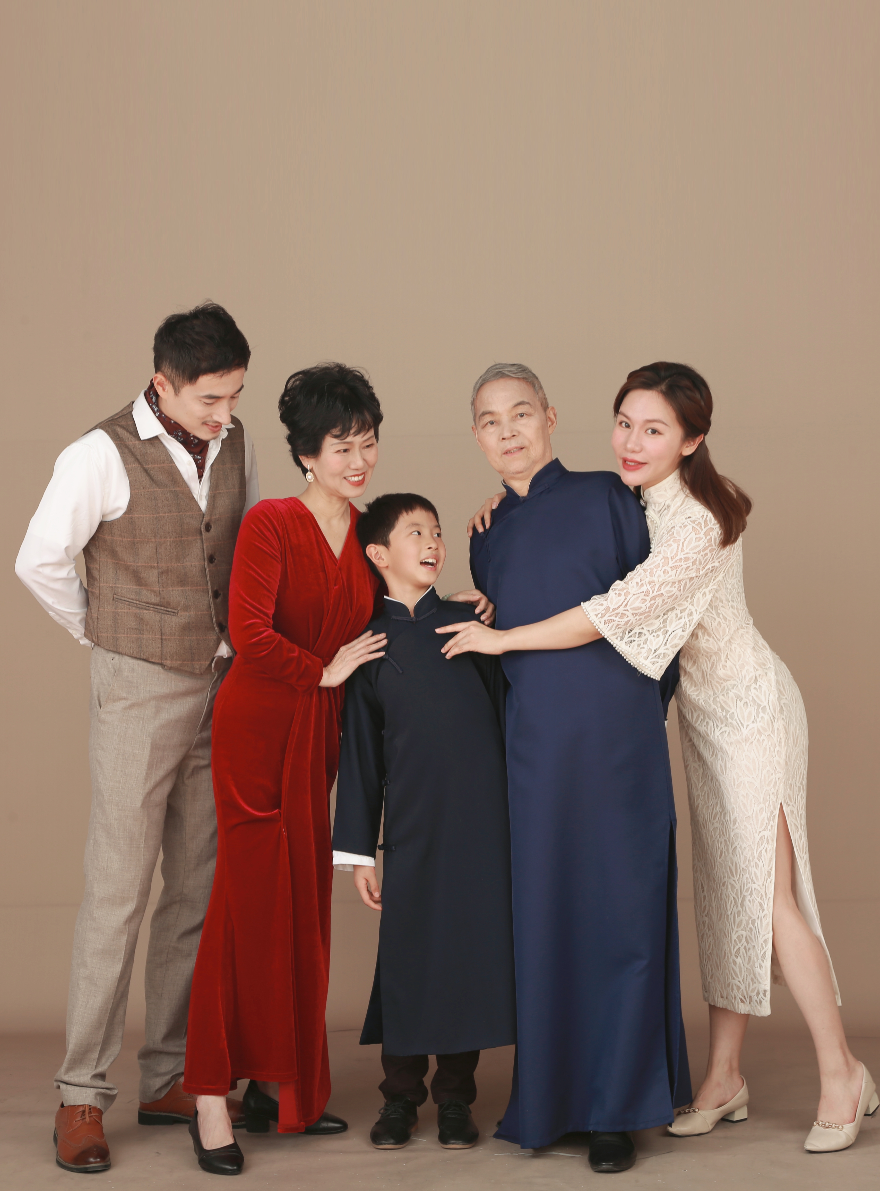 前些天,带父母一起拍了一组全家福穿的就是这件旗袍。