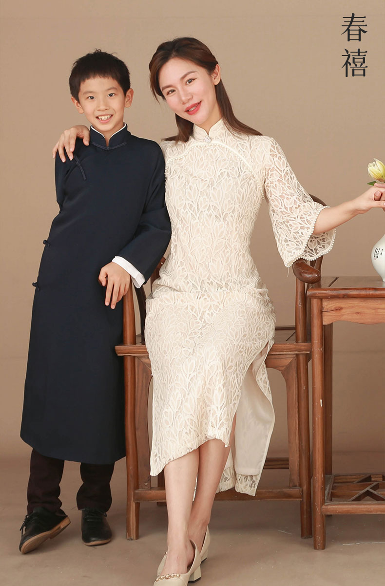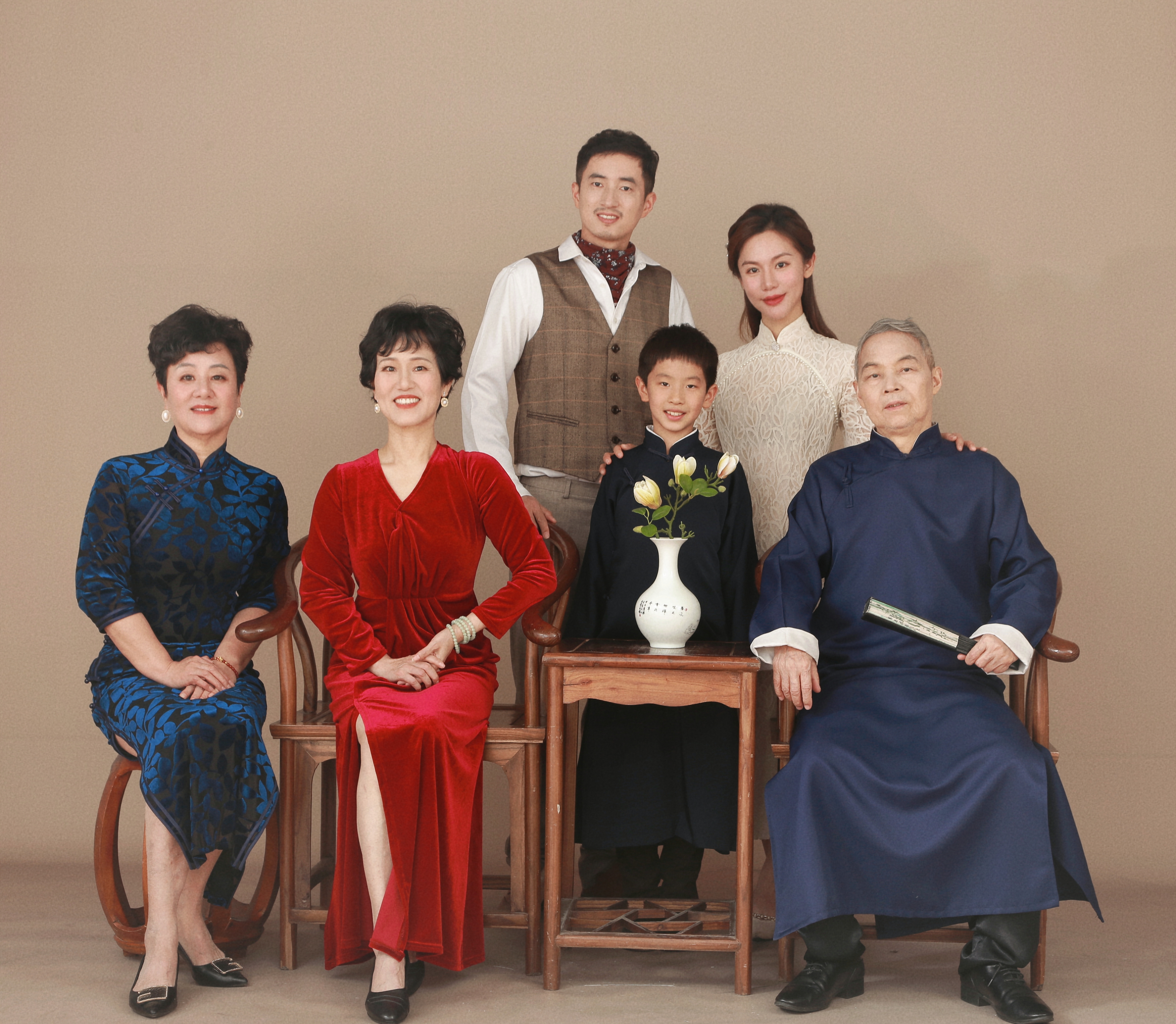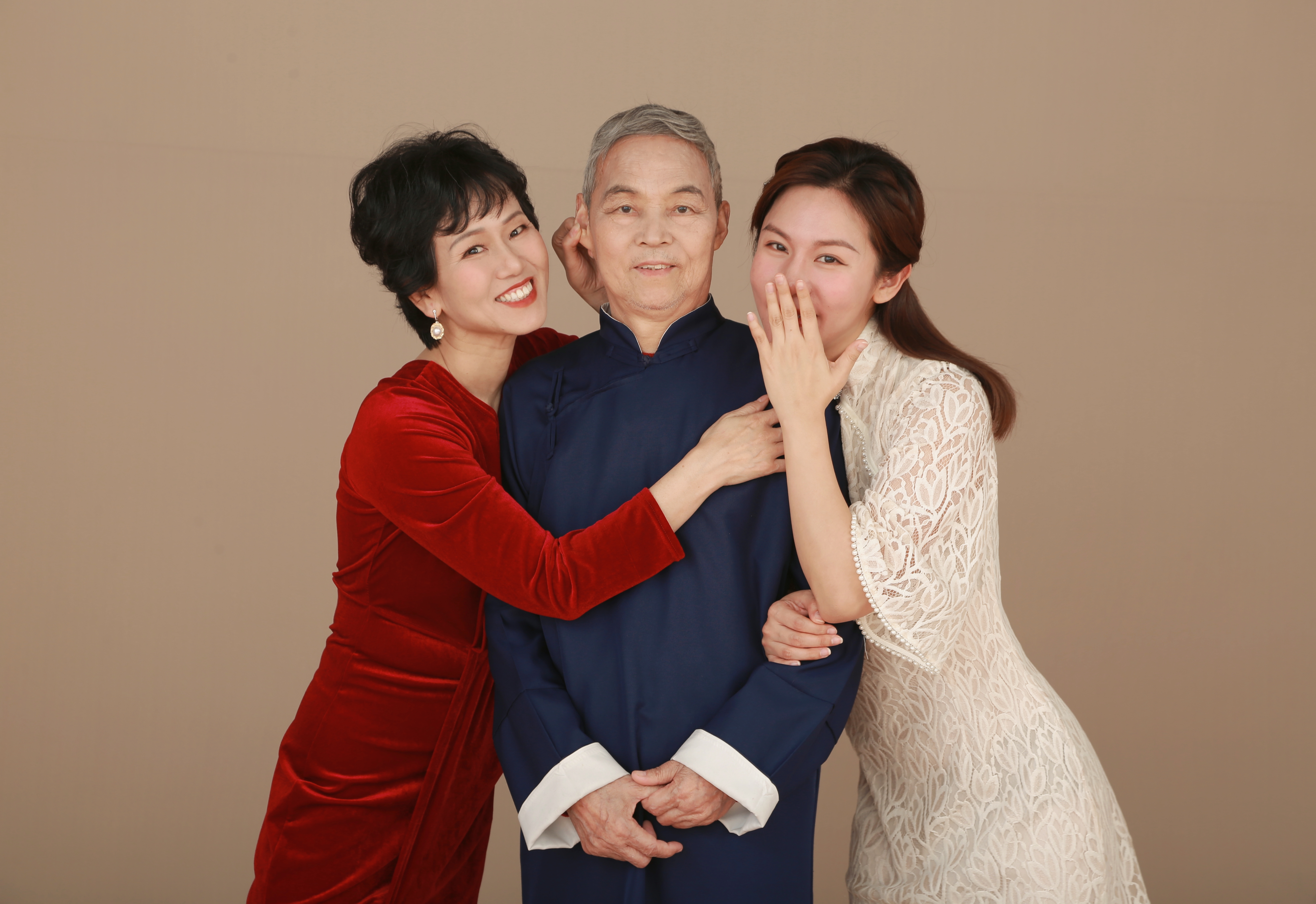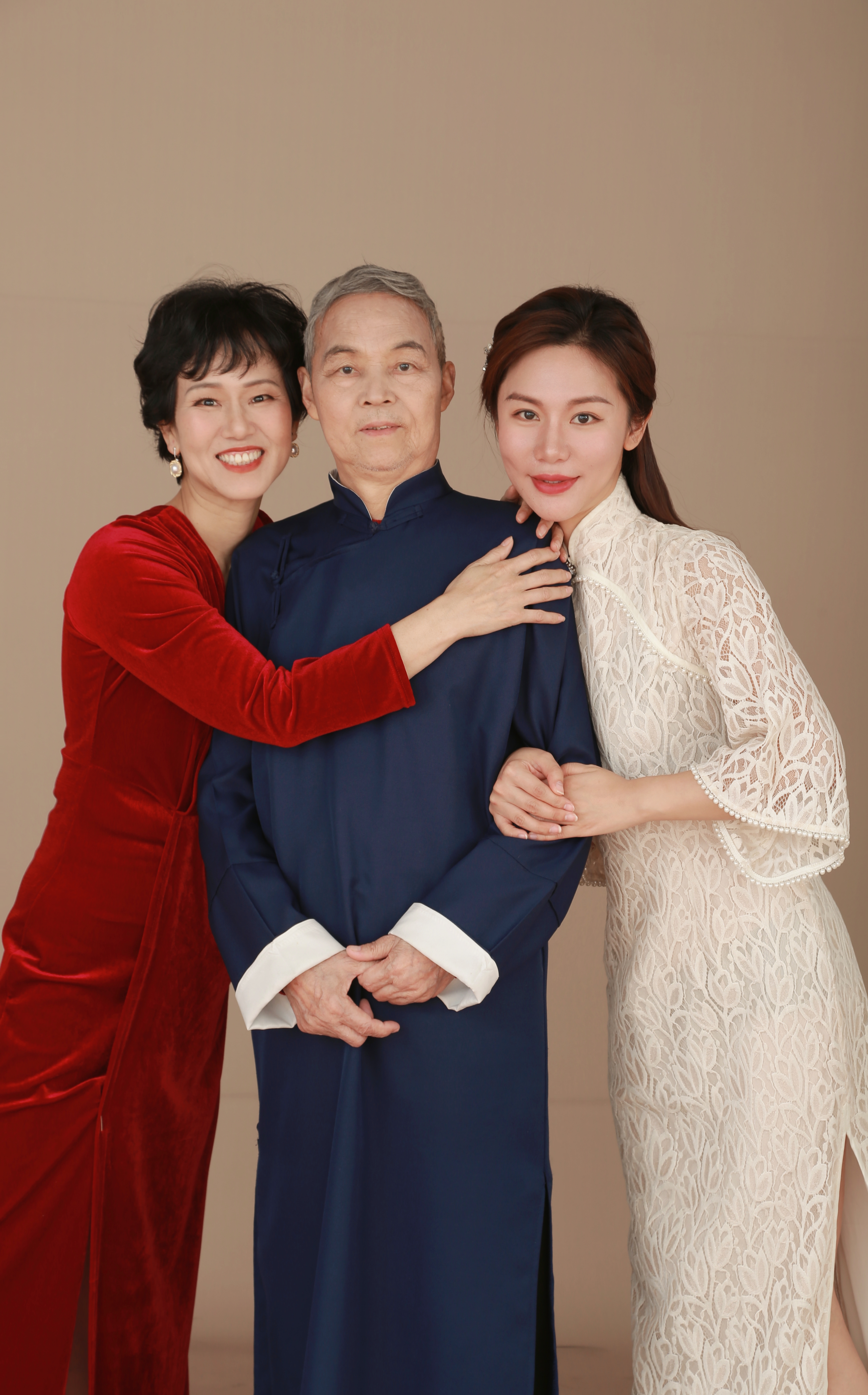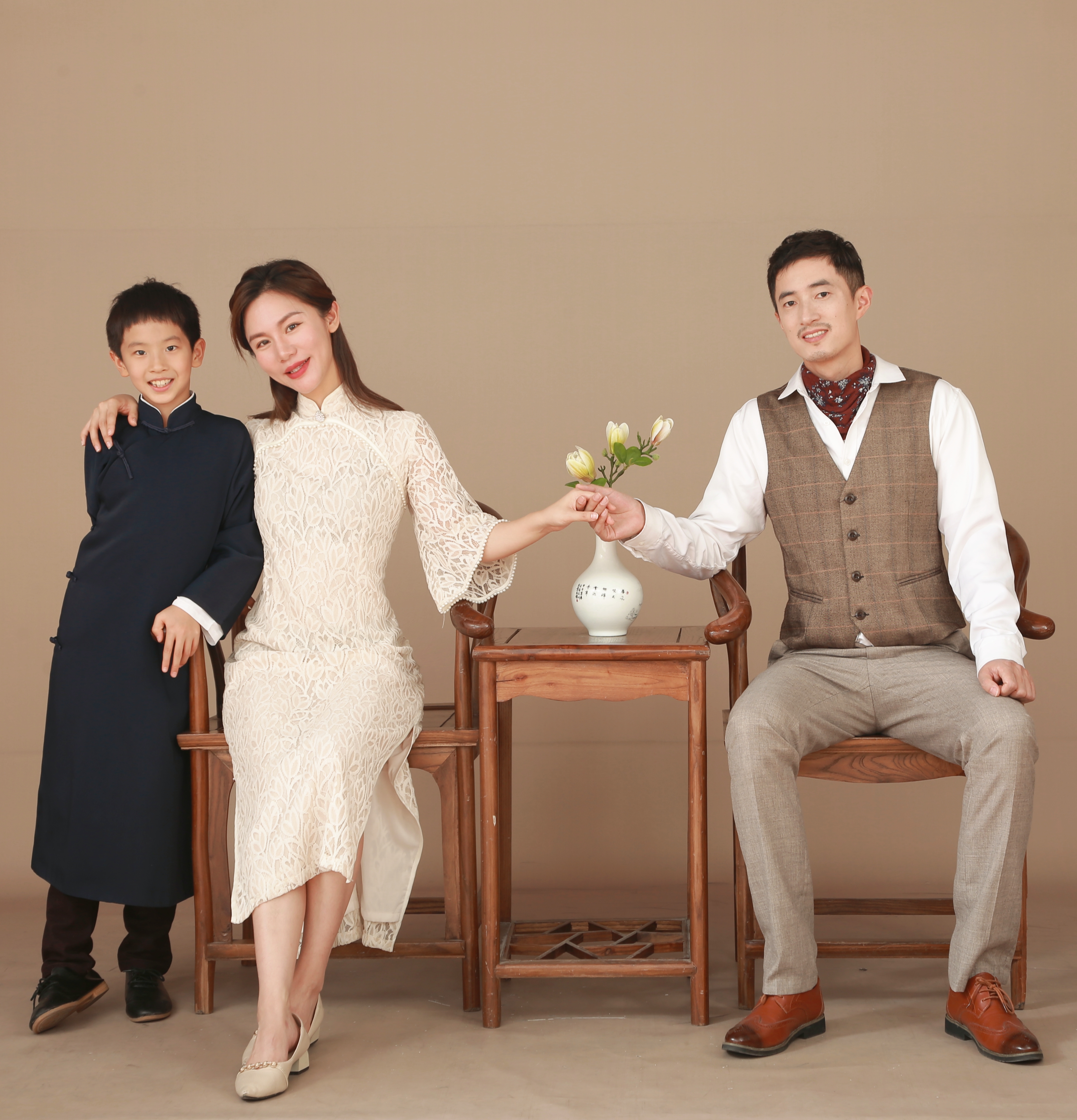 前些天,带父母一起拍了一组全家福穿的就是这件旗袍。