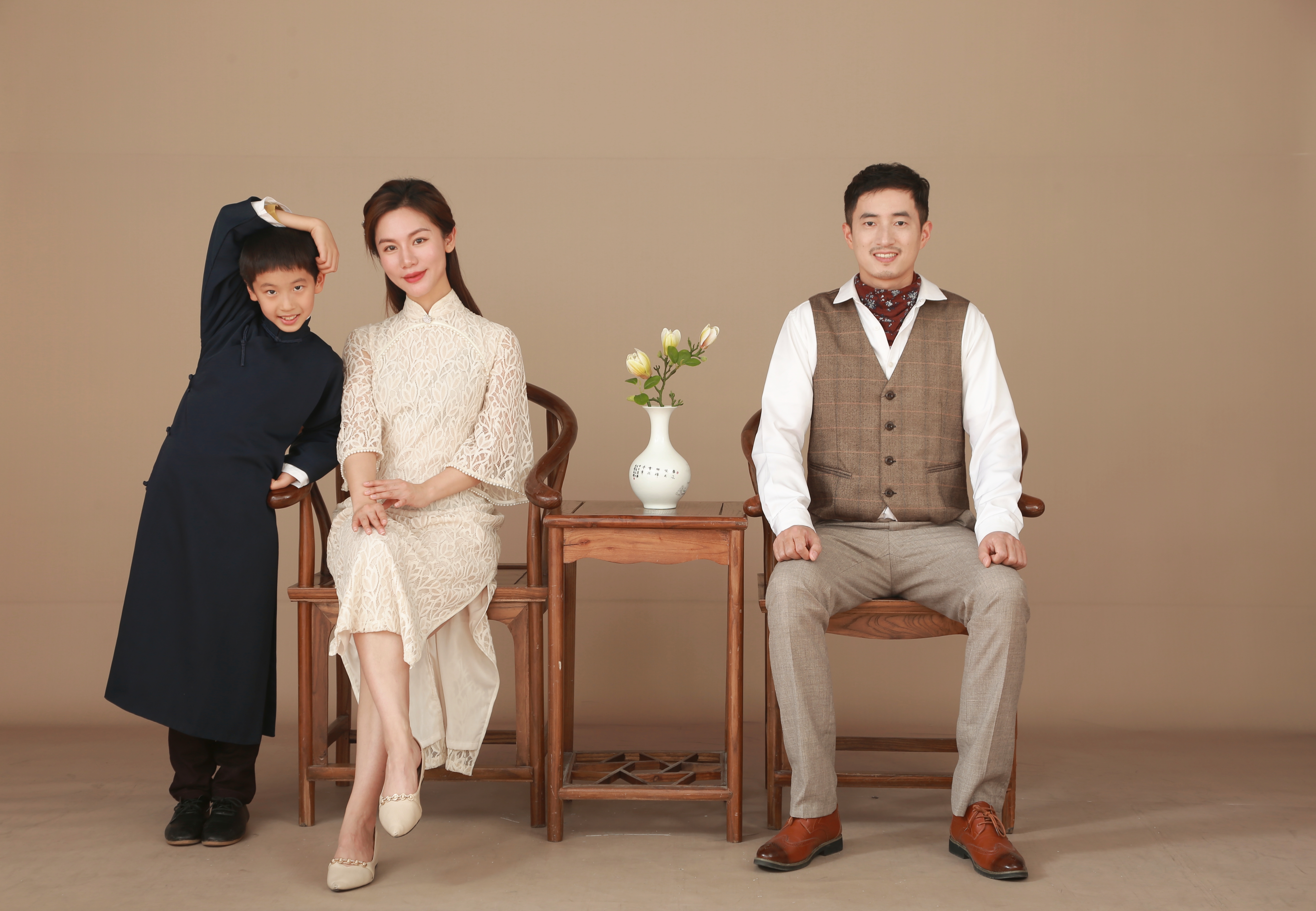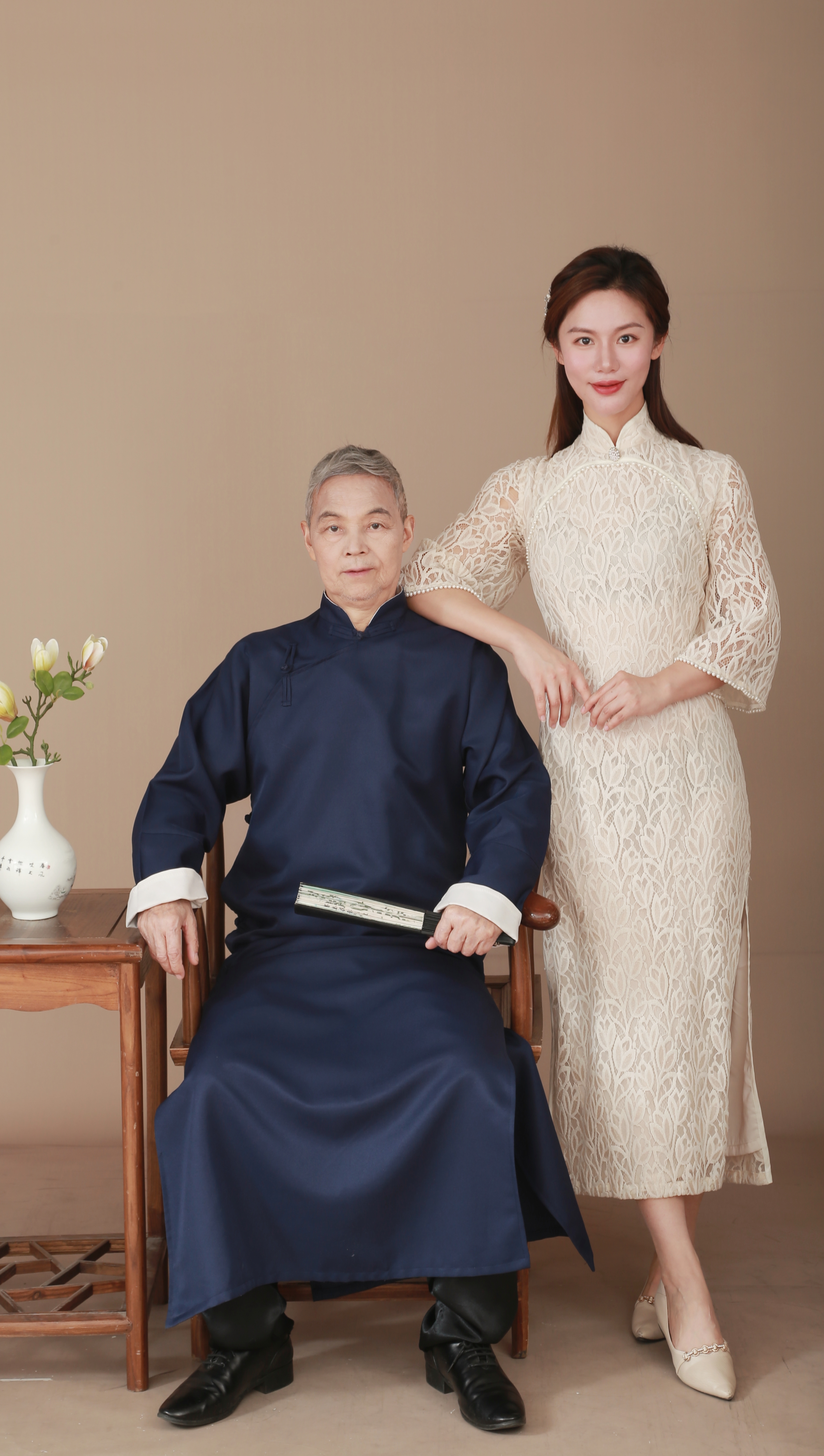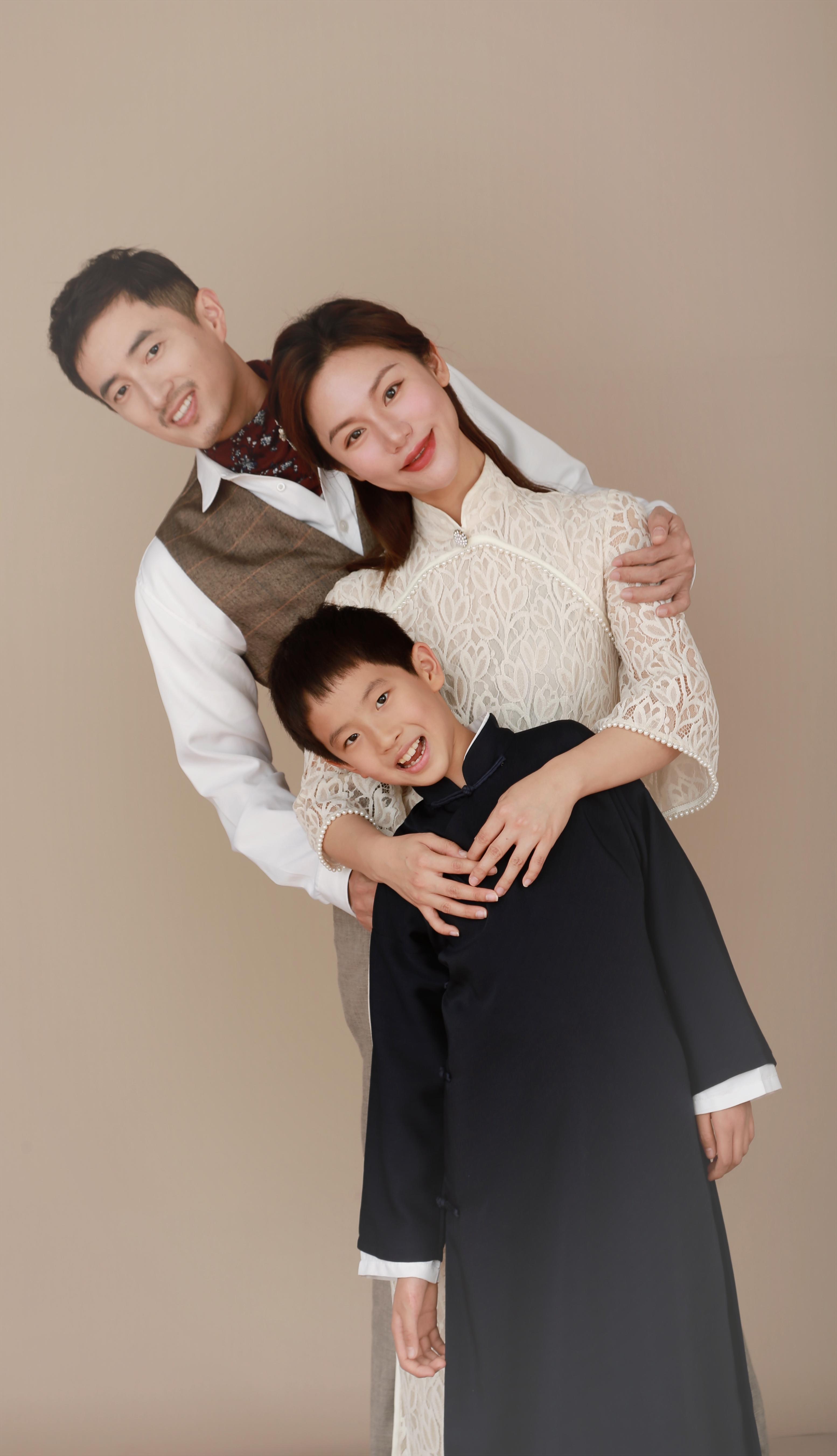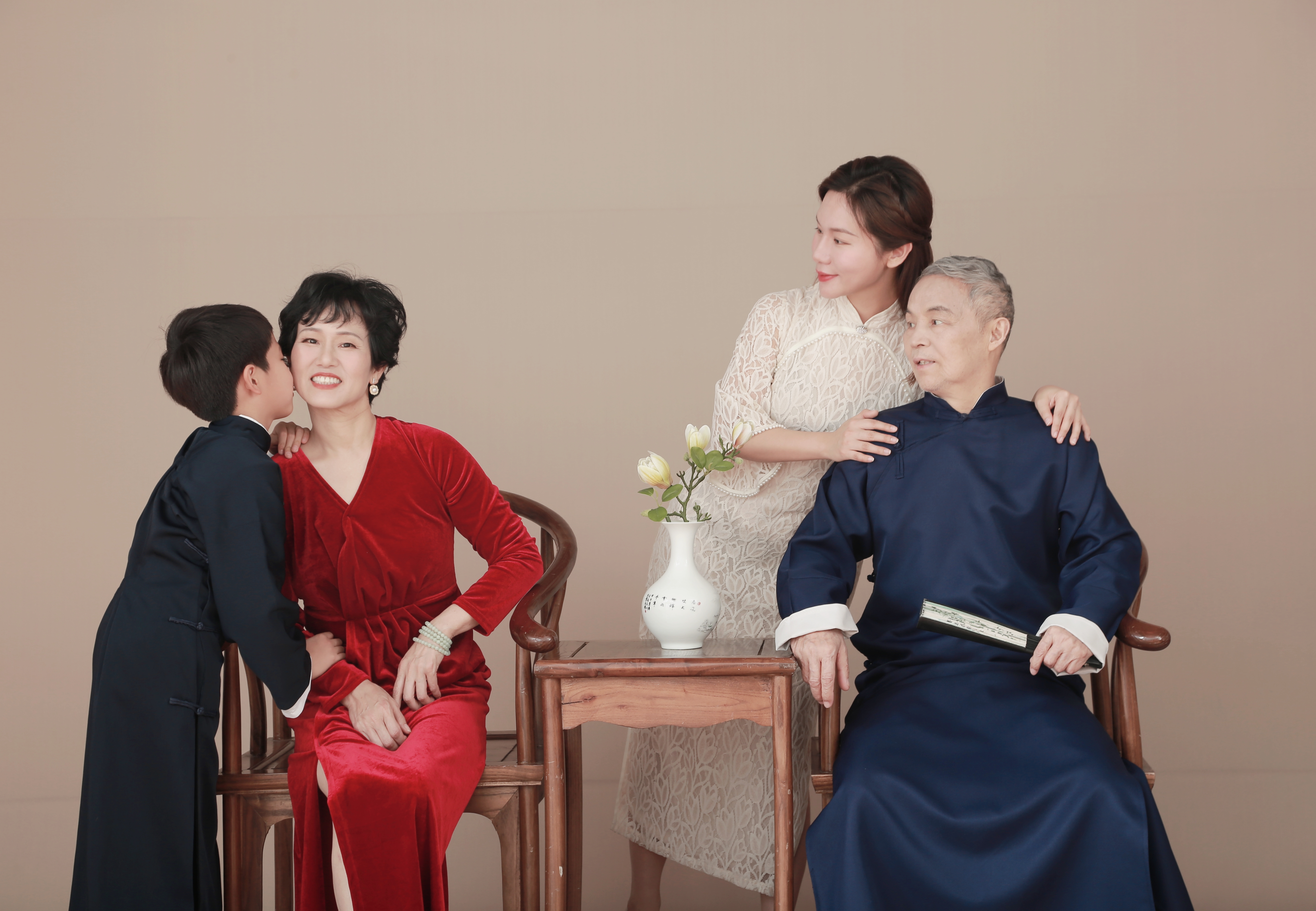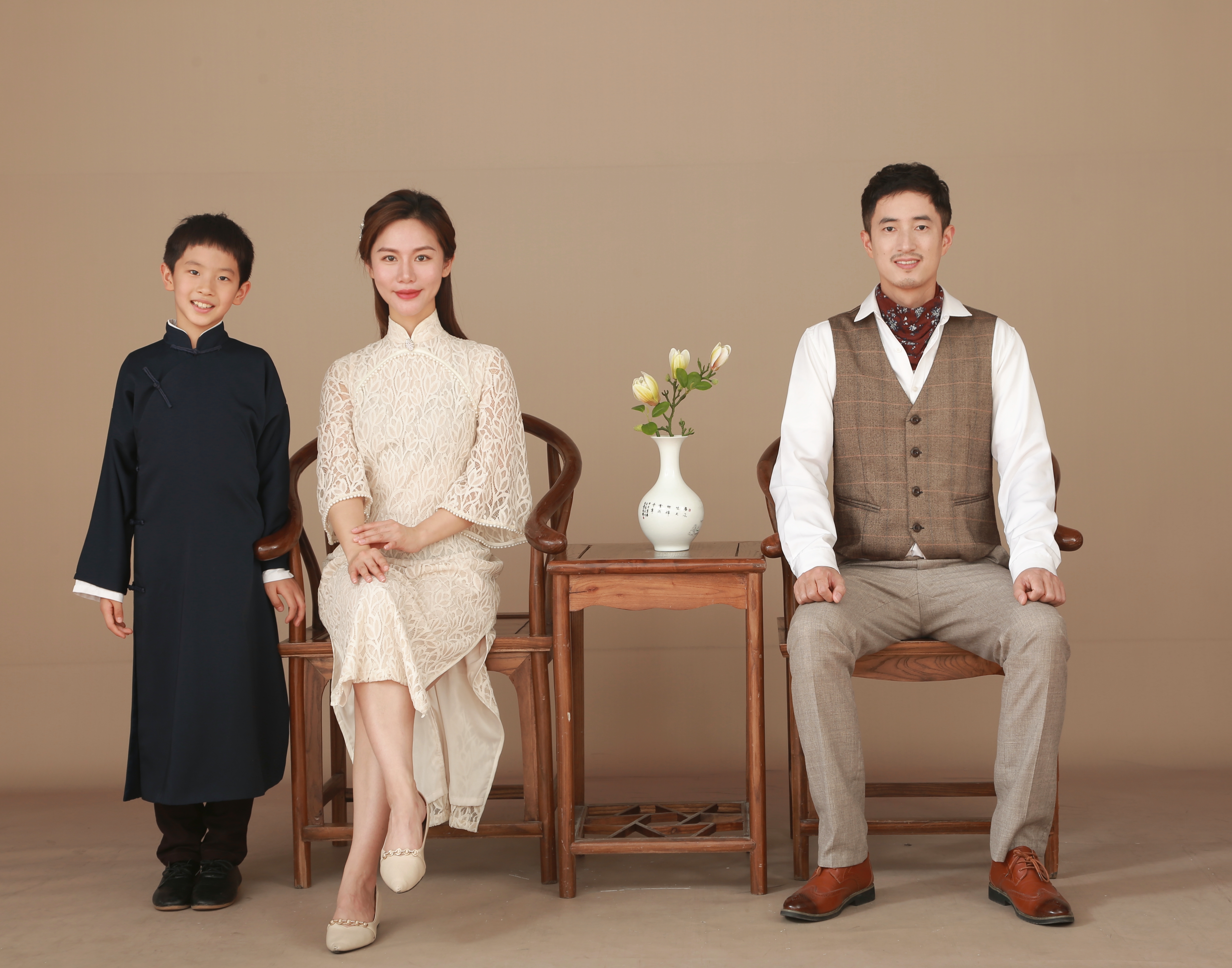 前些天,带父母一起拍了一组全家福穿的就是这件旗袍。