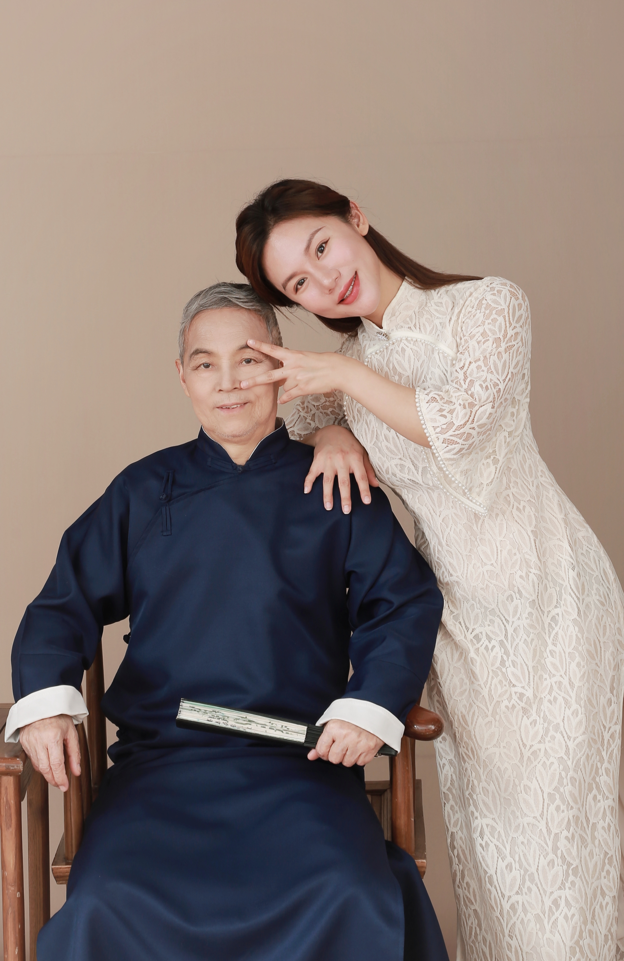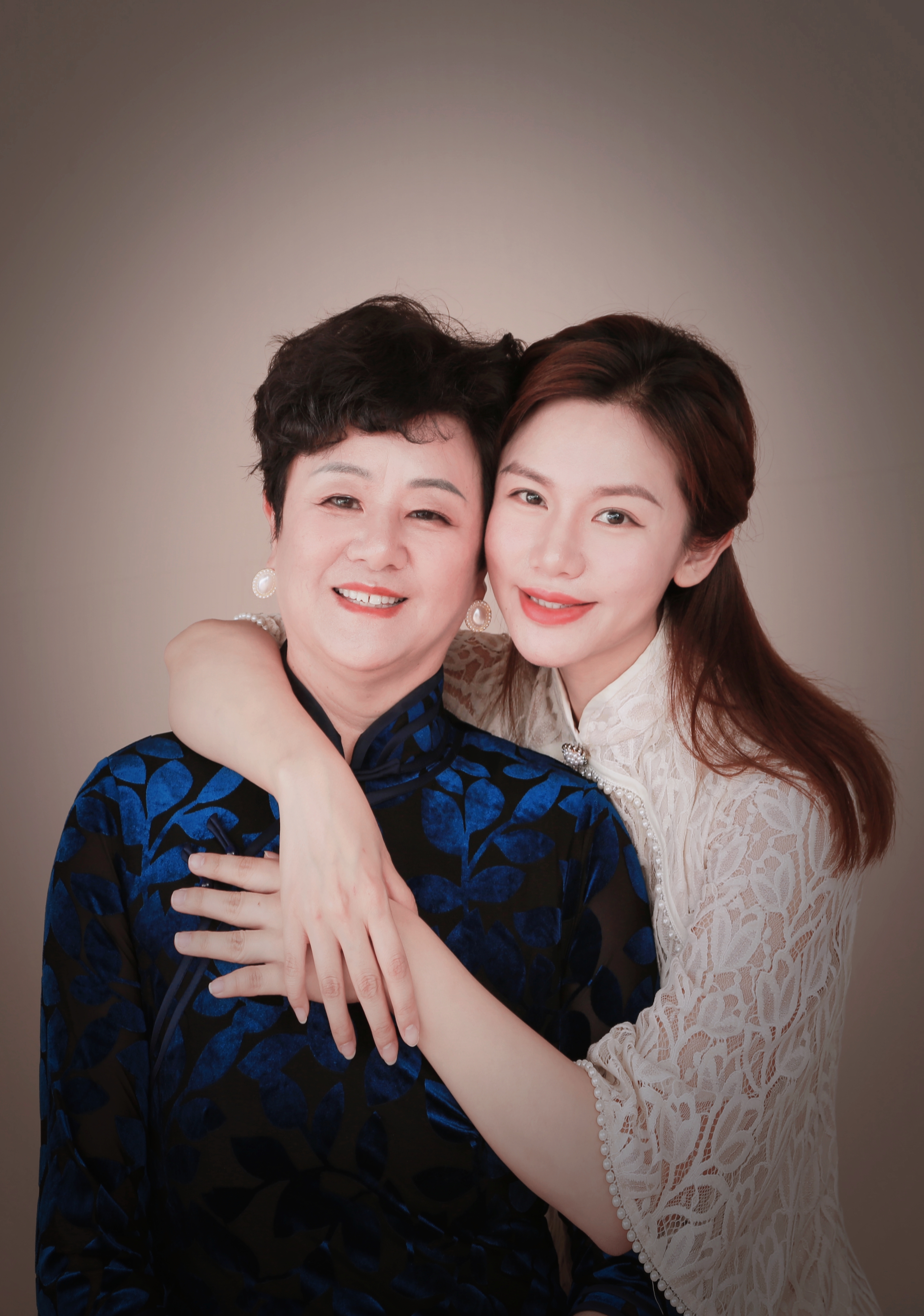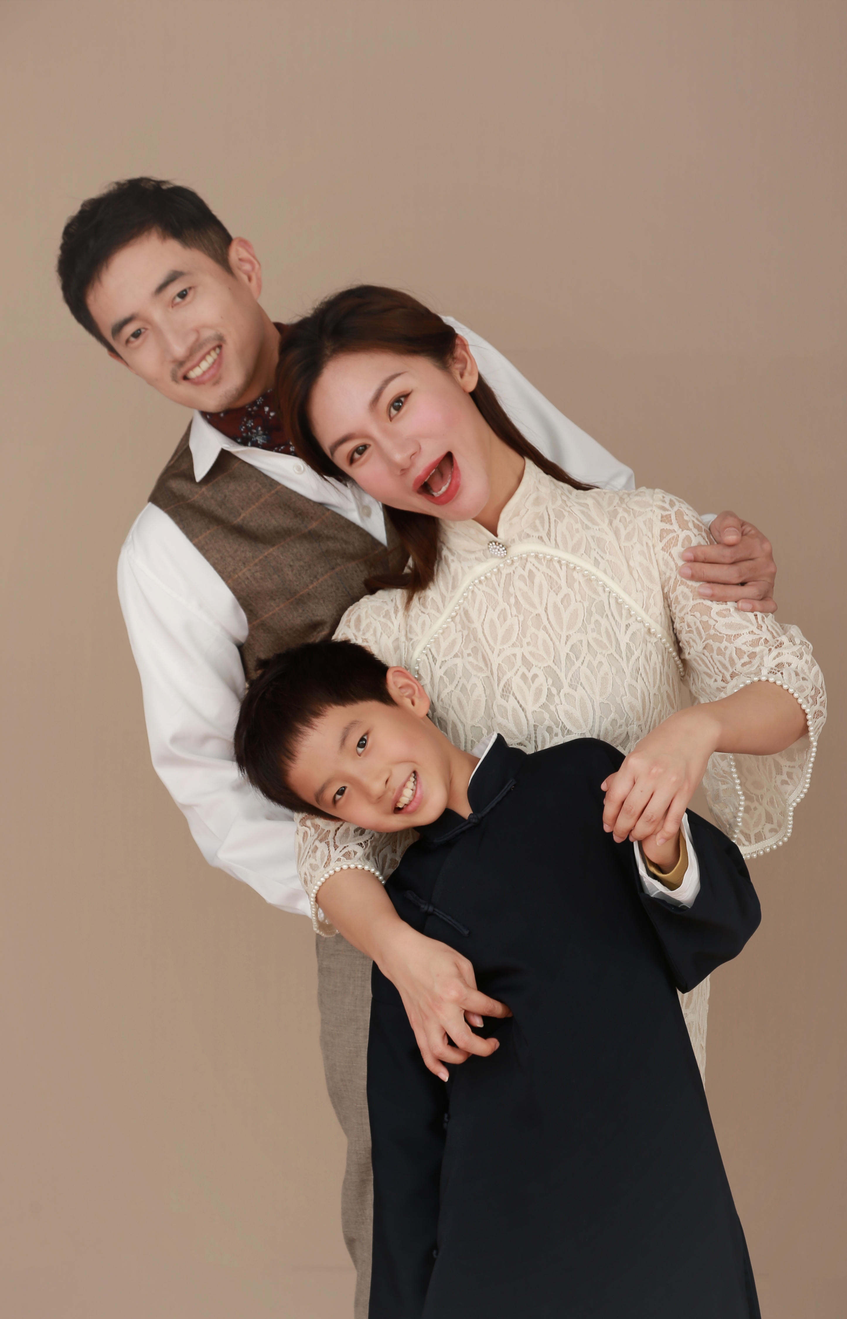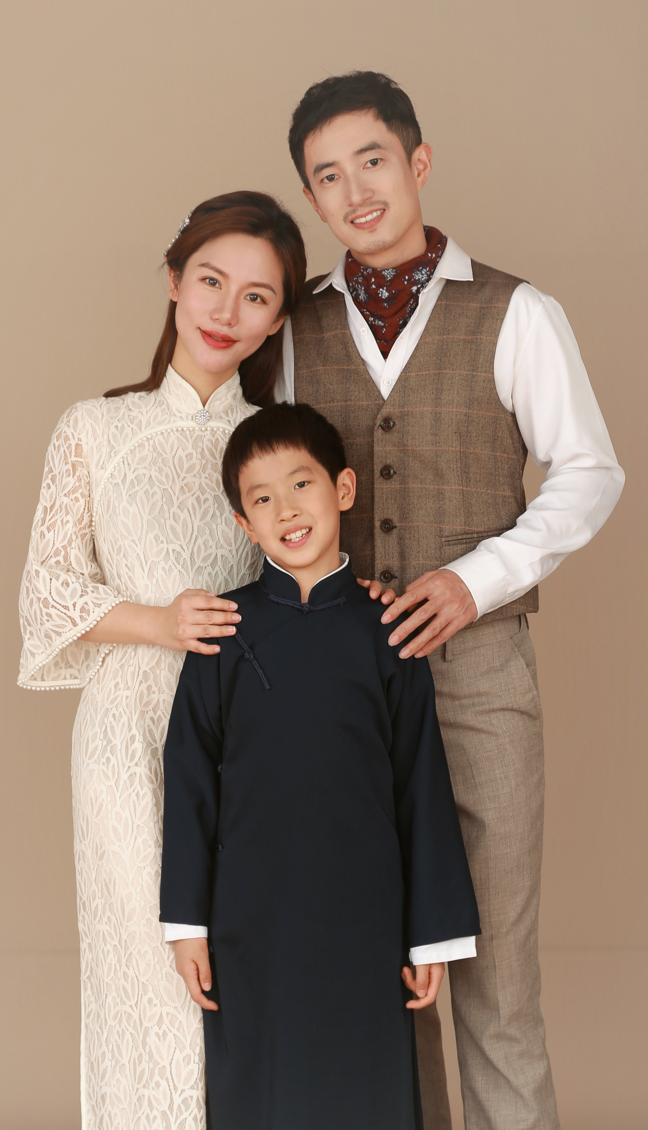 前些天,带父母一起拍了一组全家福穿的就是这件旗袍。