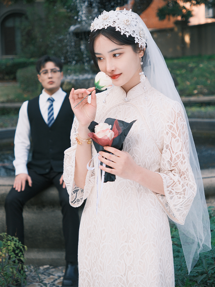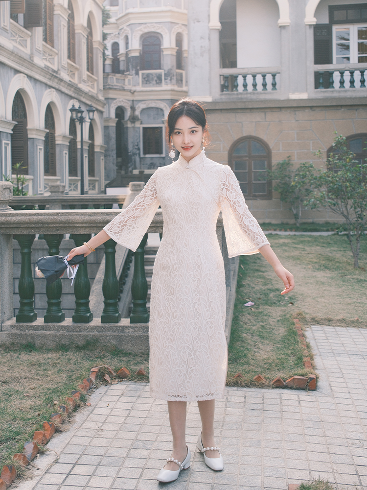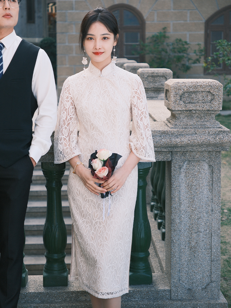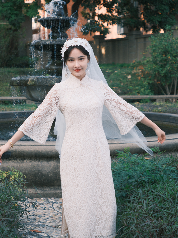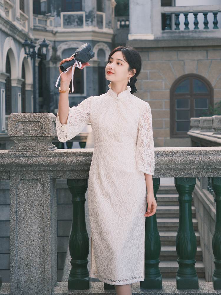 逸红颜明月优选#『春禧』立体绒毛感骨线蕾丝旗袍,一份属于东方人的礼韵传承,温暖娴静中尽显优雅大气