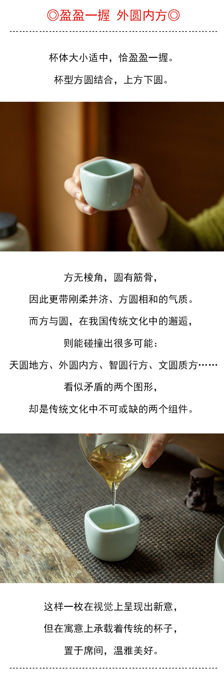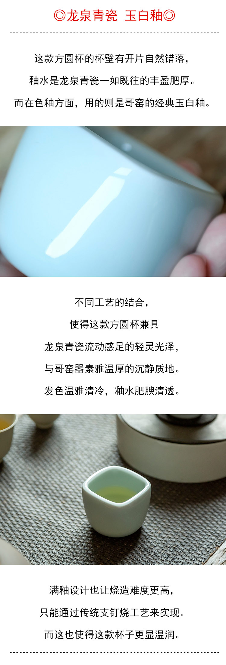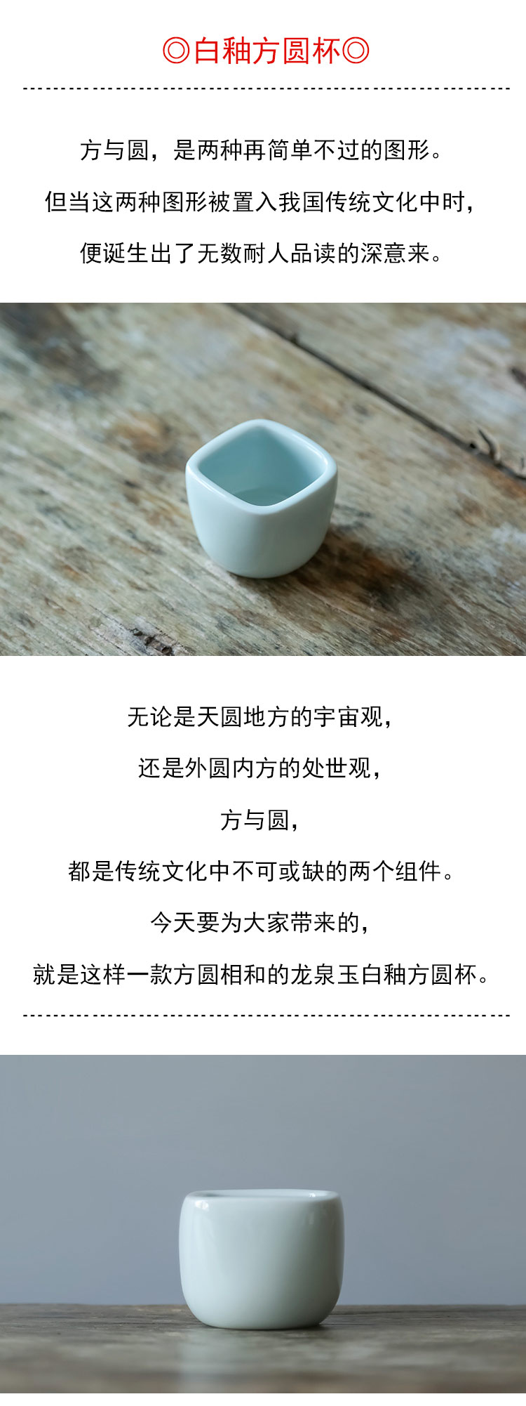 茶香记 龙泉玉白釉方圆杯60ml陶瓷茶杯主人杯手工创意别致素净