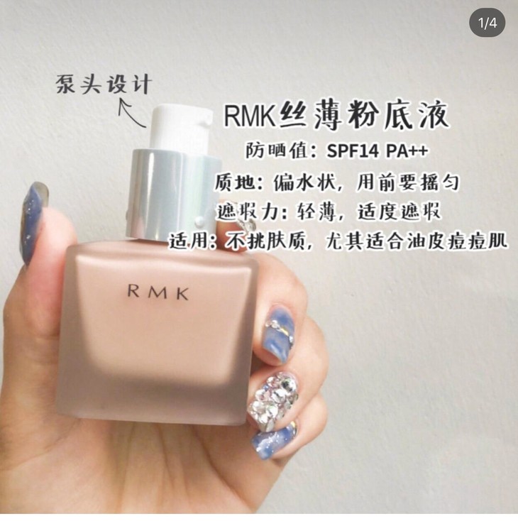 👑RMK LIQUID 丝薄粉底液 30g SPF14新款 🙌遮盖力中上,修饰毛孔和泛红的效果很好,不假面很自然,涂出来是健康光泽肌效果 🔆整体:修改肌肤瑕疵同时非常自然并且持久,有一定保湿力,很强的遮盖力 👍🏻不易脱妆,让肌肤一天都有好气色! 💦配合含丰富矿物质的富士山水,为肌肤提供加倍滋润.‼️ 💥妆效有别于一般容易脱落的粉底,即使油脂分泌旺盛的T区位置,都能提升妆容的持久度