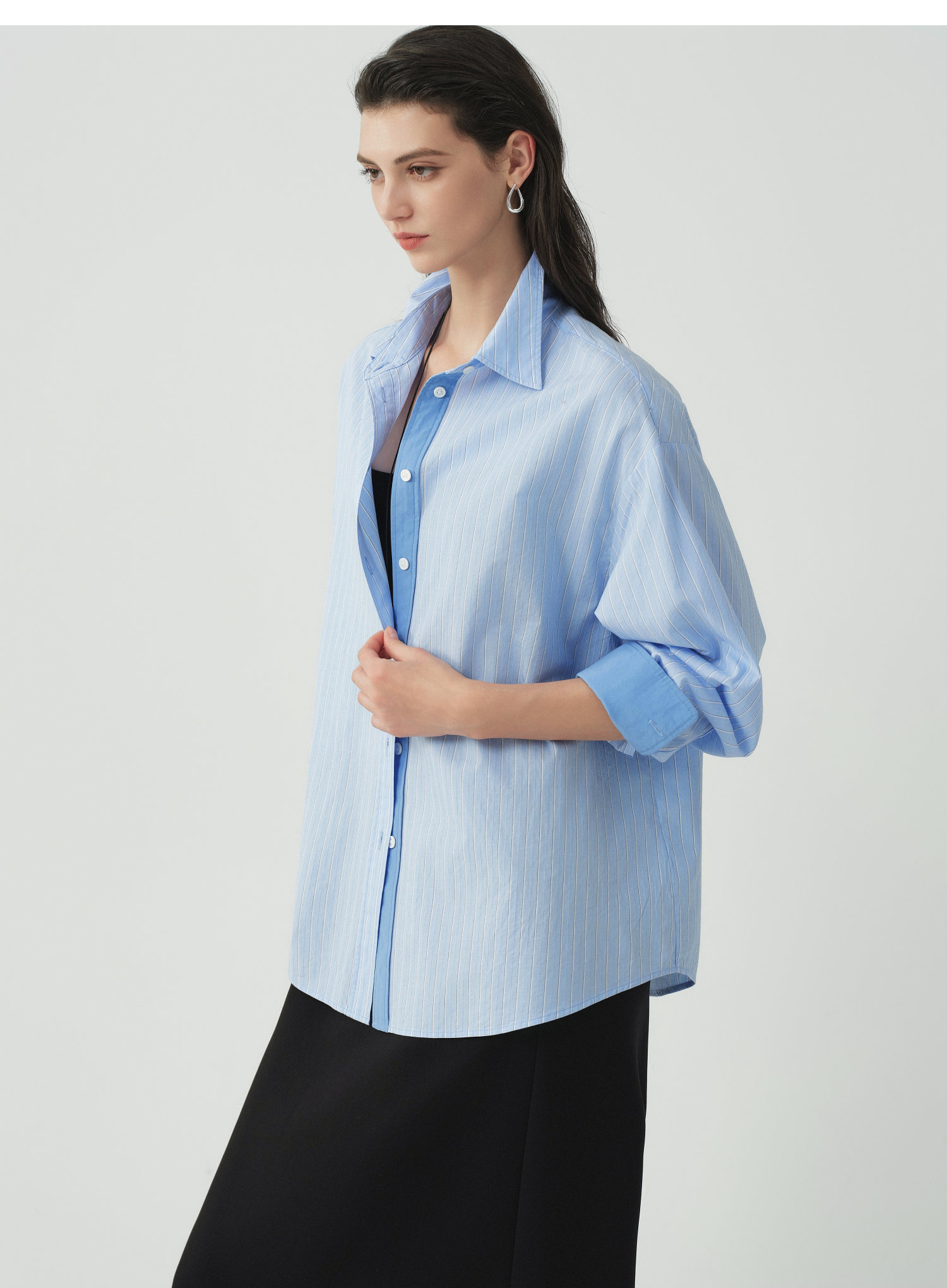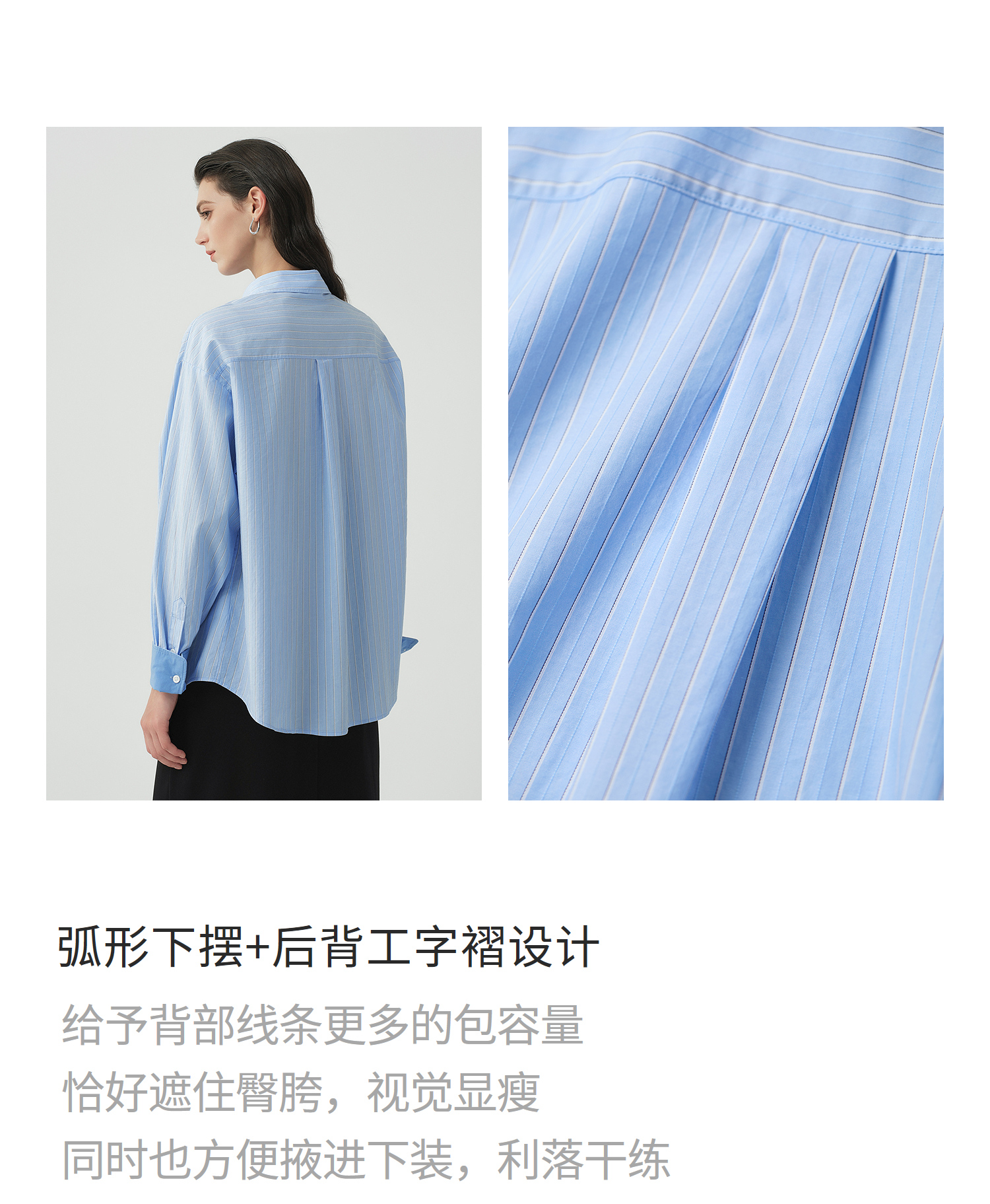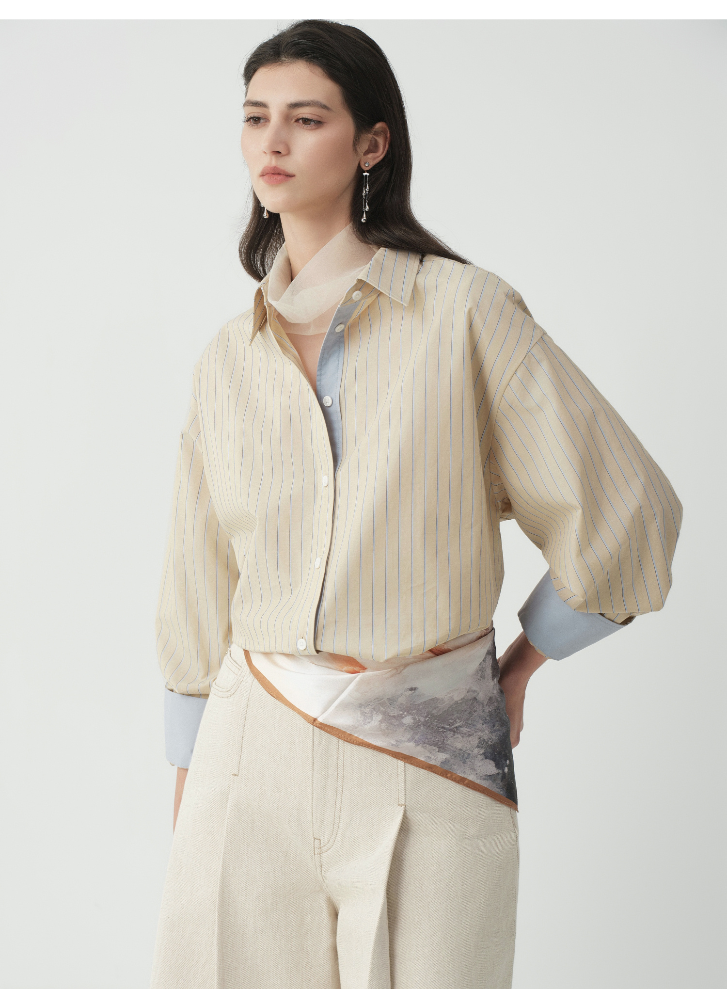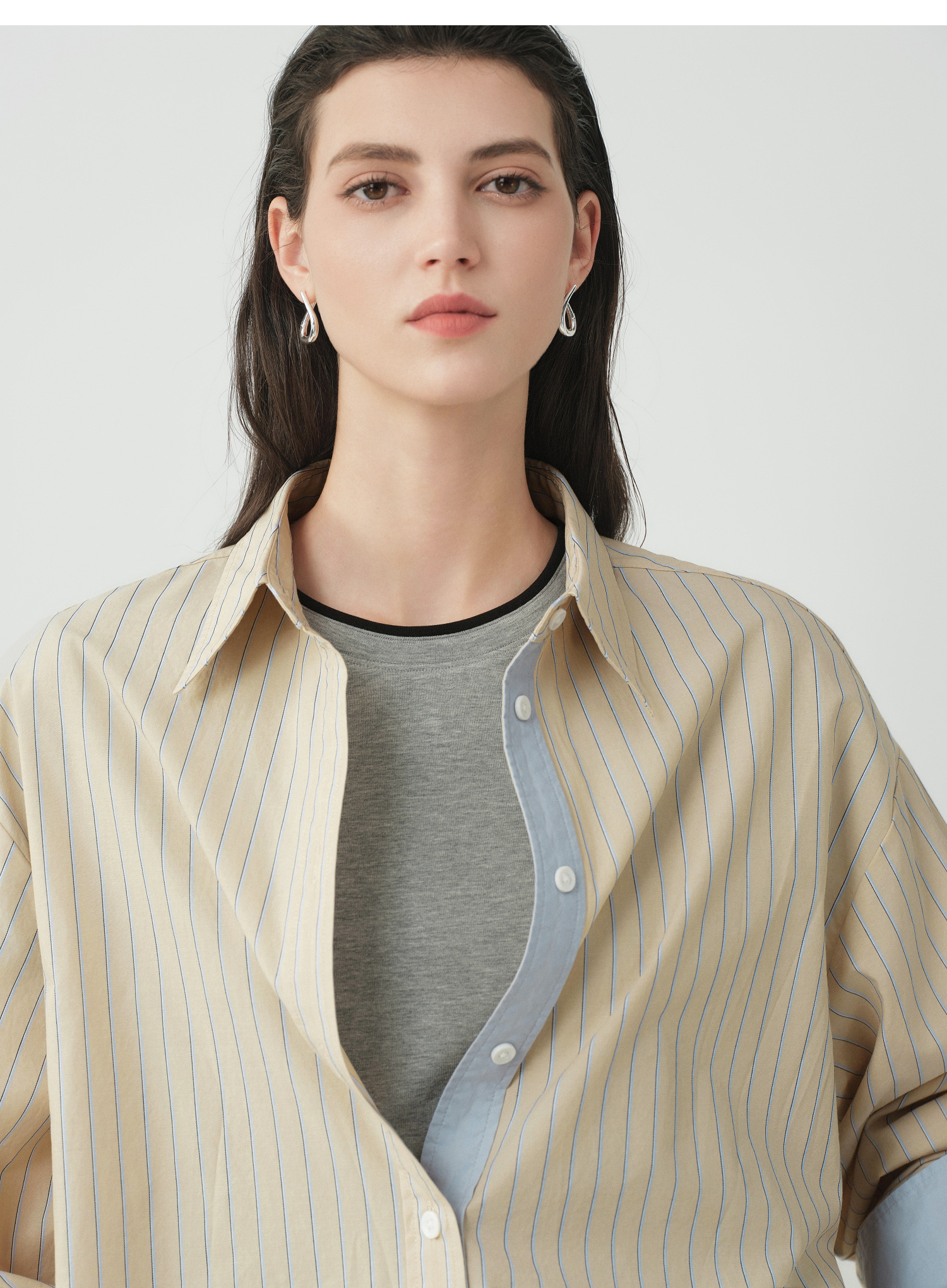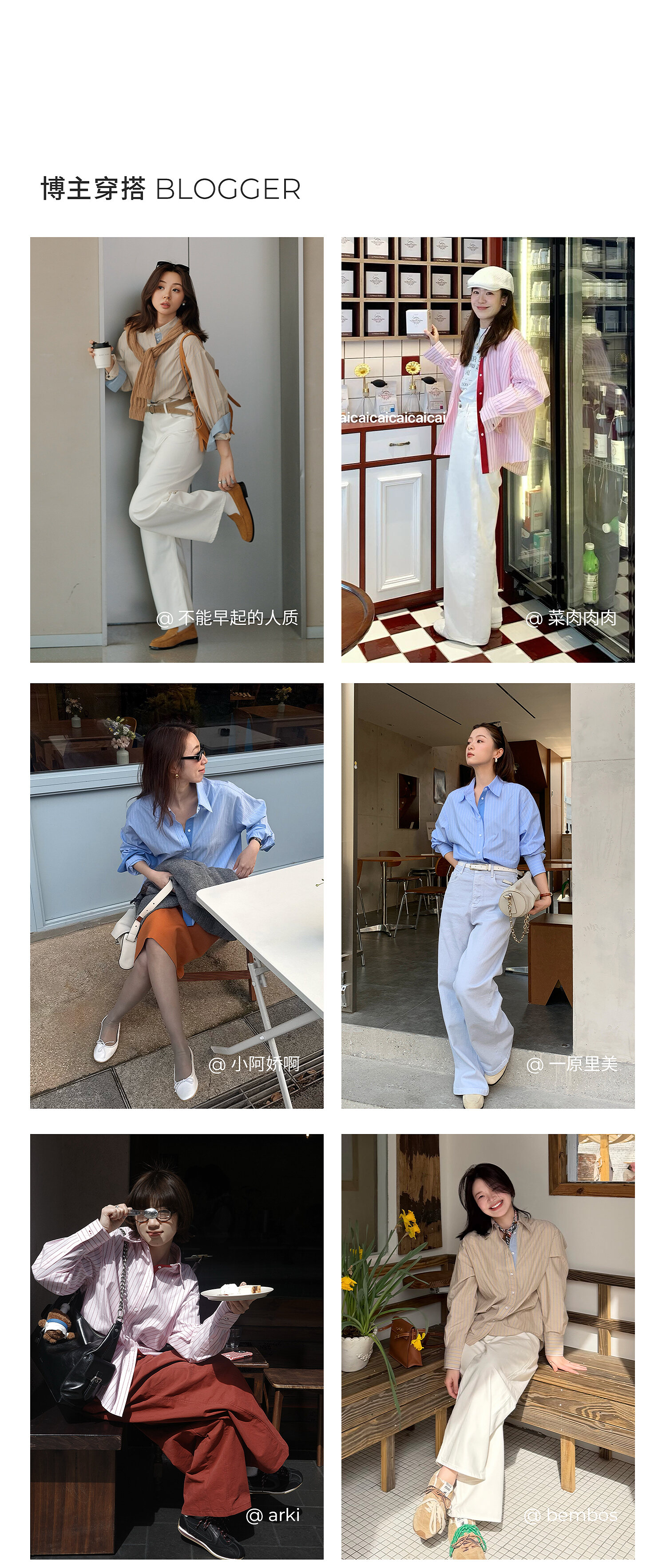 [春日甜茶]26春新款设计感 条纹撞色长袖粉色衬衫 松弛衬衣372604038