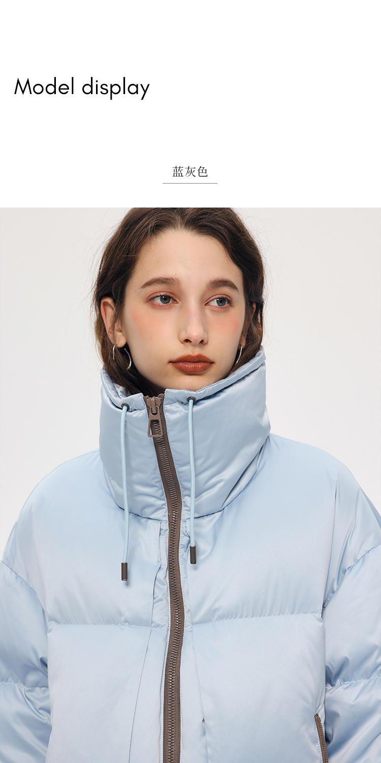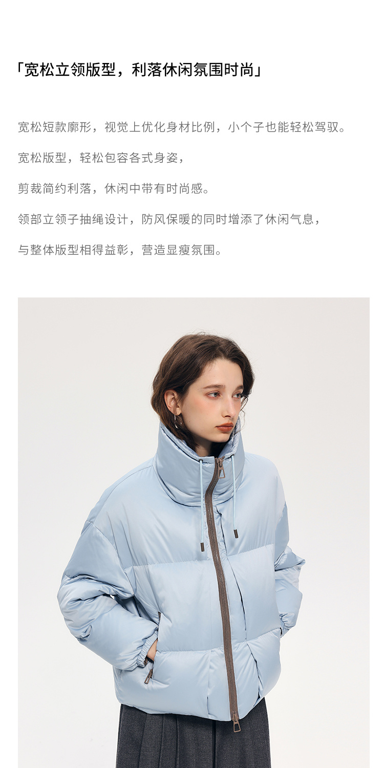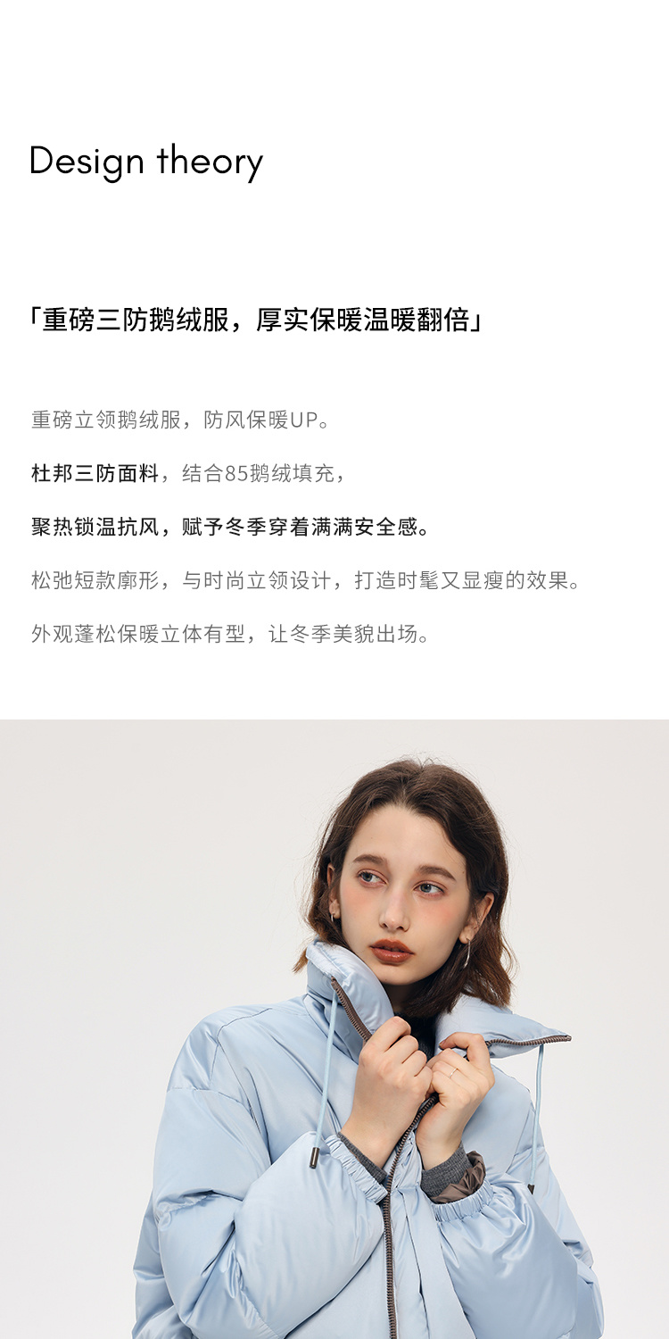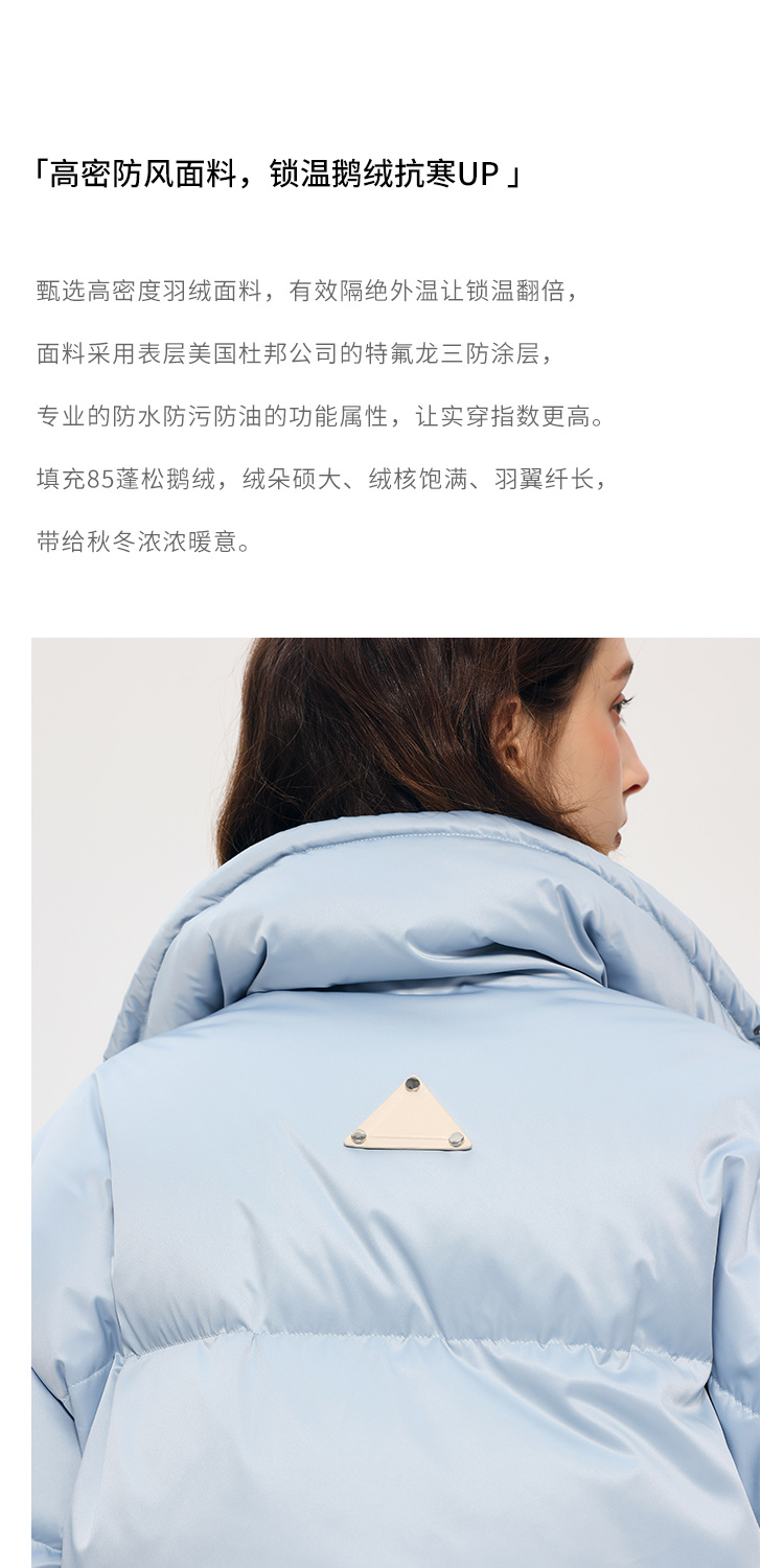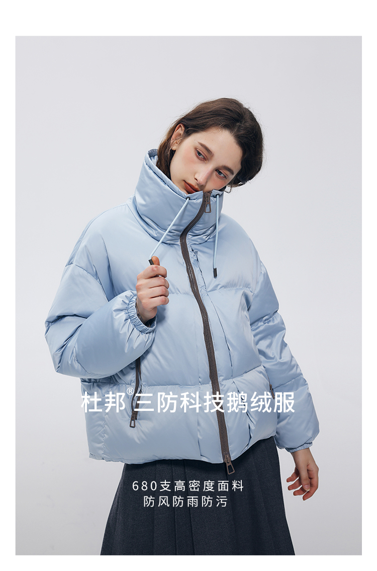 HeyDress重磅三防鹅绒服女冬季宽松立领高克重防风保暖羽绒服外套