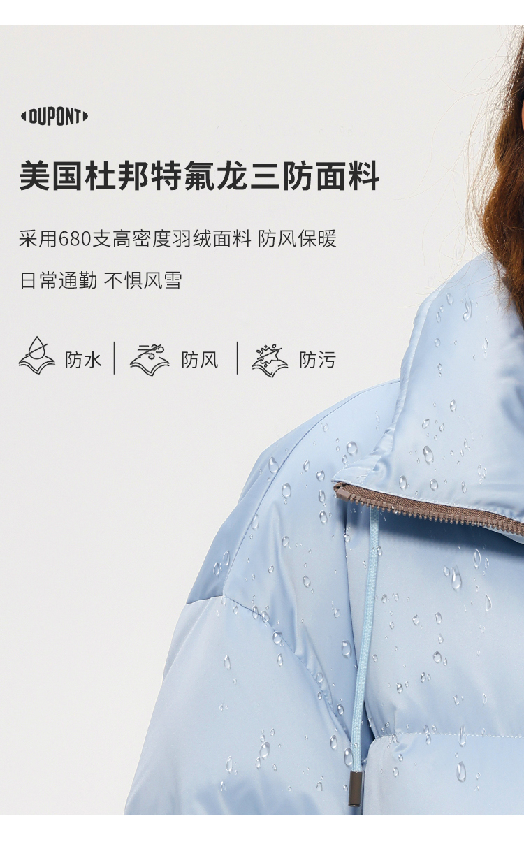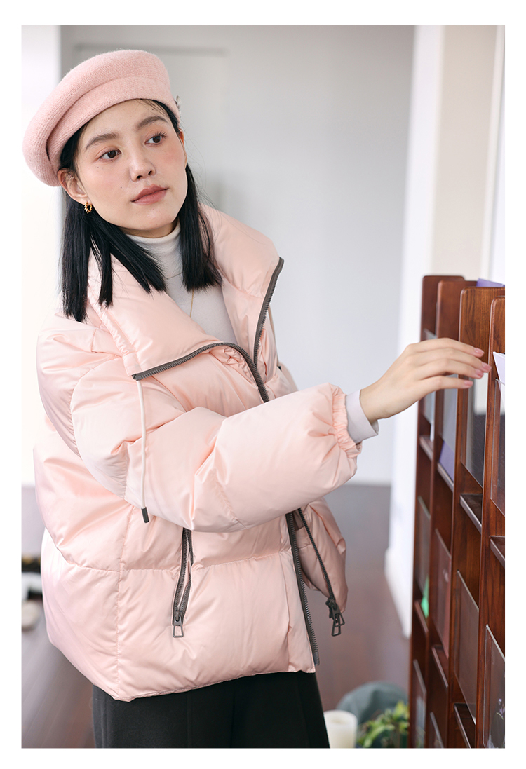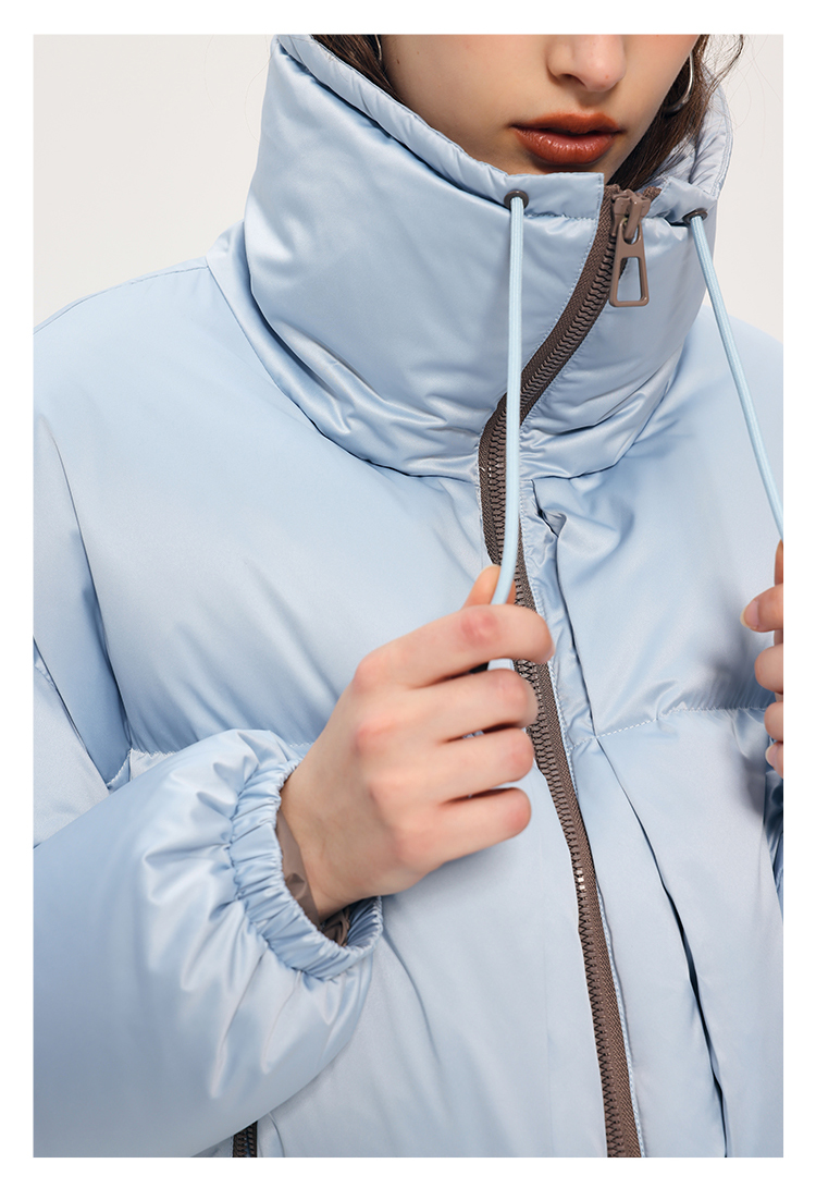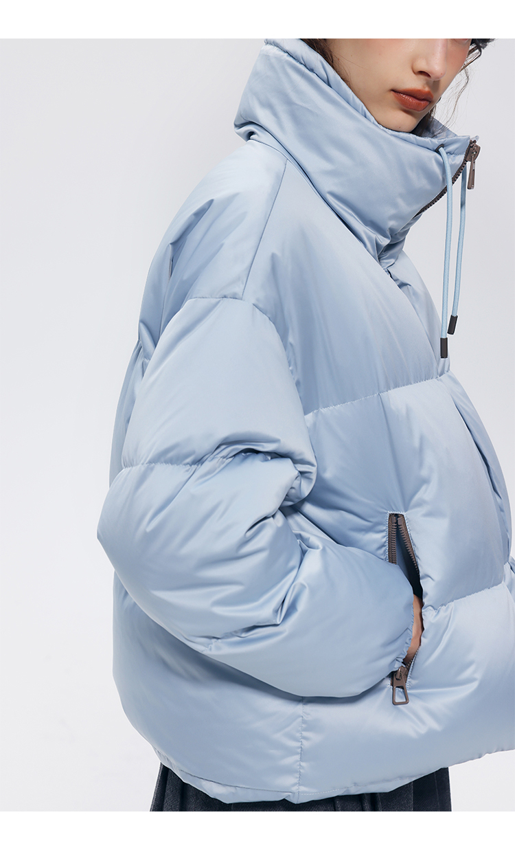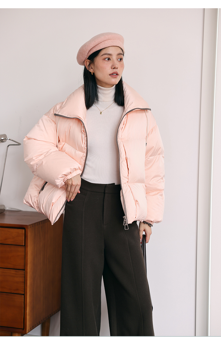 HeyDress重磅三防鹅绒服女冬季宽松立领高克重防风保暖羽绒服外套