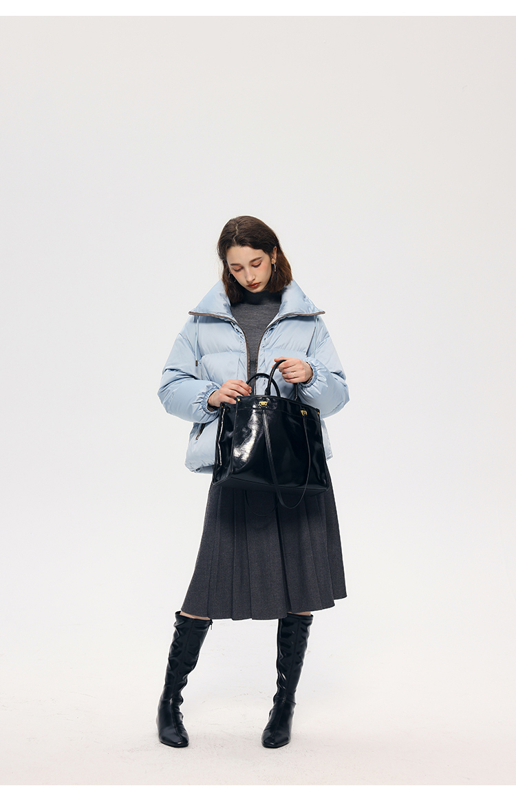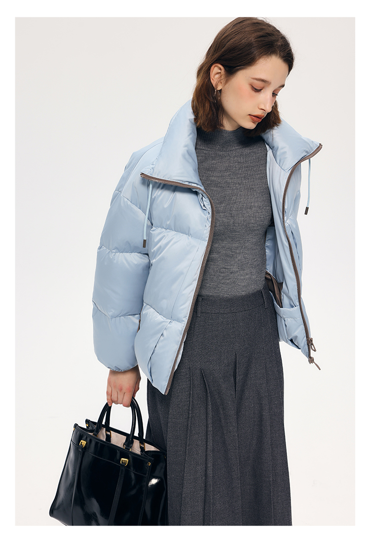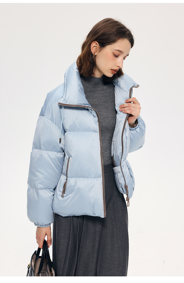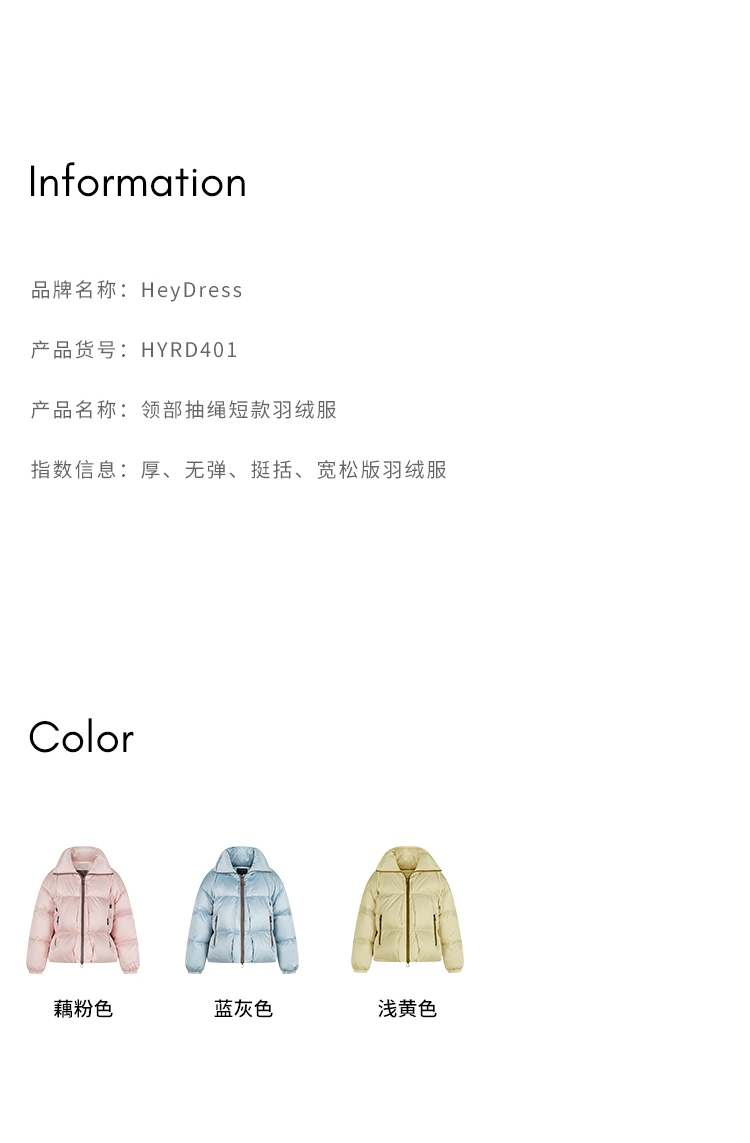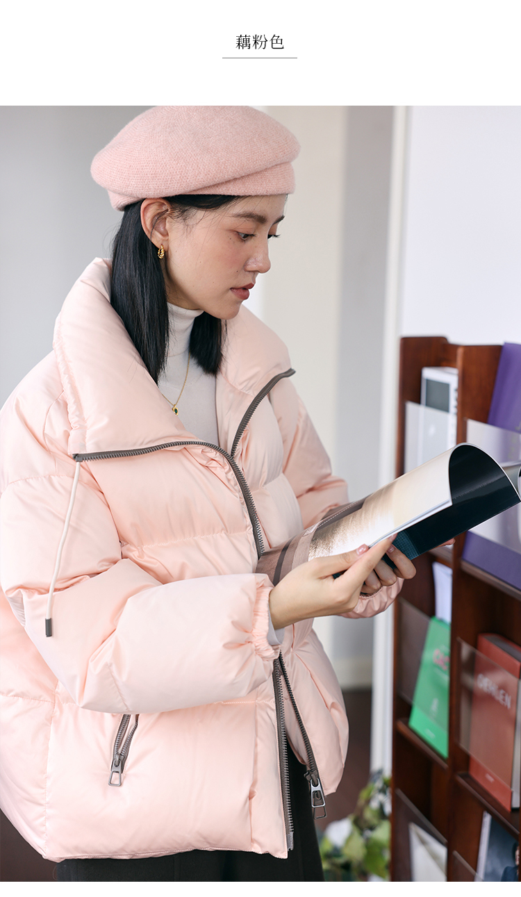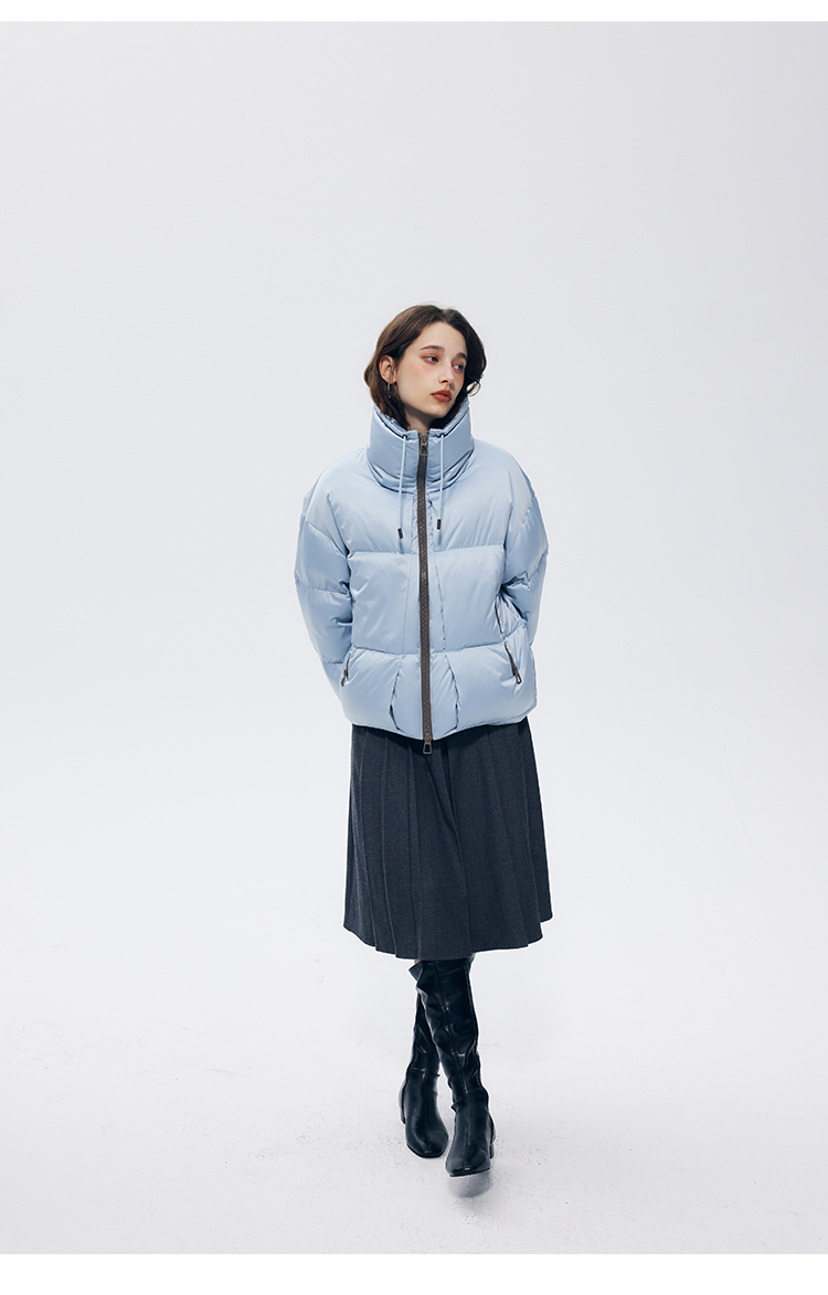 HeyDress重磅三防鹅绒服女冬季宽松立领高克重防风保暖羽绒服外套