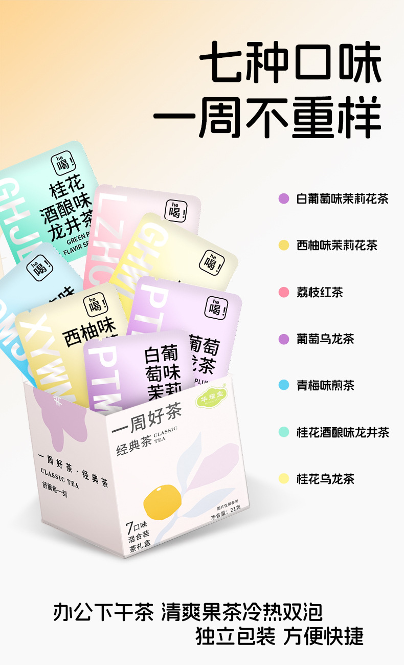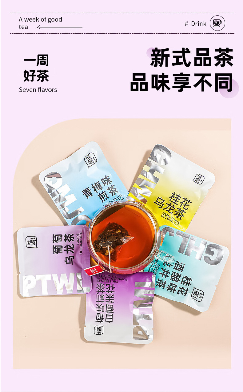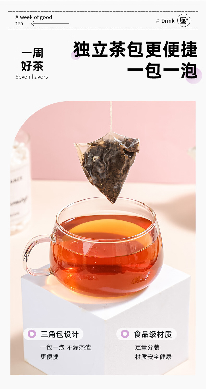 每一种都敲好喝【一周果茶!七天不重样】独立包装,方便携带,办公下午茶,一周好茶清爽水果茶冷热双泡,葡萄乌龙茶蜜桃冷泡花养生茶茶玫瑰。ra
