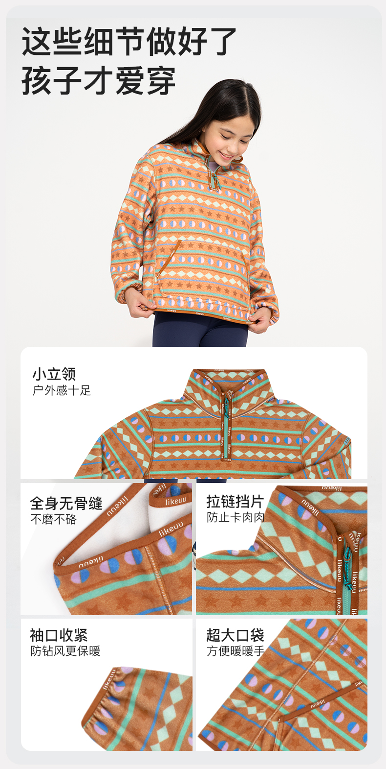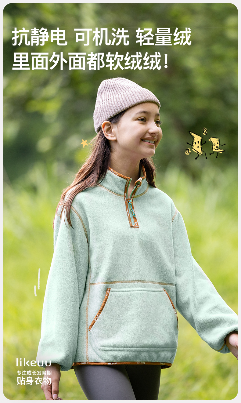 likeuu卫衣女童秋装2023新款摇粒绒半拉链卫衣男大童