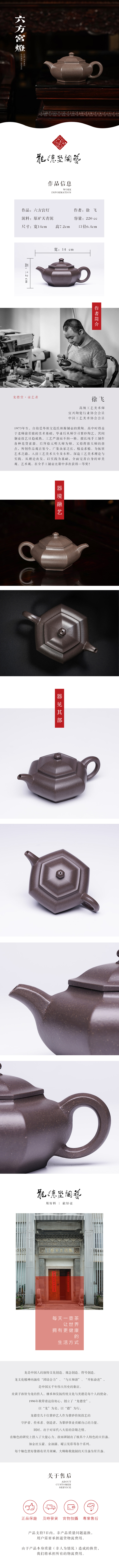 龙德堂陶艺 徐飞制 《六方宫灯》原矿天青泥 220 cc