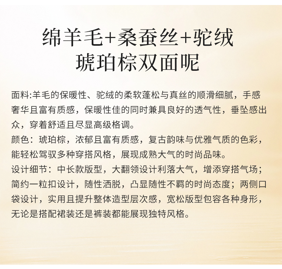 乔万尼设计感大翻领简约气质驼绒绵羊毛混纺中长款大衣ED4A731