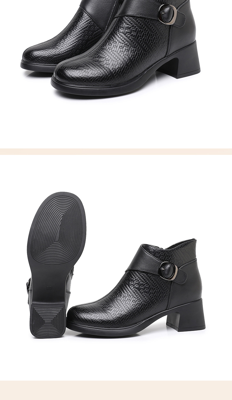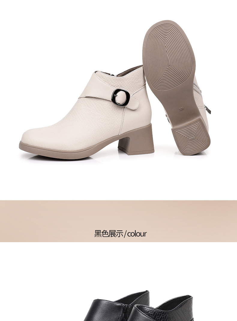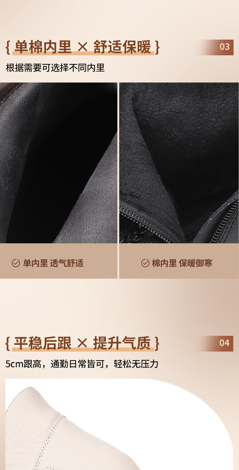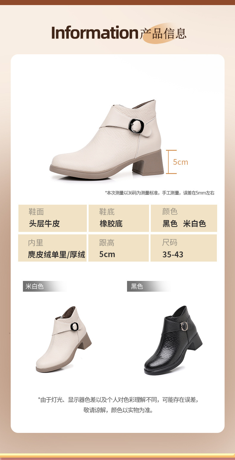 丁摩 秋冬季粗中跟软底头层牛皮加绒保暖短靴女单靴5ZF-7233