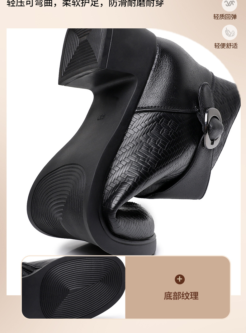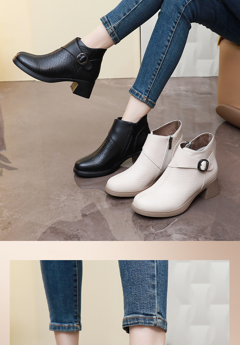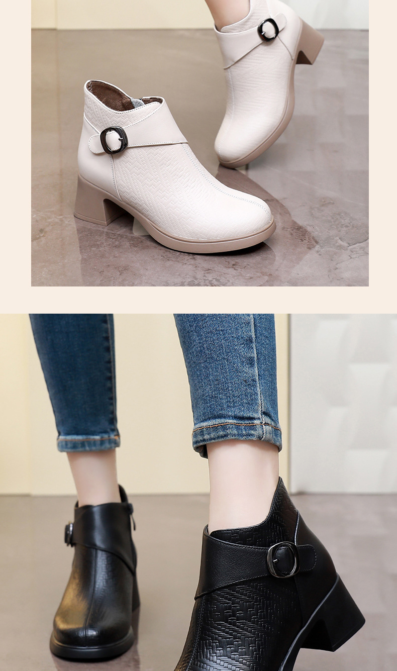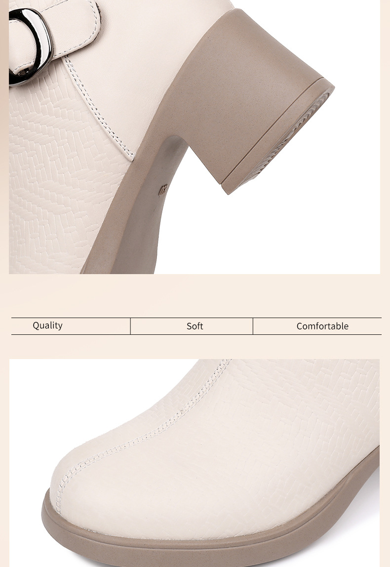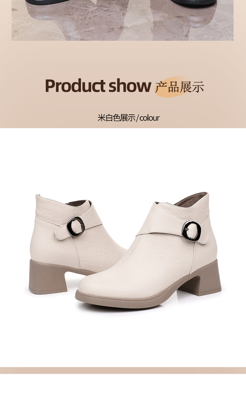 丁摩 秋冬季粗中跟软底头层牛皮加绒保暖短靴女单靴5ZF-7233