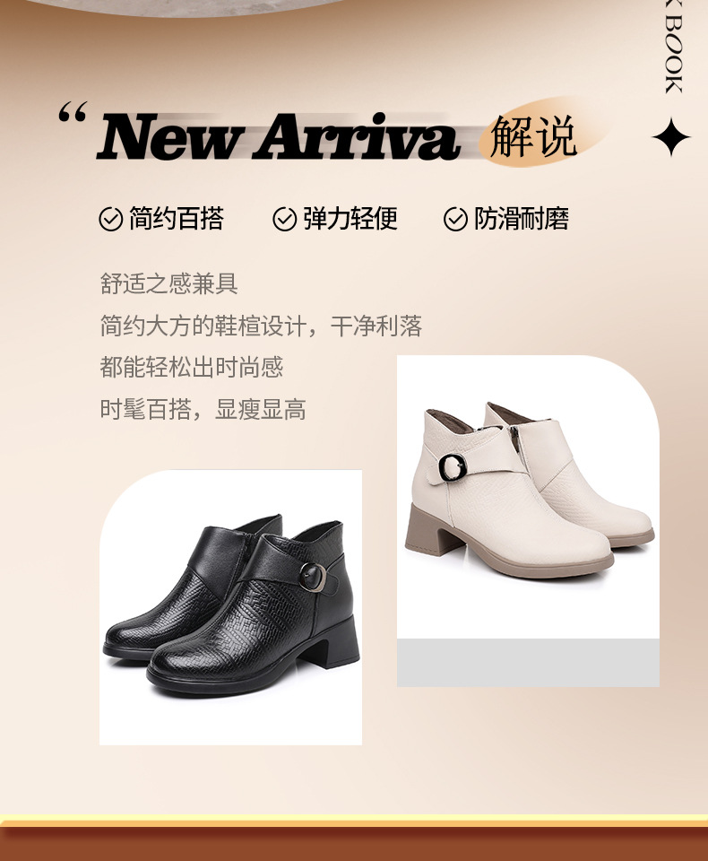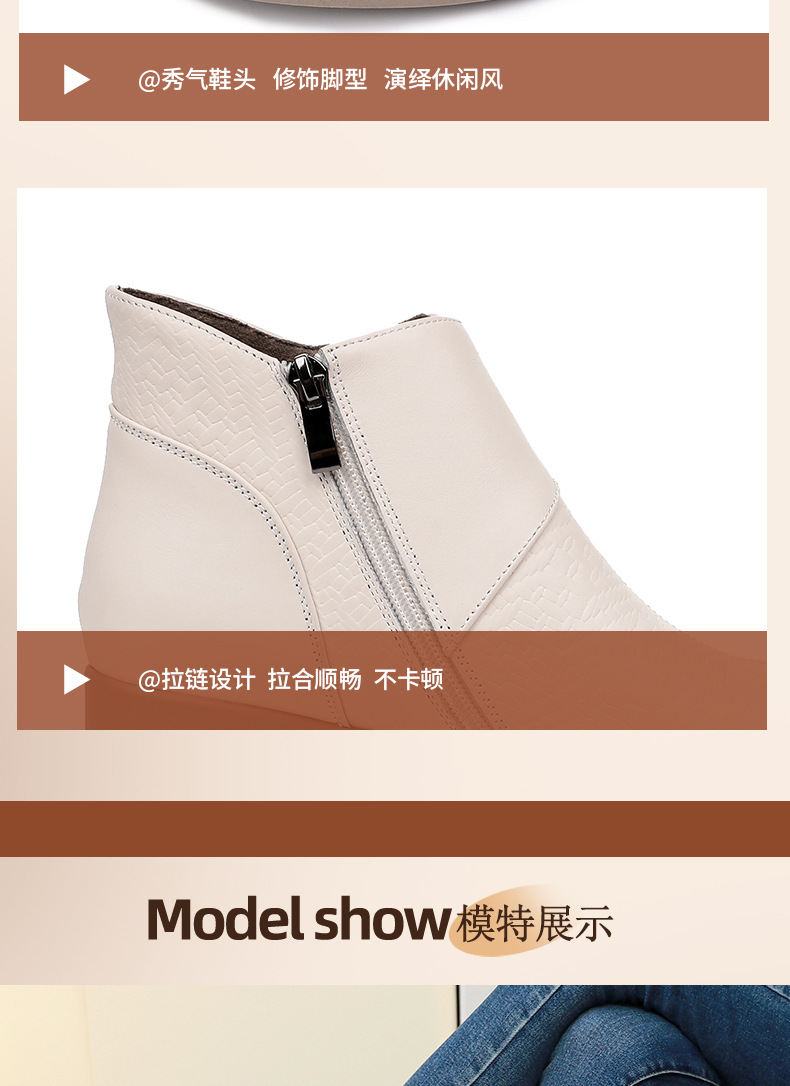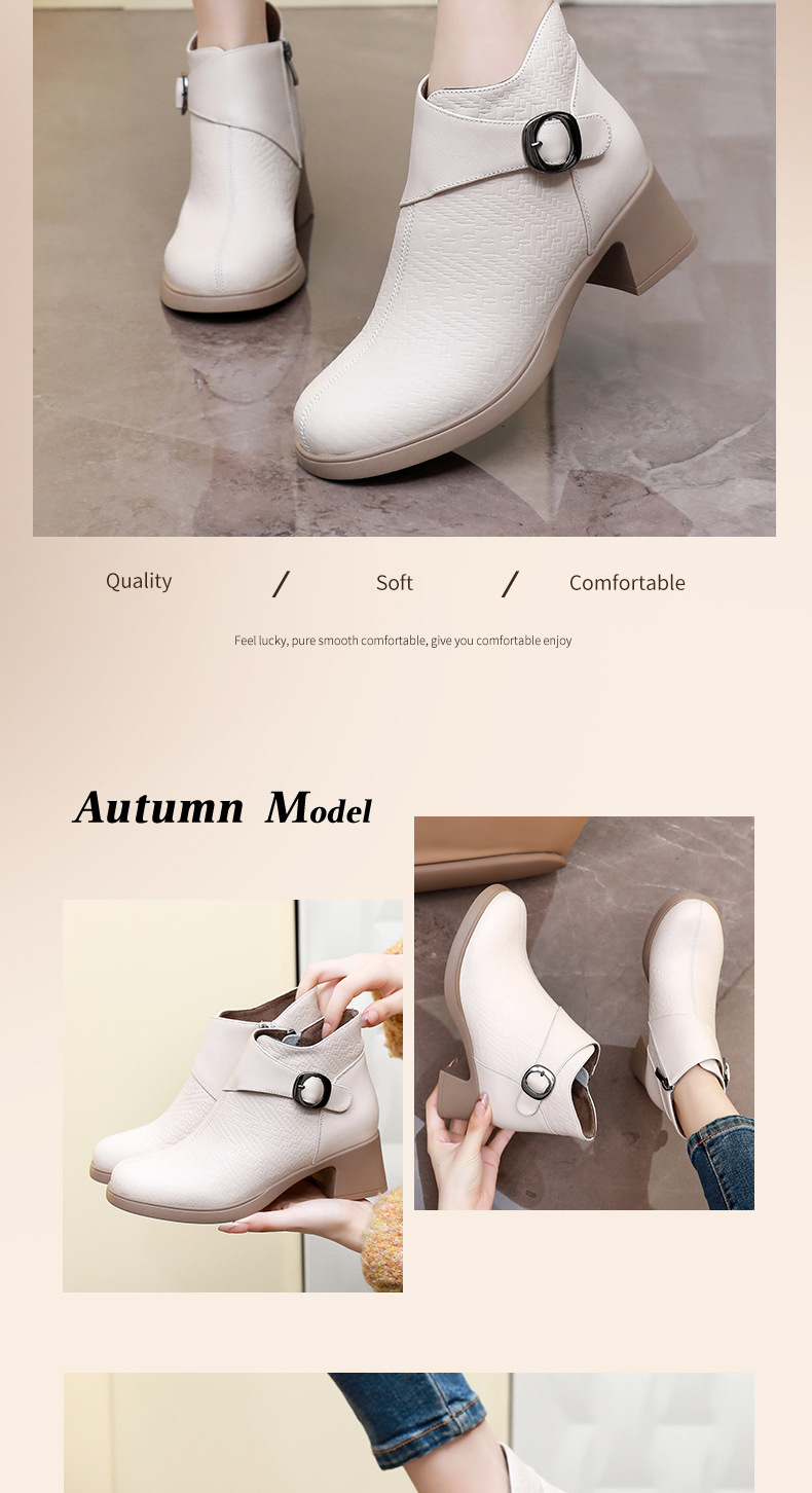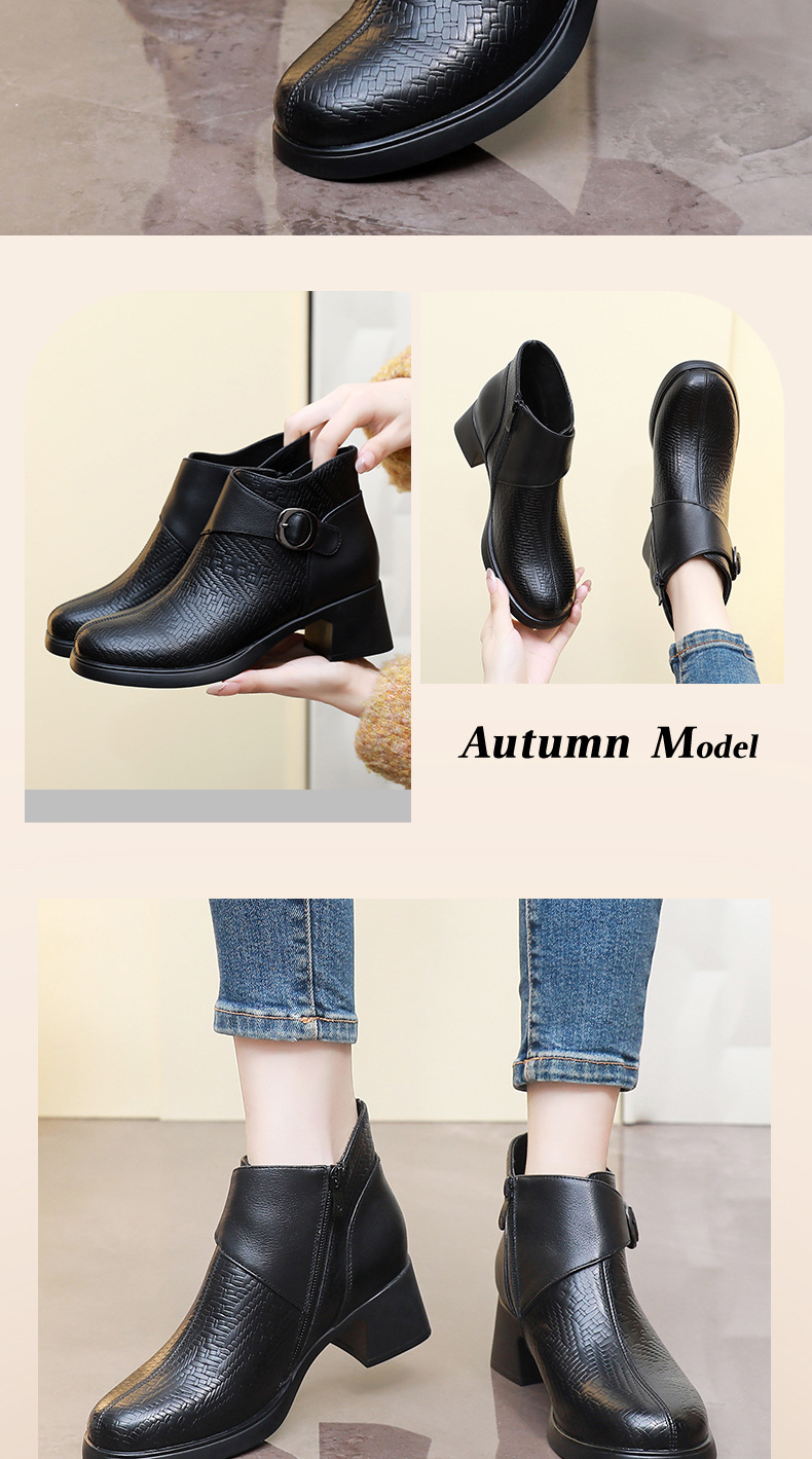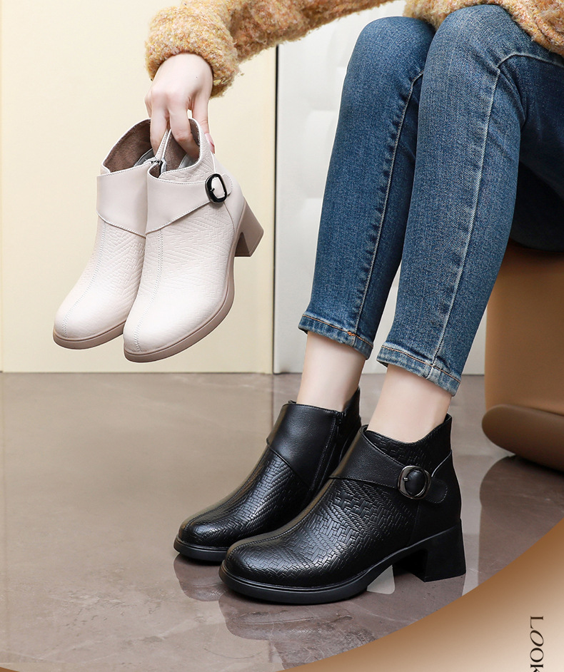 丁摩 秋冬季粗中跟软底头层牛皮加绒保暖短靴女单靴5ZF-7233