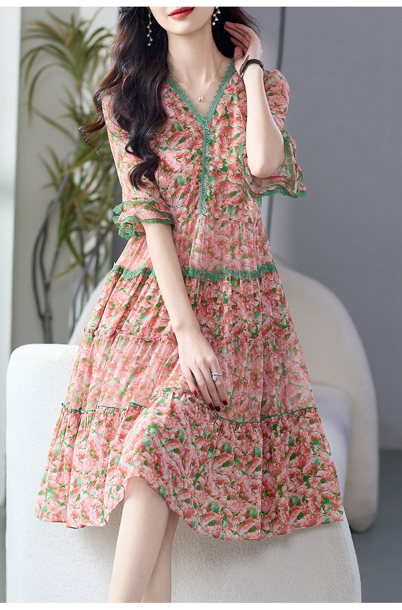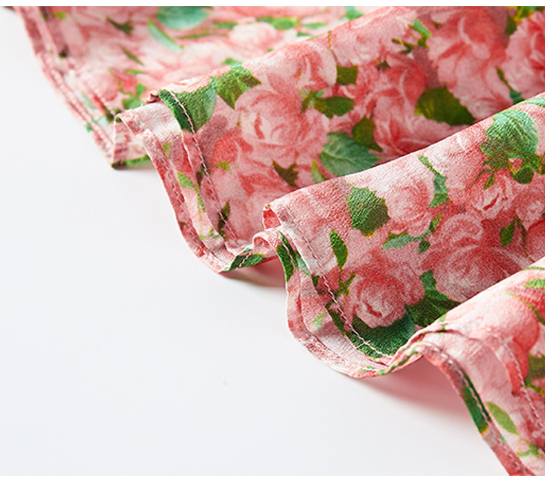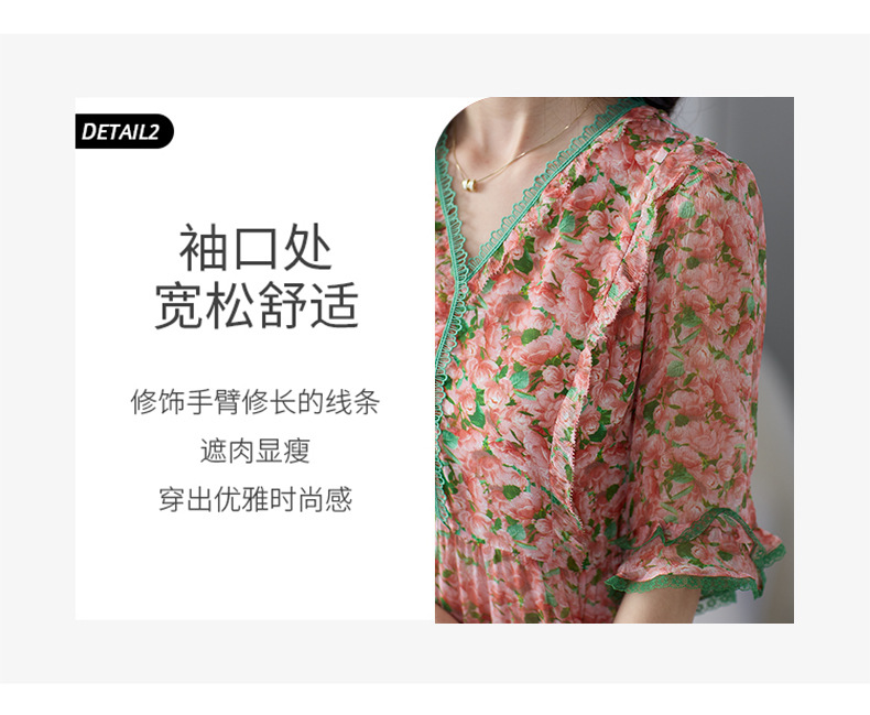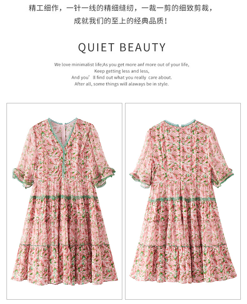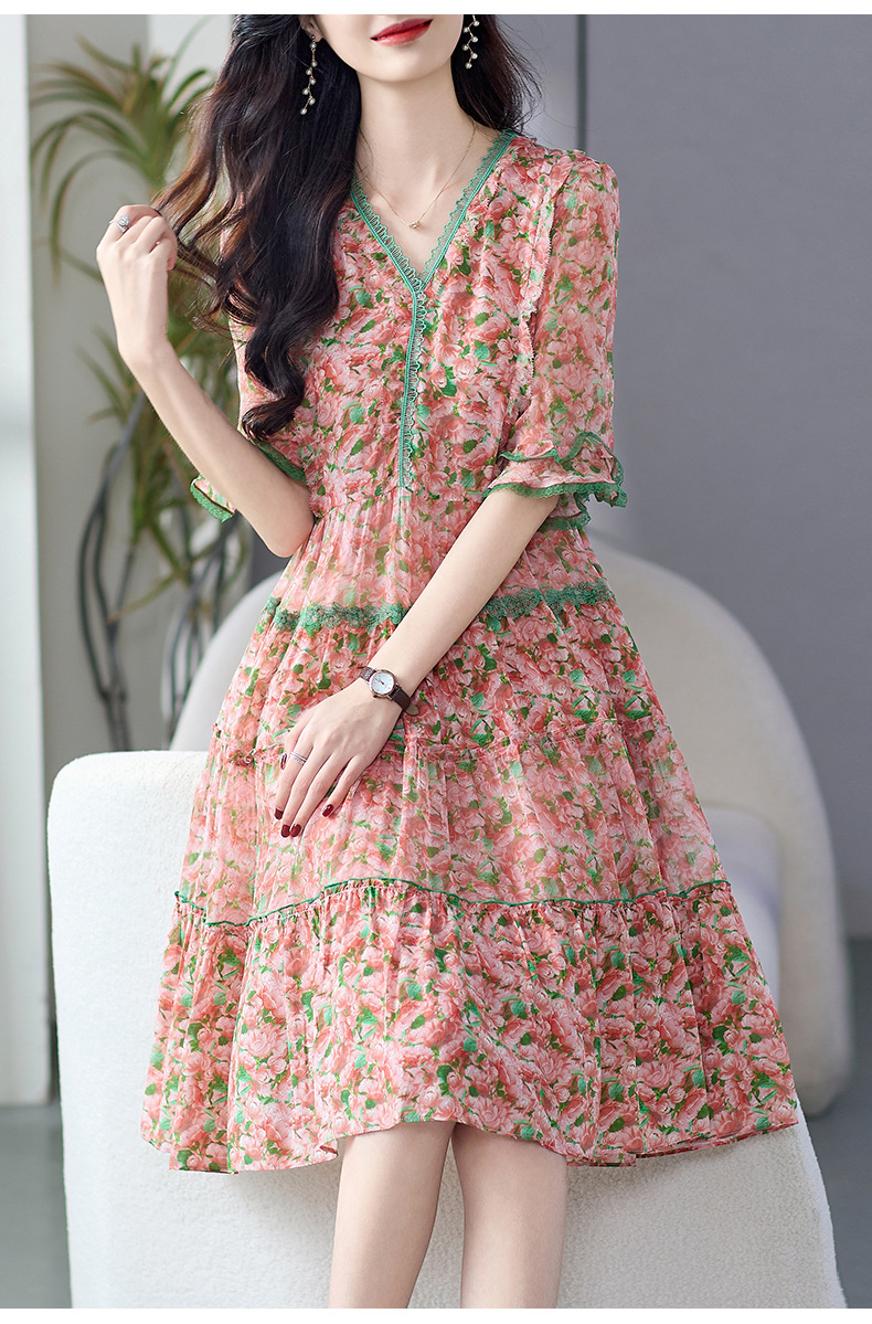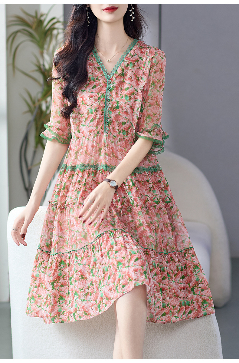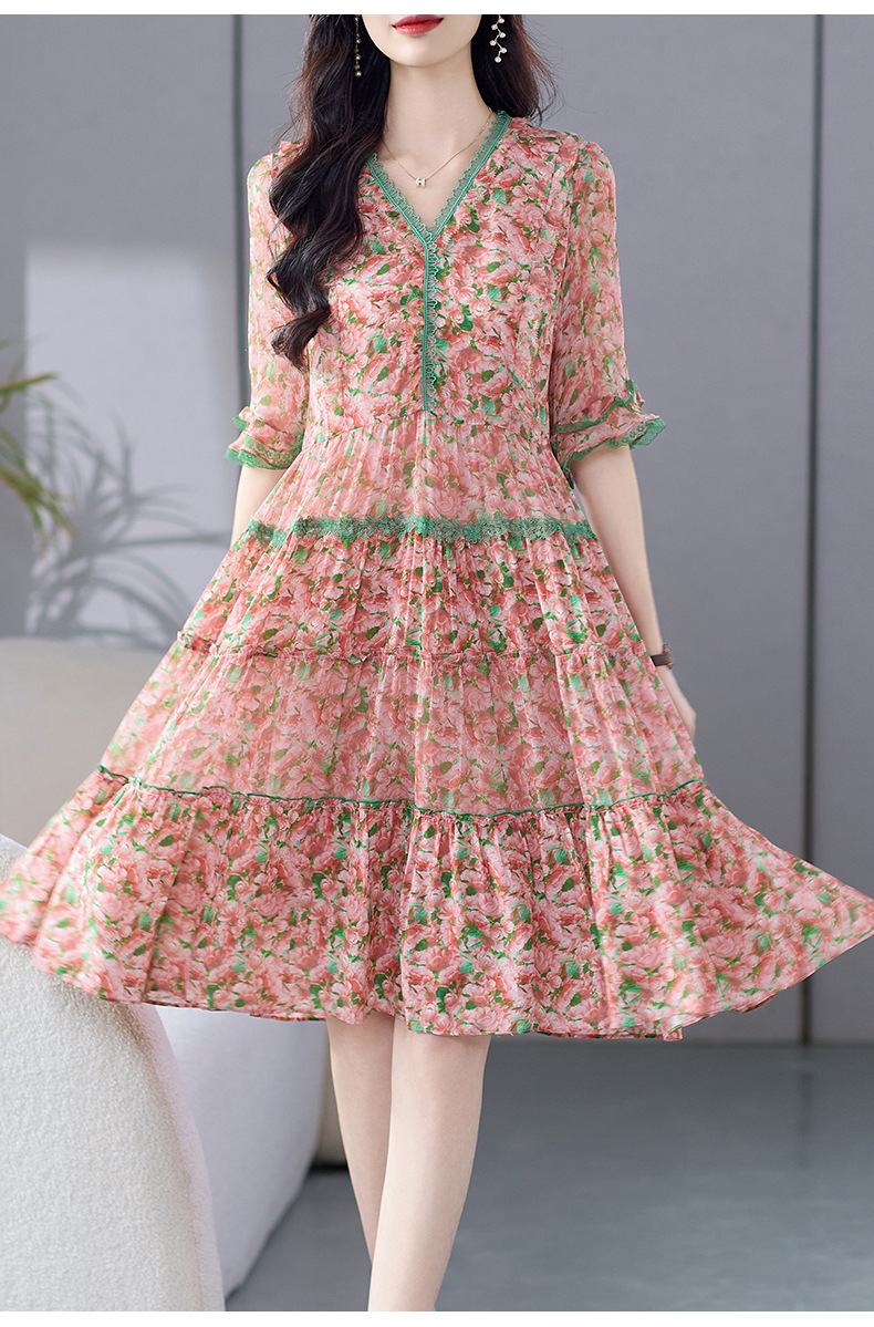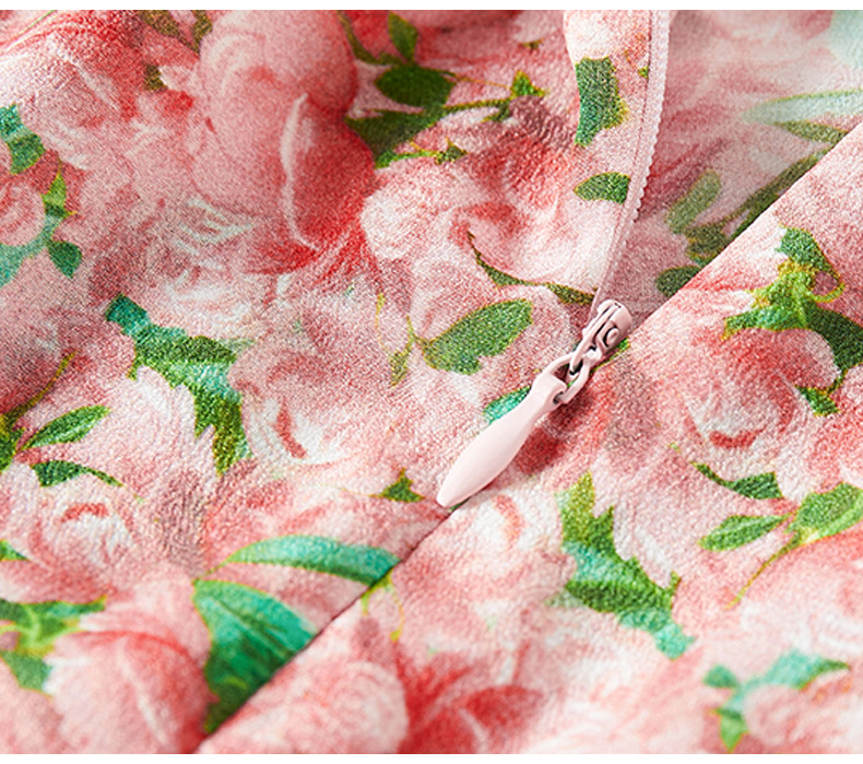 丁摩 粉色碎花真丝连衣裙桑蚕丝裙子女夏女装新款5ZF-69513
