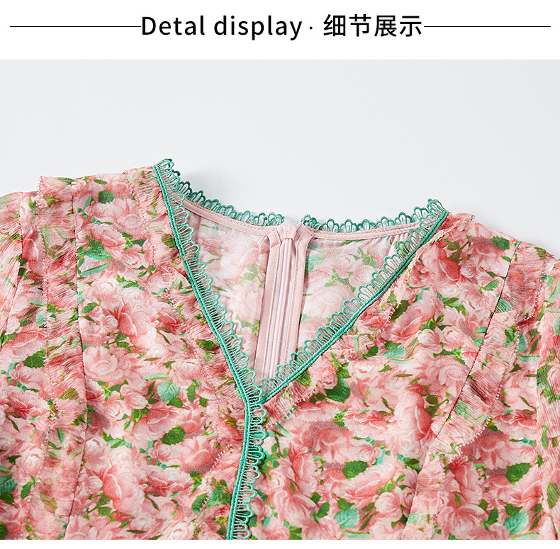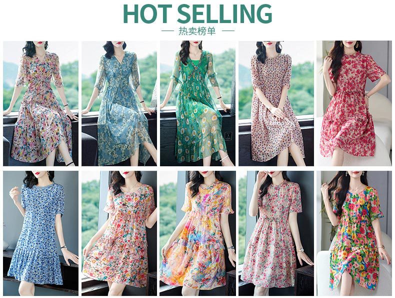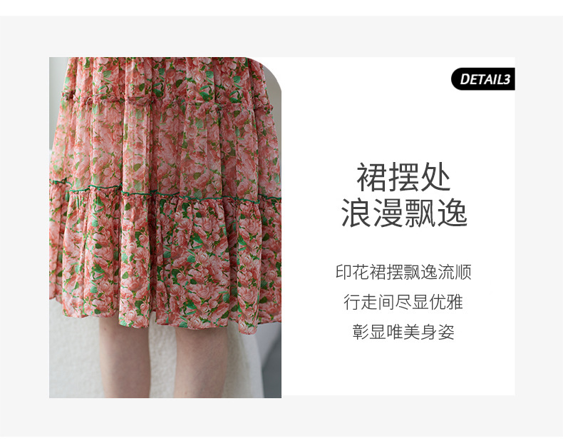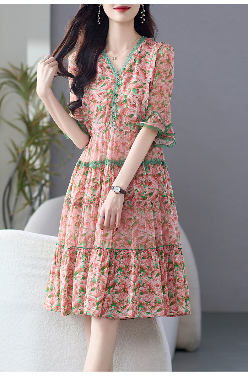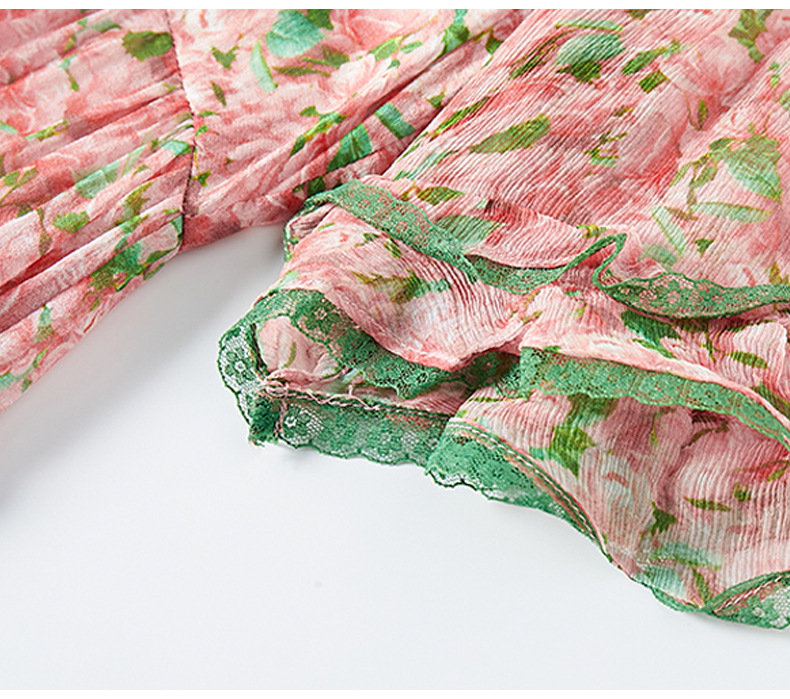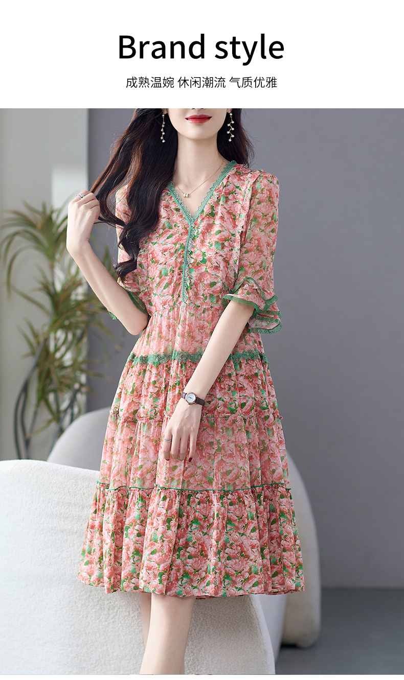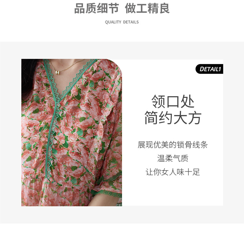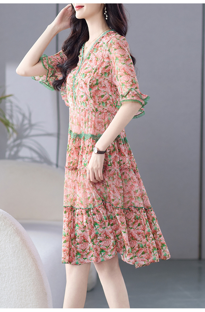 丁摩 粉色碎花真丝连衣裙桑蚕丝裙子女夏女装新款5ZF-69513