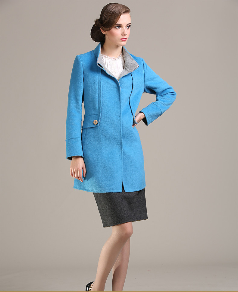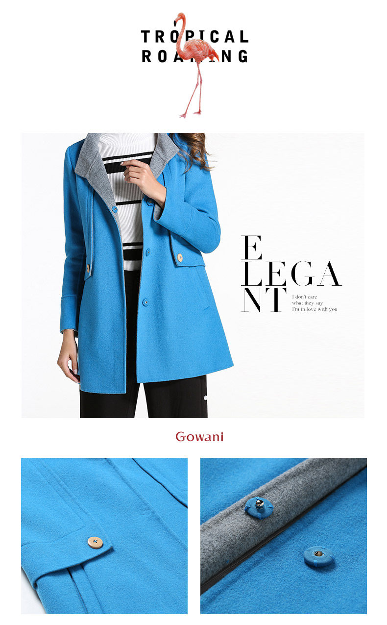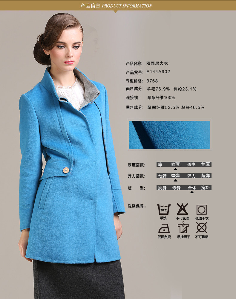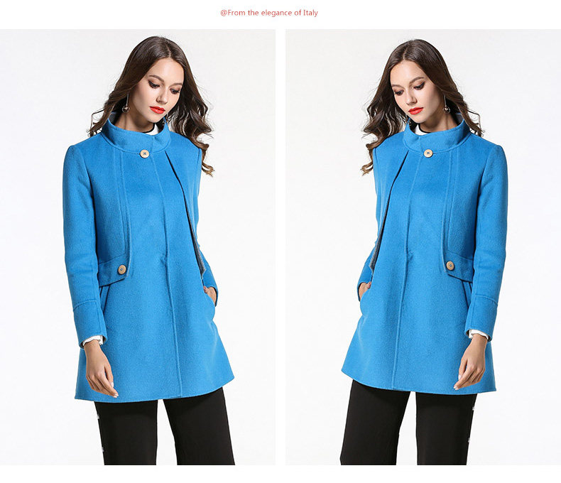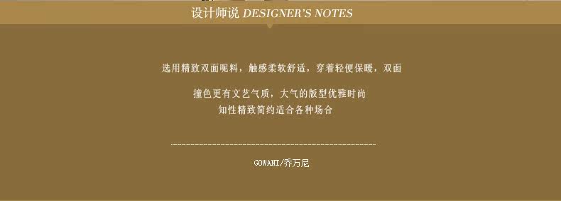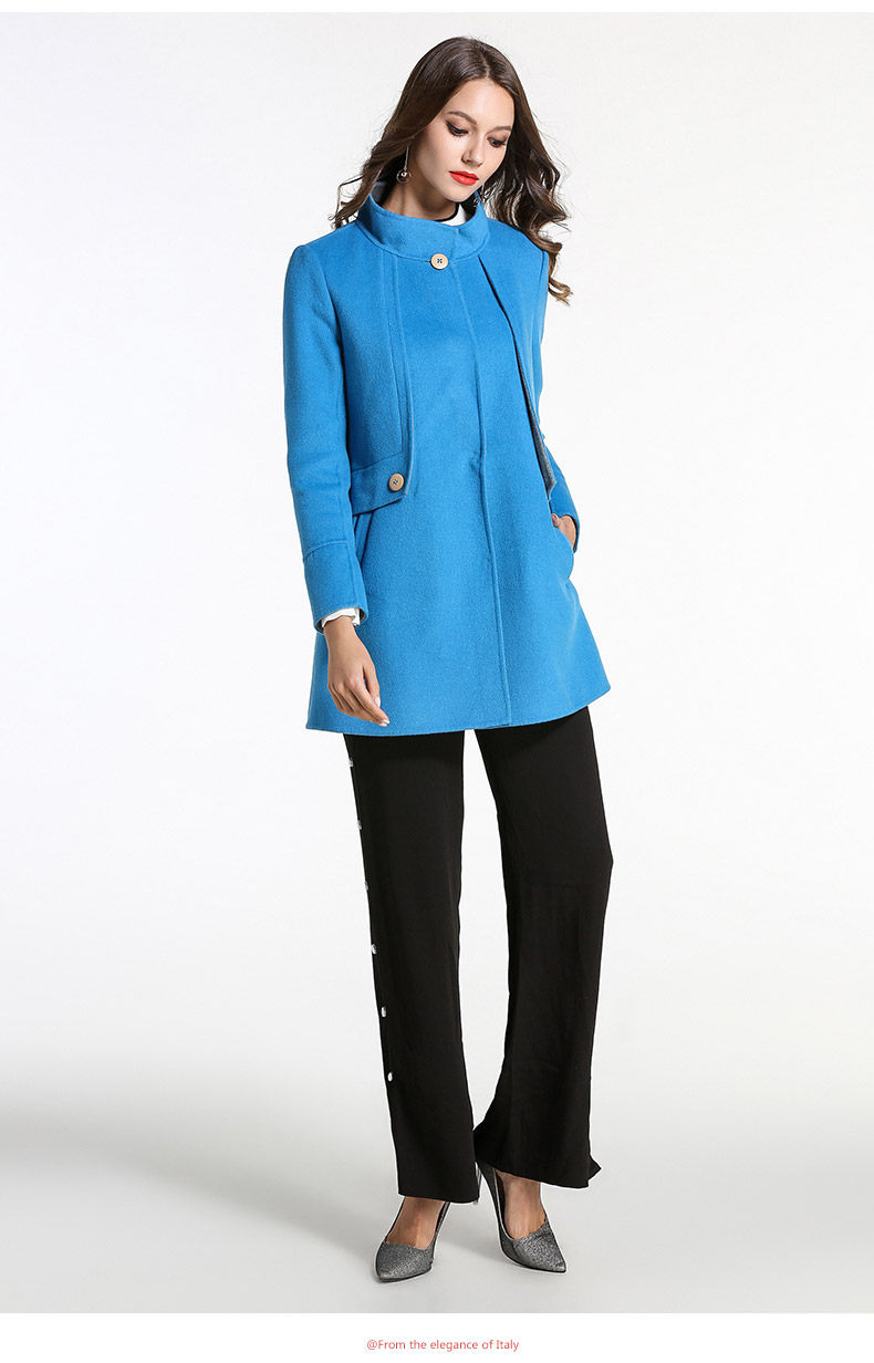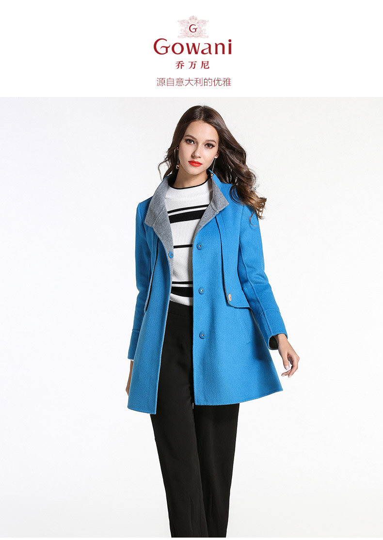 乔万尼冬季呢子大衣女修身中长款羊毛拼接保暖长袖双面呢子外套E144A902