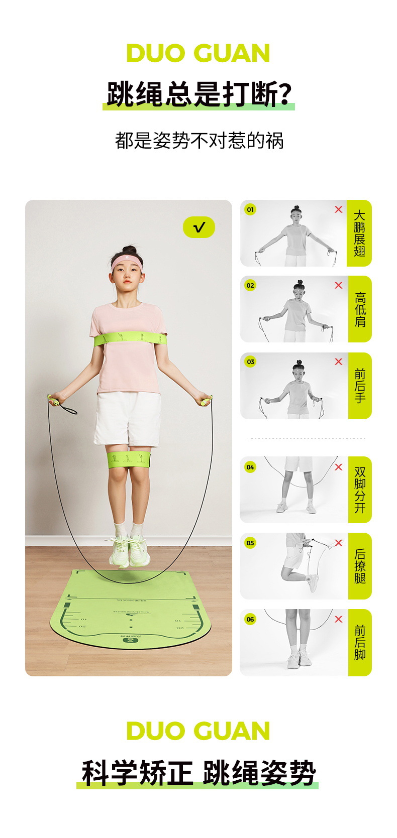 【矫正跳绳姿势】夺冠跳绳可调跳姿纠正带 中考青少年纠正辅助训练器 大小可调节