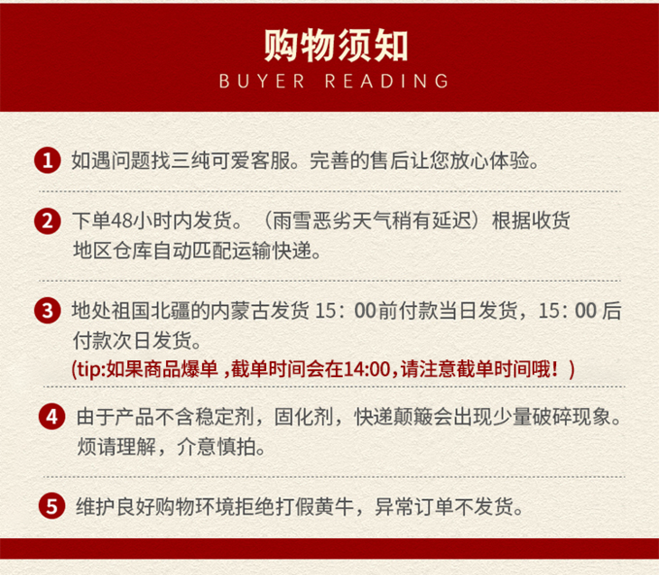 发货快递:中通、圆通、韵达、邮政随机发,新疆、西藏+15运费