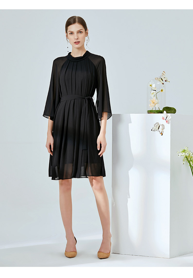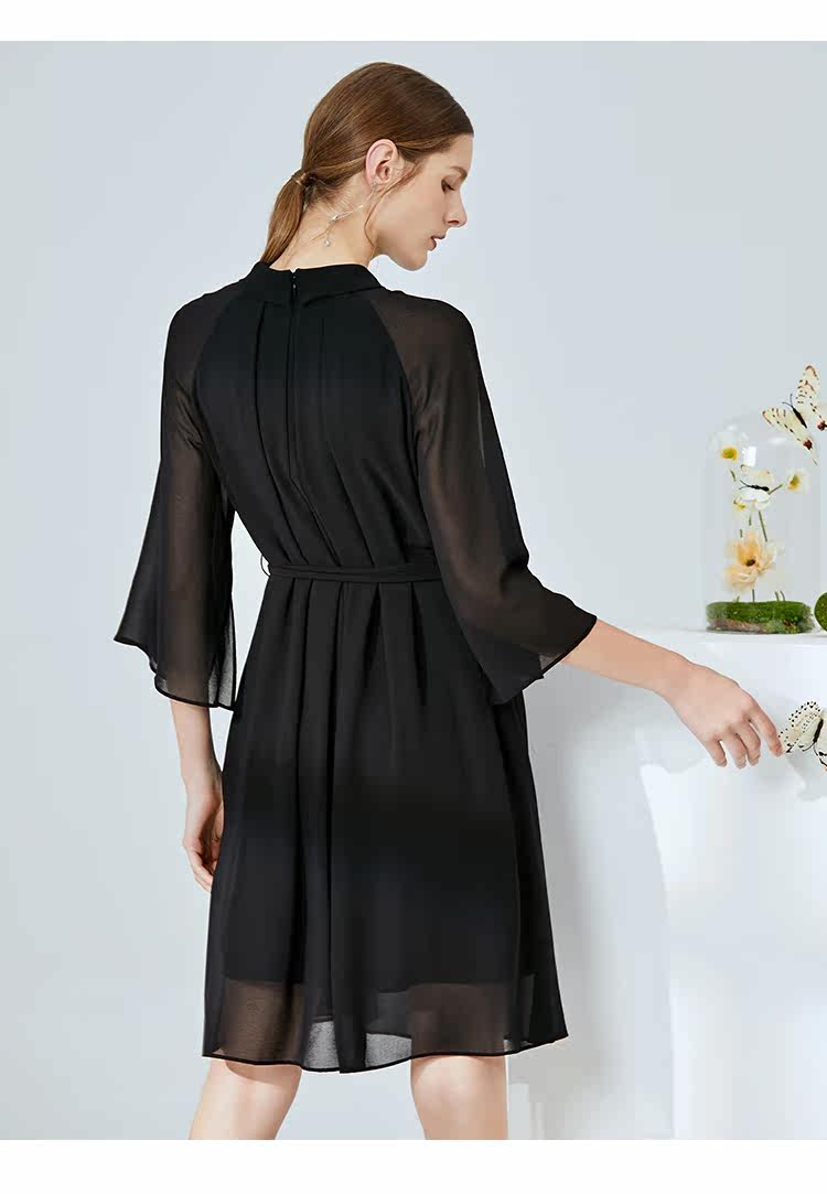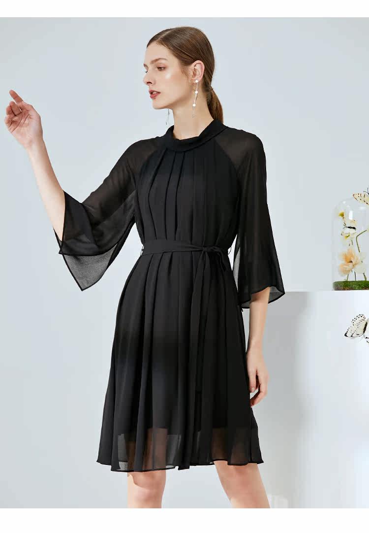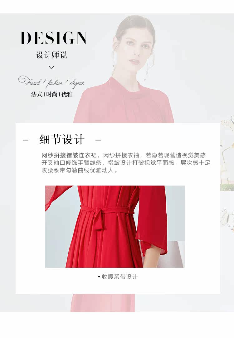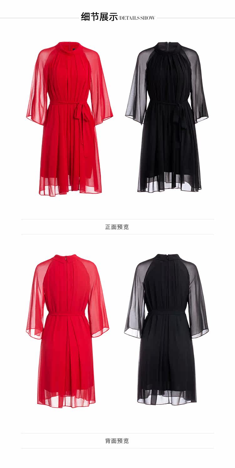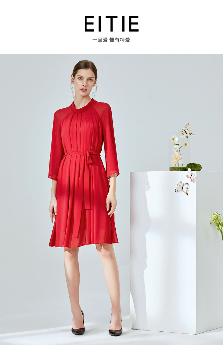 EITIE爱特爱夏季新款时尚简约网纱拼接收腰圆领连衣裙女薄款5907673