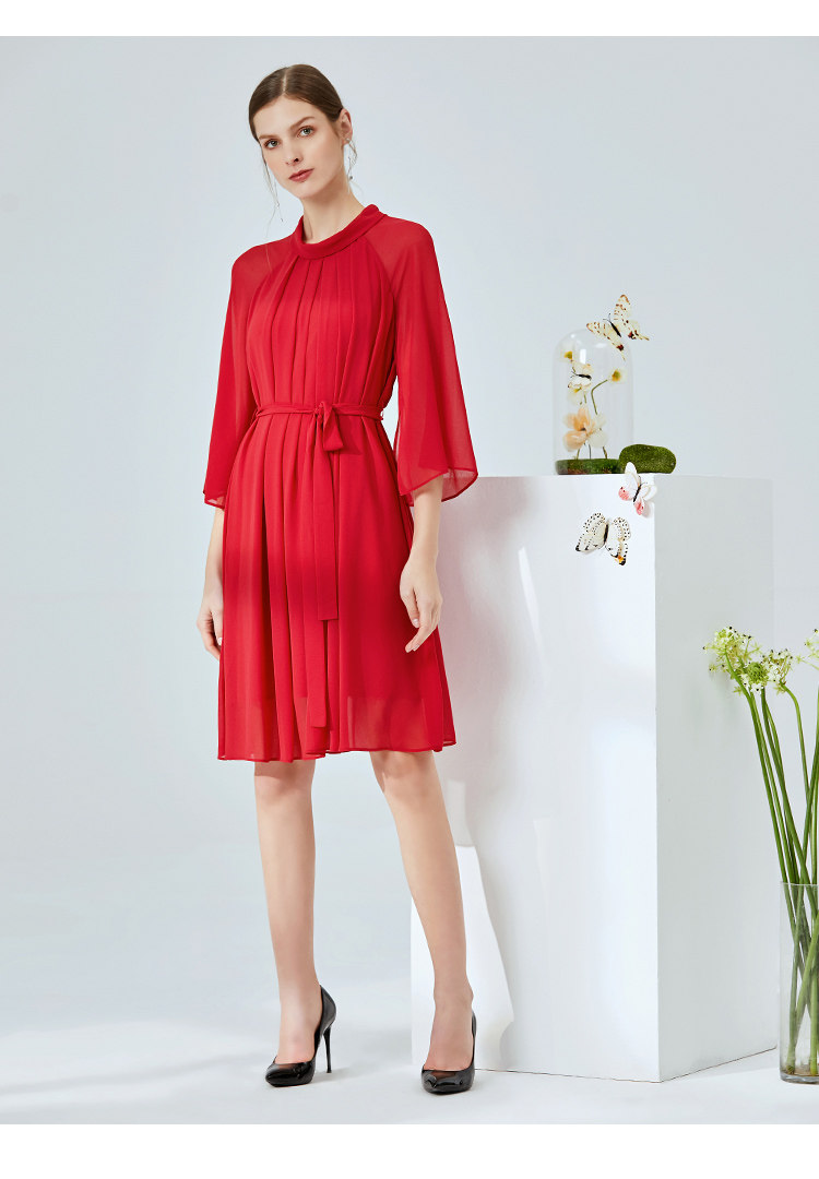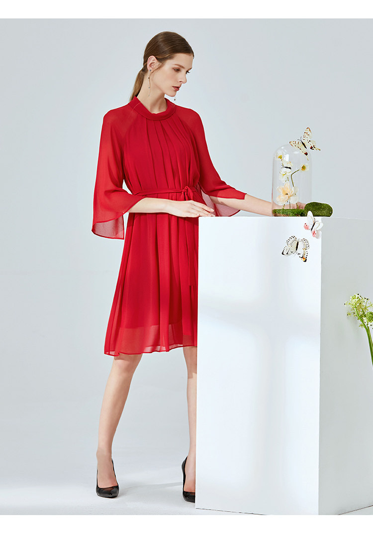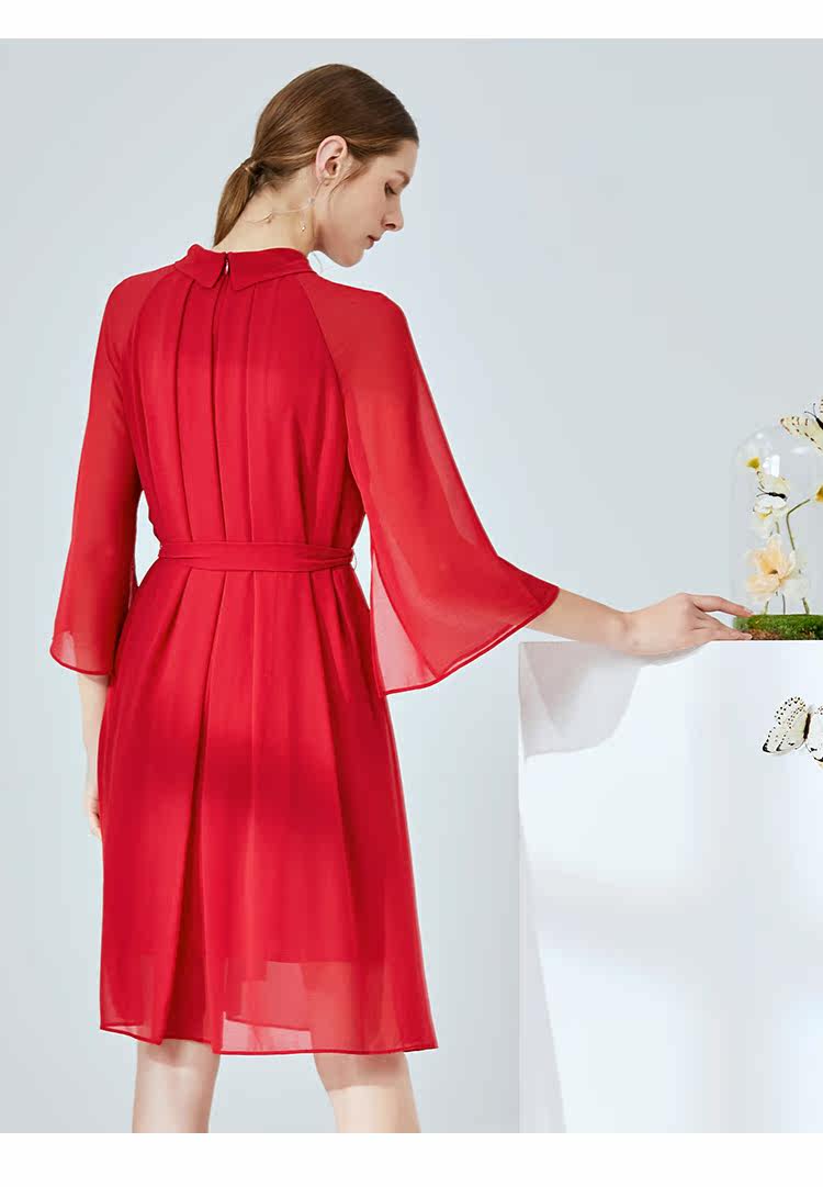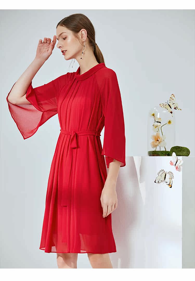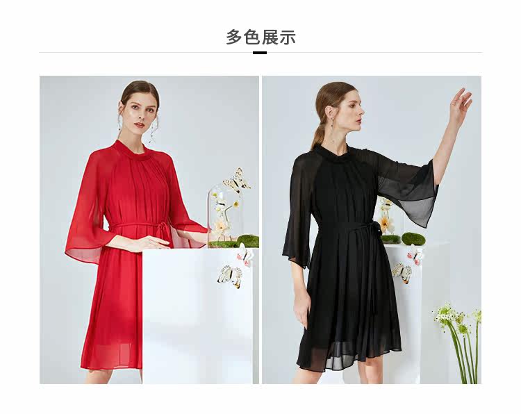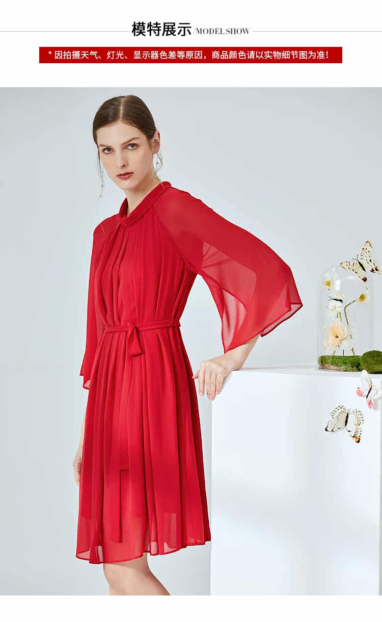 EITIE爱特爱夏季新款时尚简约网纱拼接收腰圆领连衣裙女薄款5907673