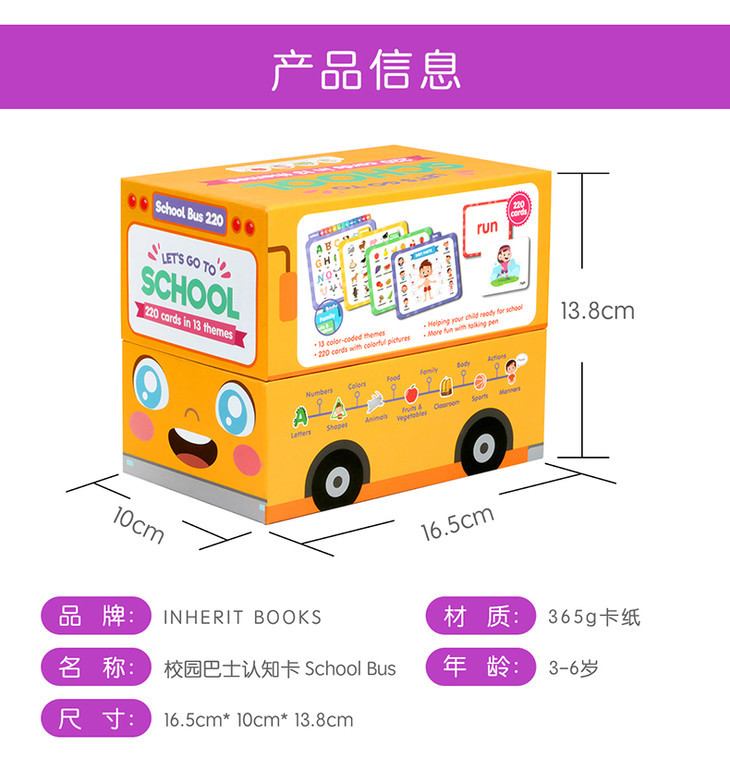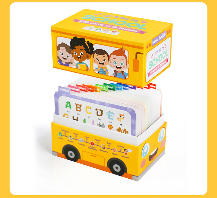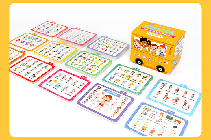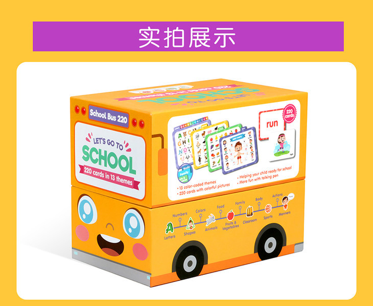 【可点读】文脉出品Let's Go To School校巴卡片220张点读版益智游戏早教英语闪卡3-6岁儿童启蒙认知书