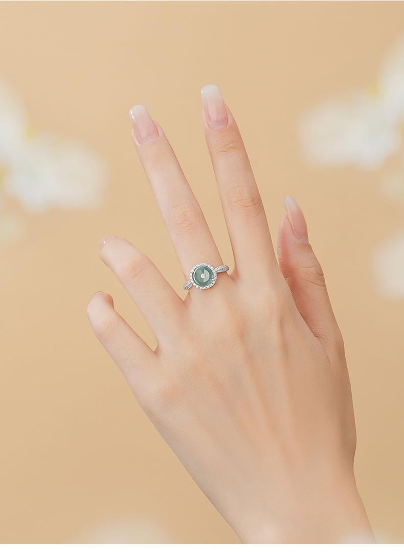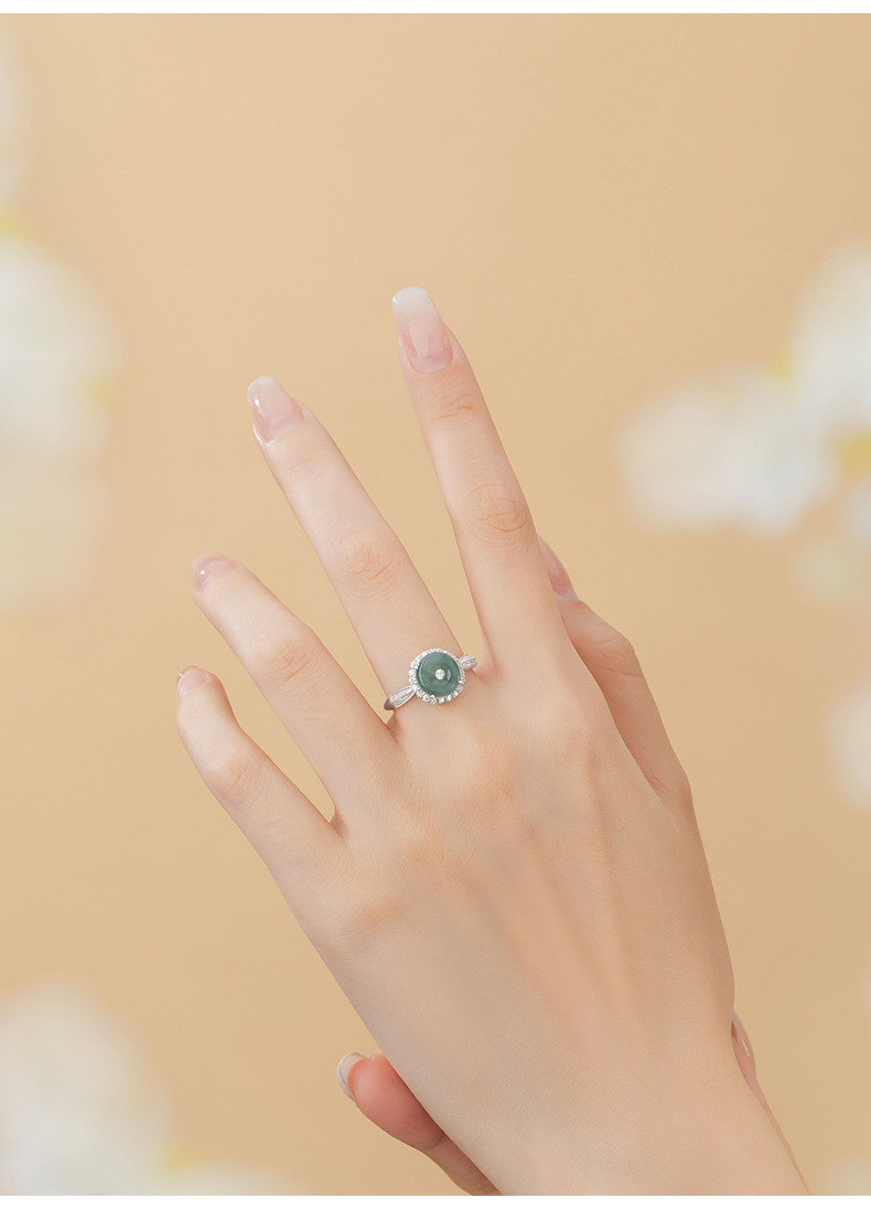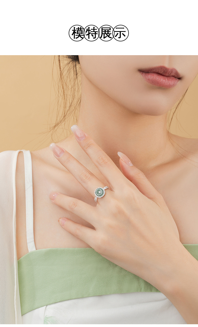 【预售3天】纯银925戒指新中式国潮危料冰种翡翠戒环ins风可调节对戒J0528