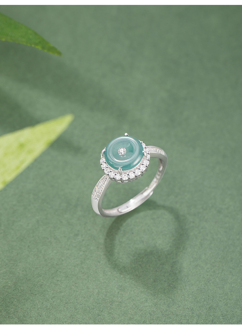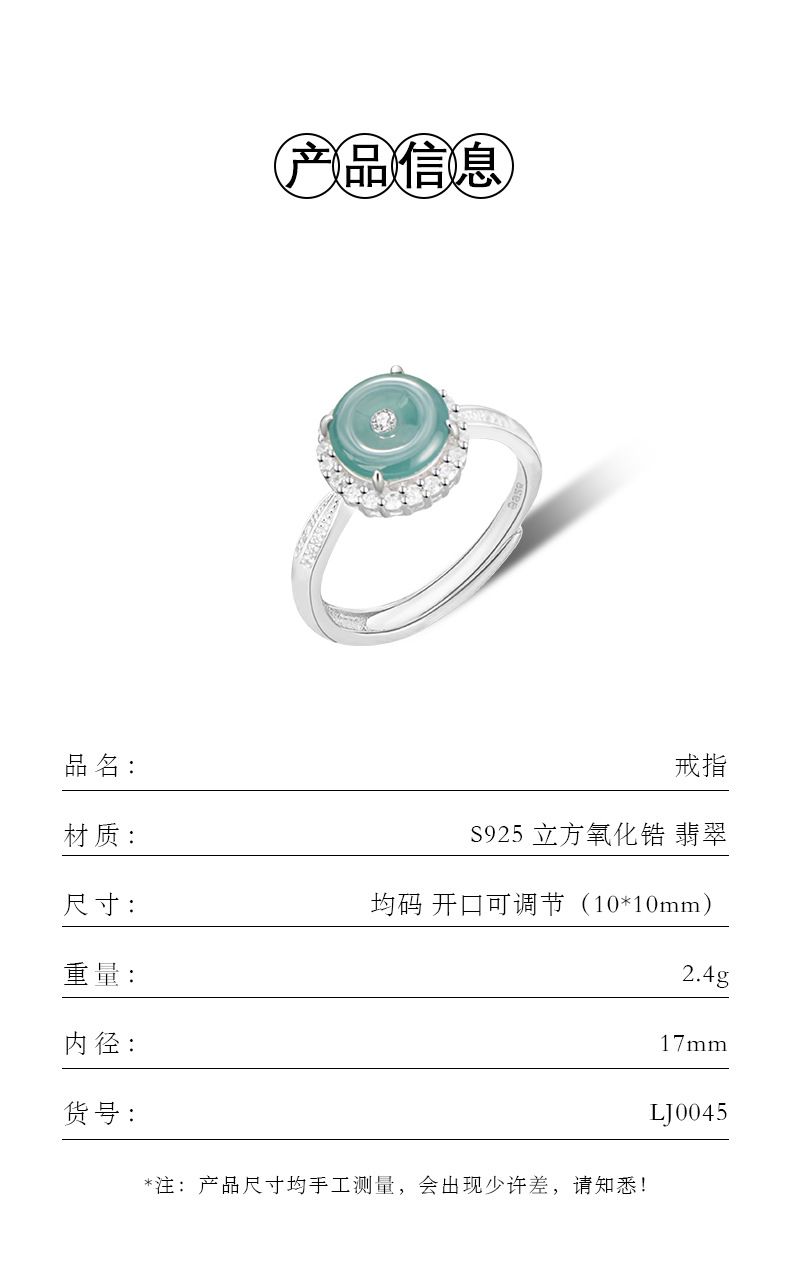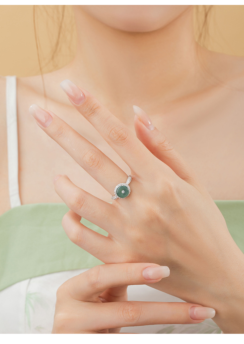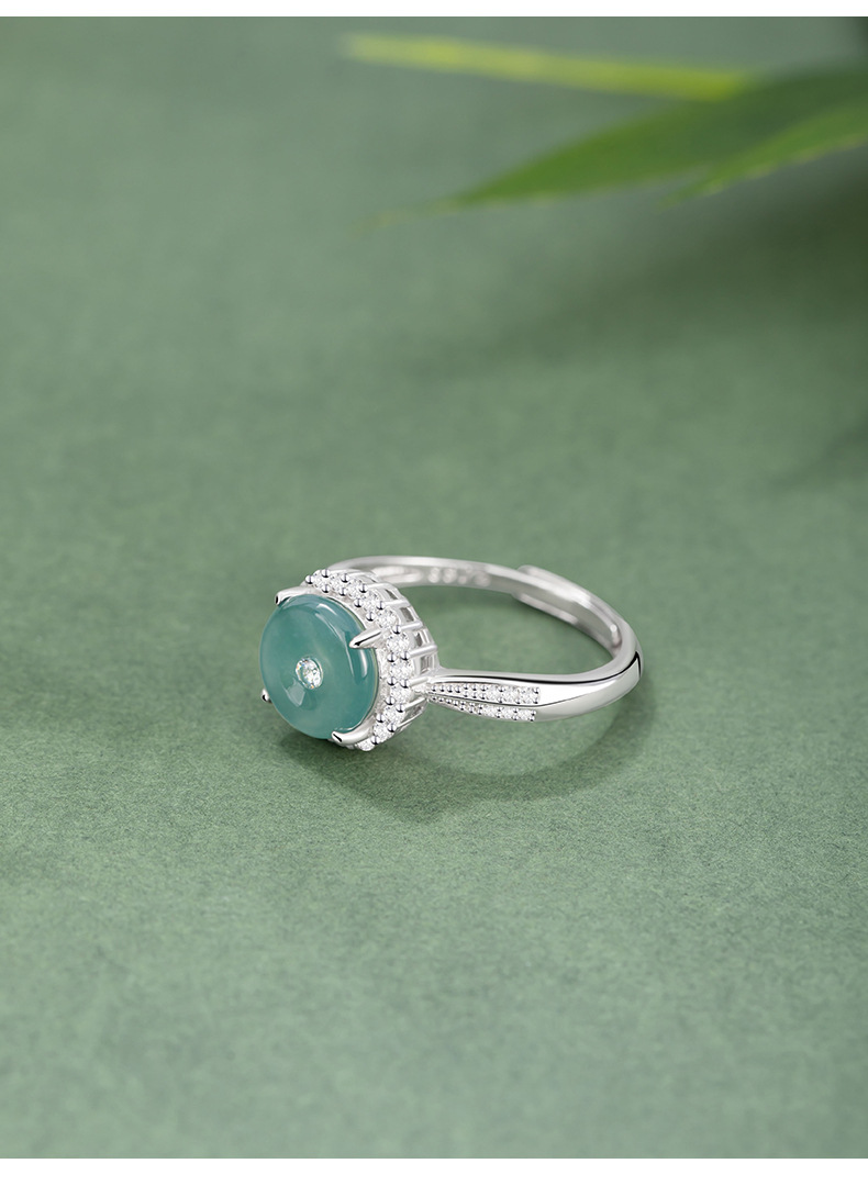 【预售3天】纯银925戒指新中式国潮危料冰种翡翠戒环ins风可调节对戒J0528