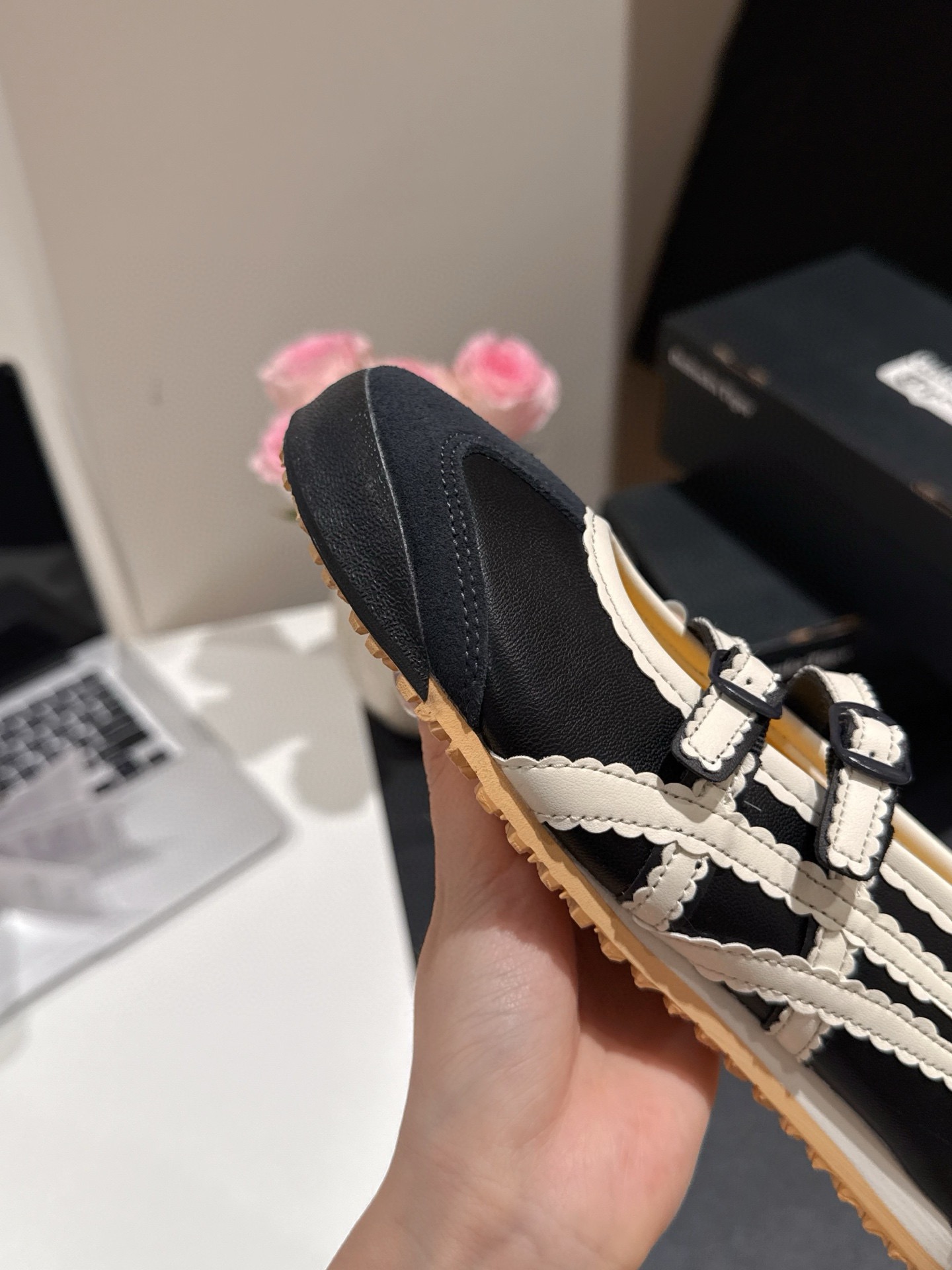注意感受鞋头自然上翘,后跟往内收拢,完全符合人体工学设计 贴合度巨巨巨好